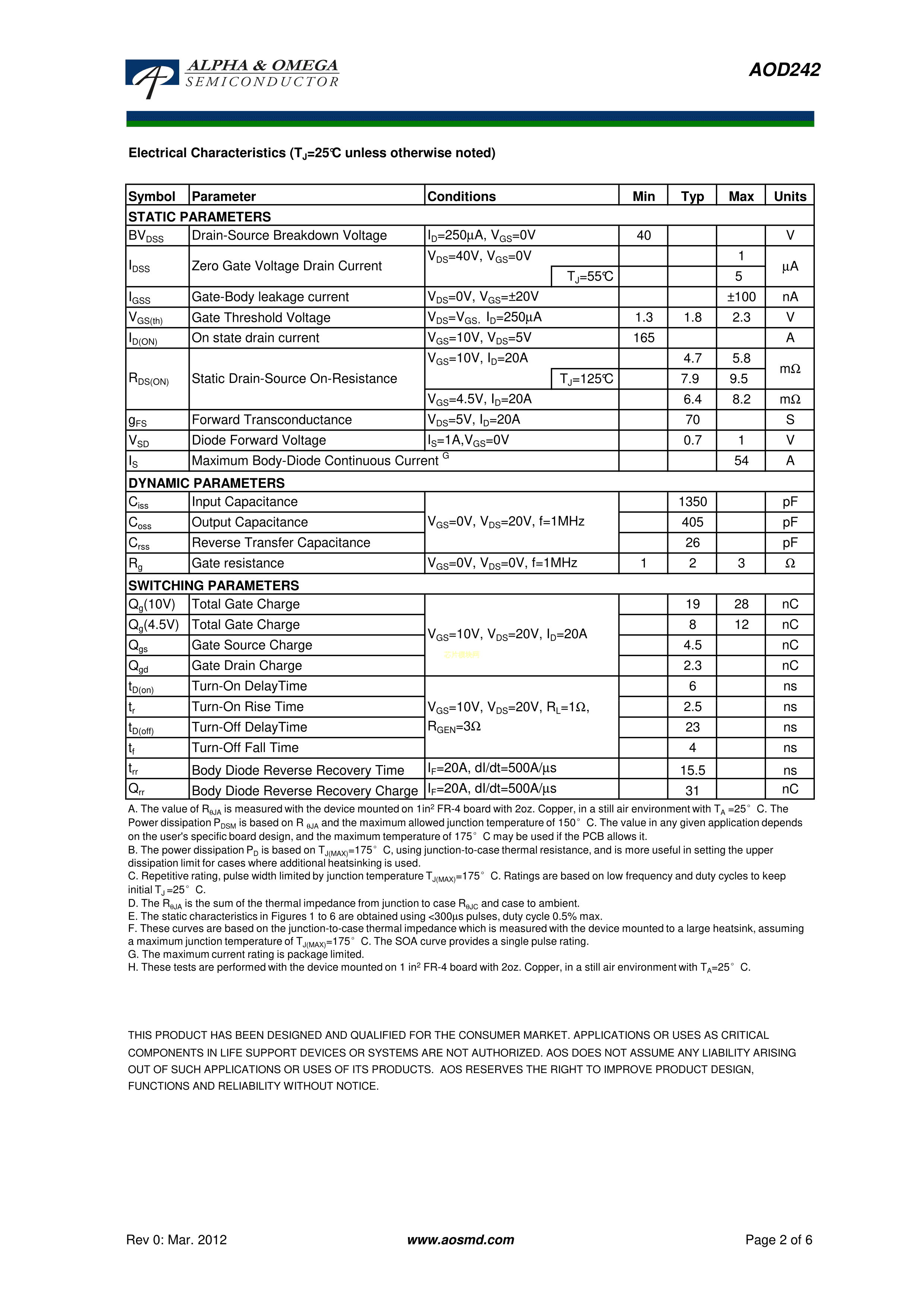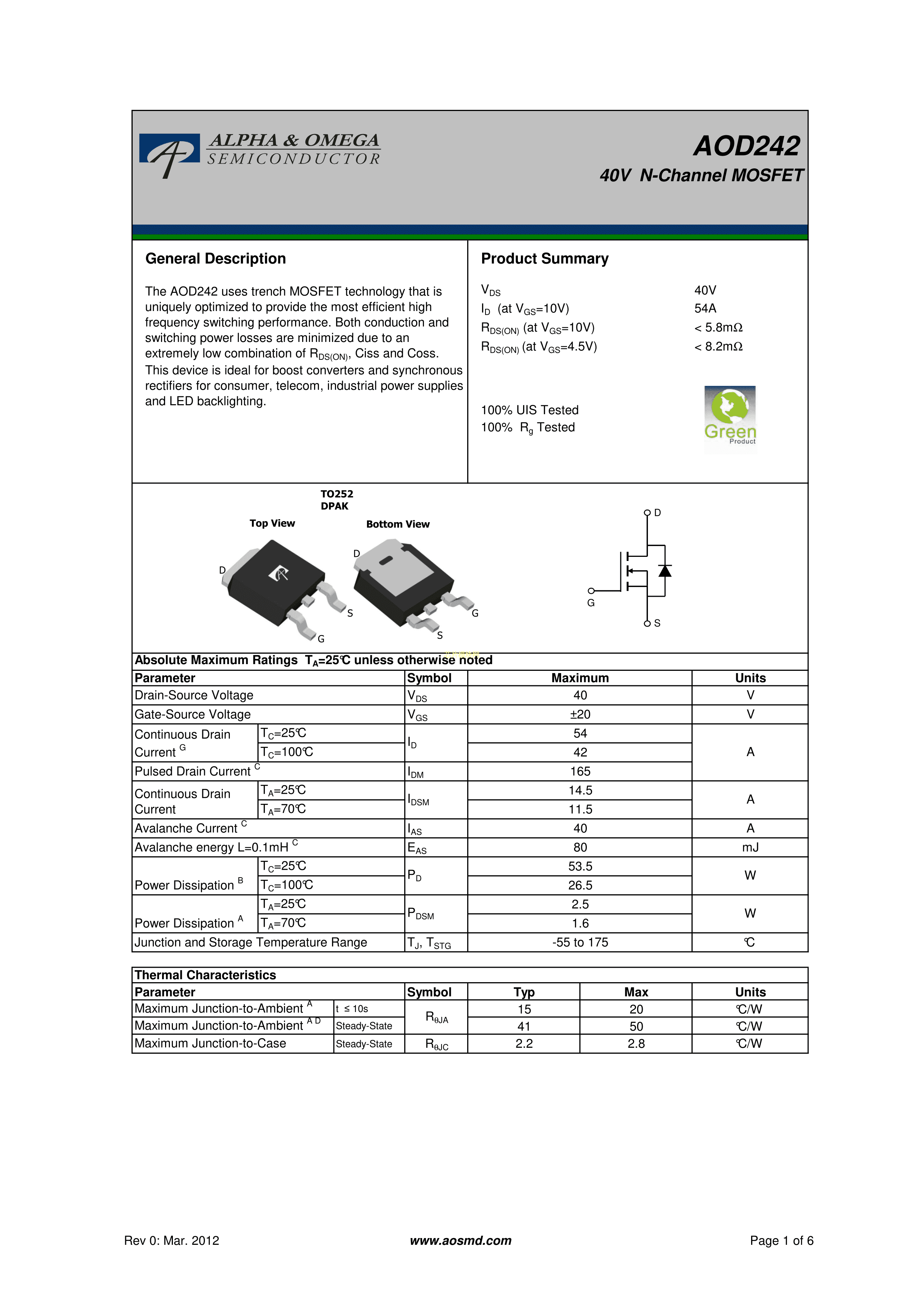 AOD242PDF规格书,中英文下载