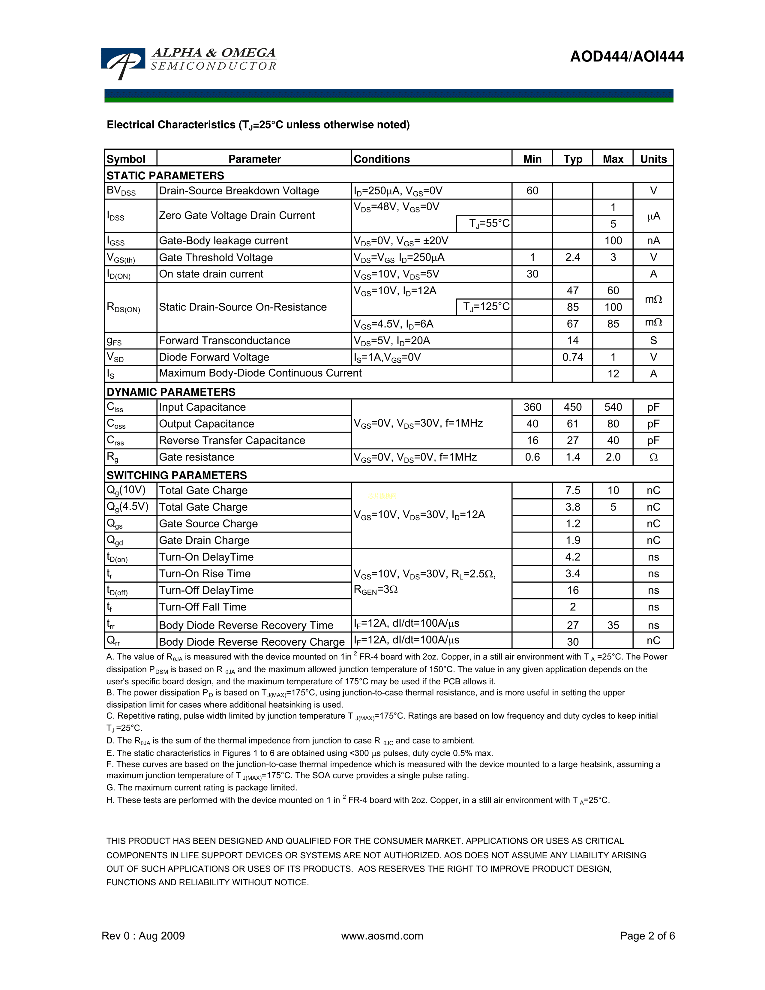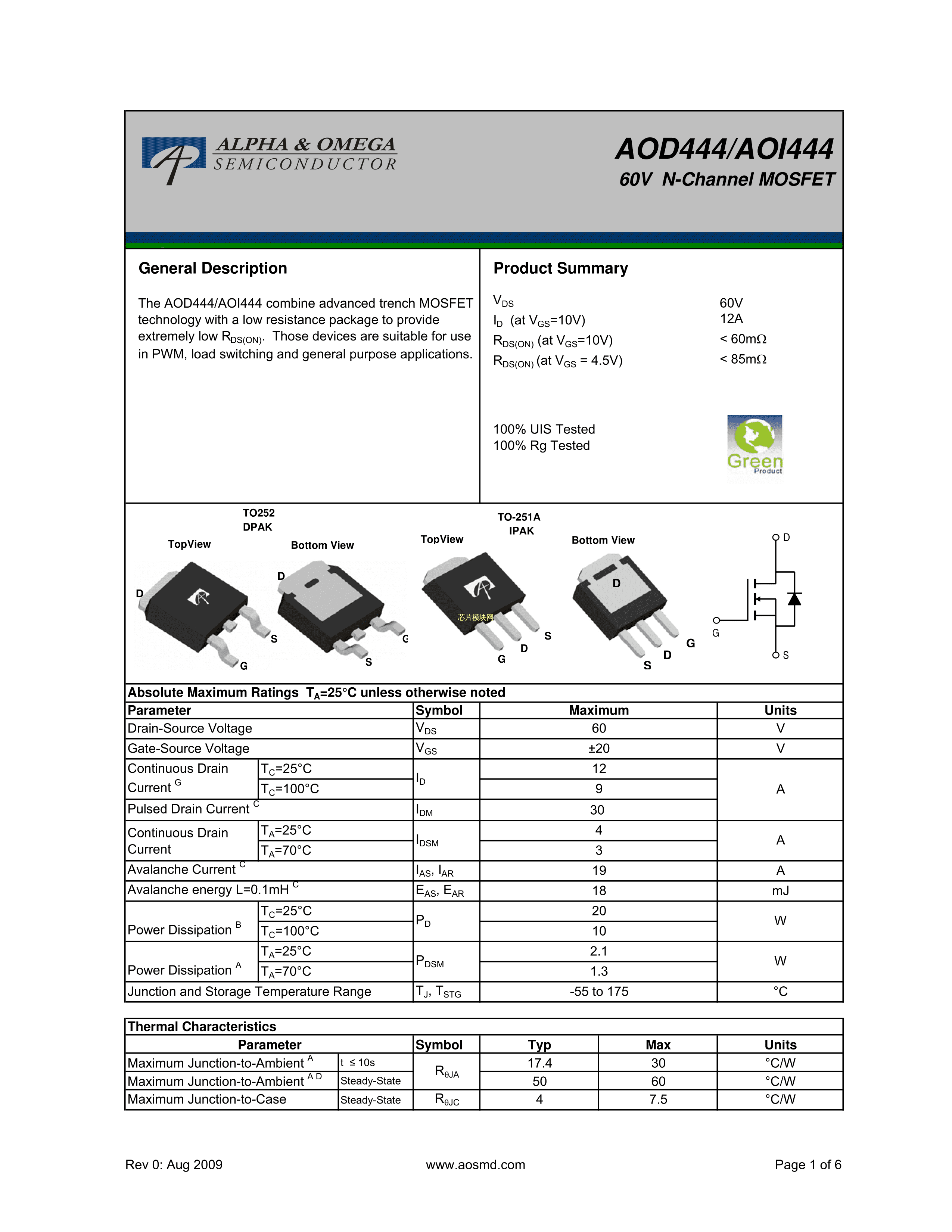 AOD444PDF规格书,中英文下载