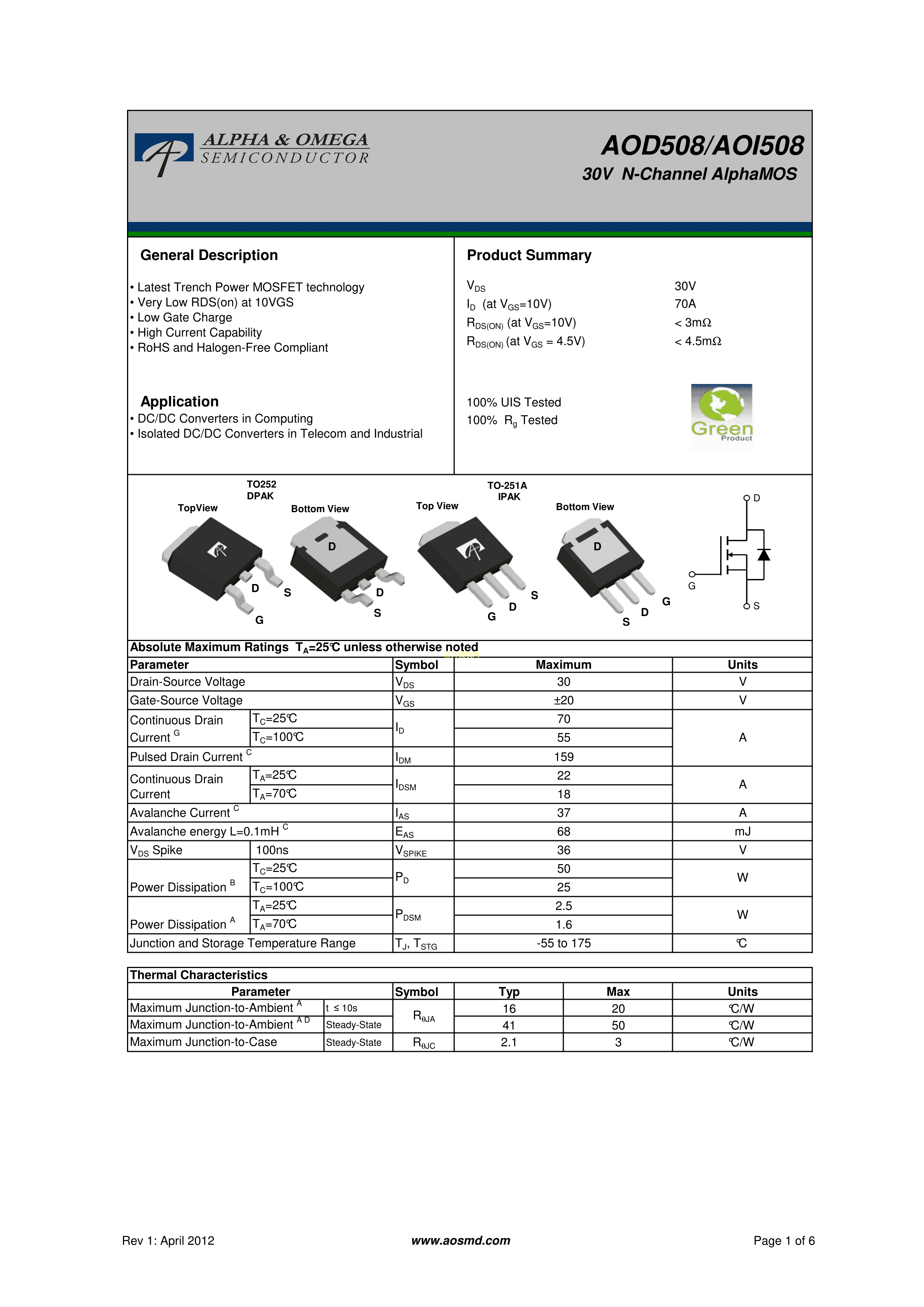 AOD508PDF规格书,中英文下载