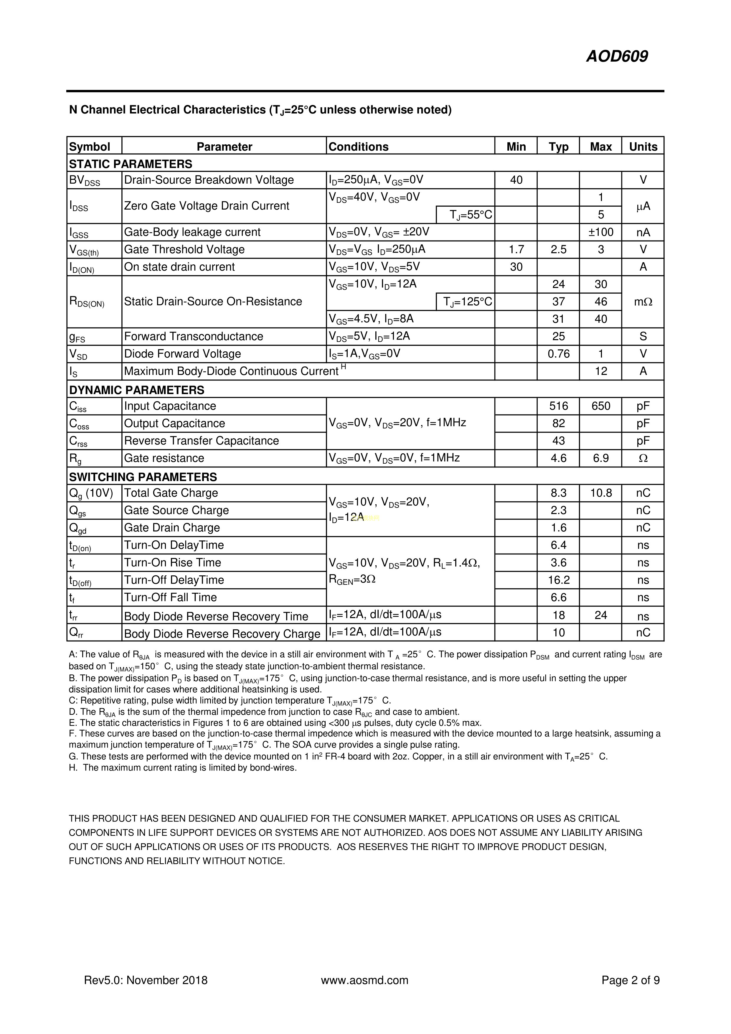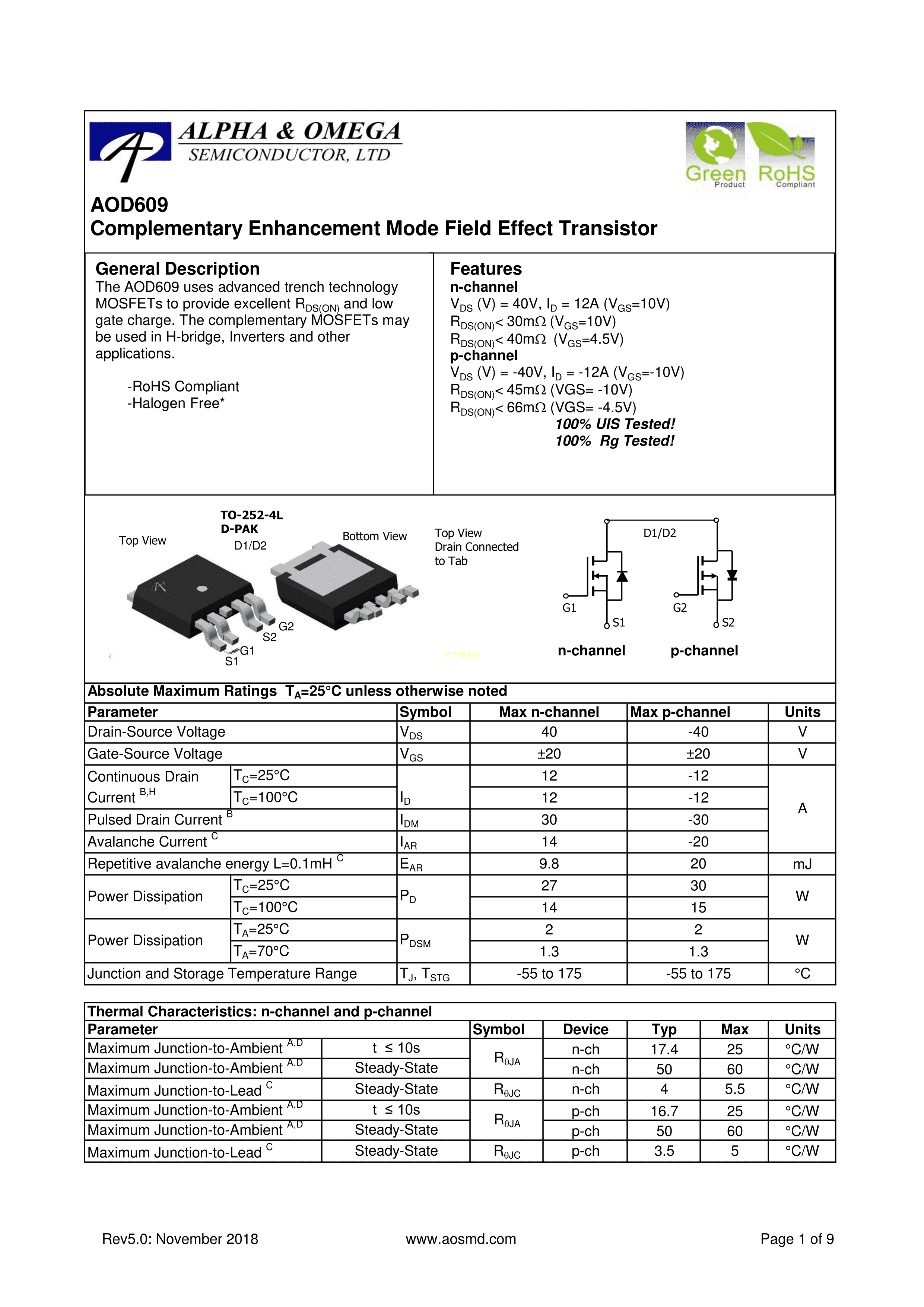AOD609PDF规格书,中英文下载