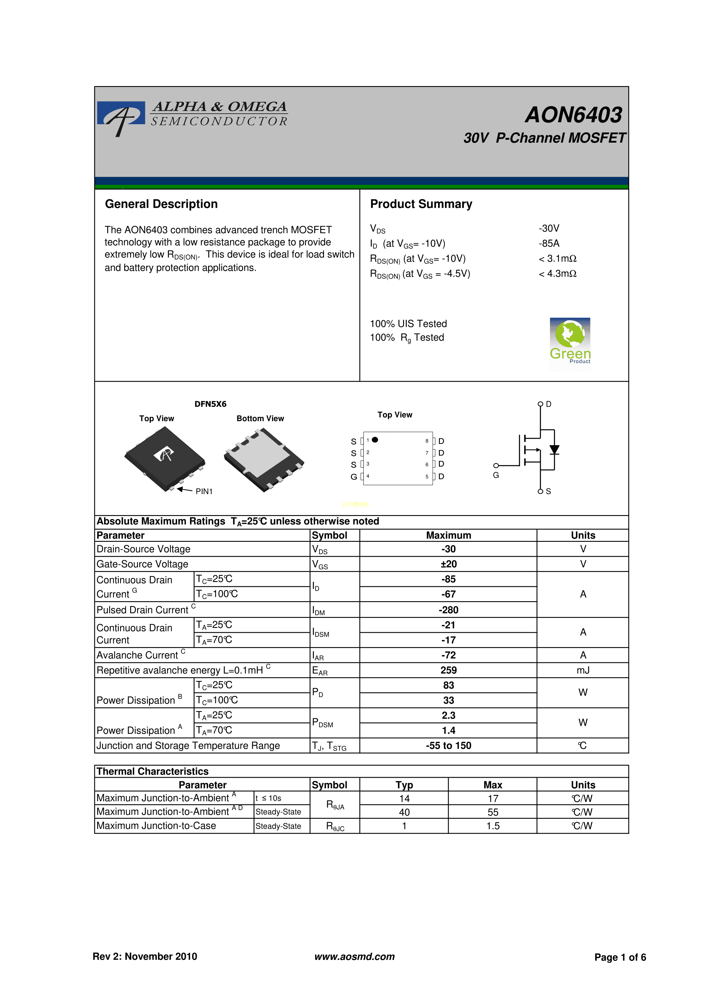 AON6403PDF规格书,中英文下载