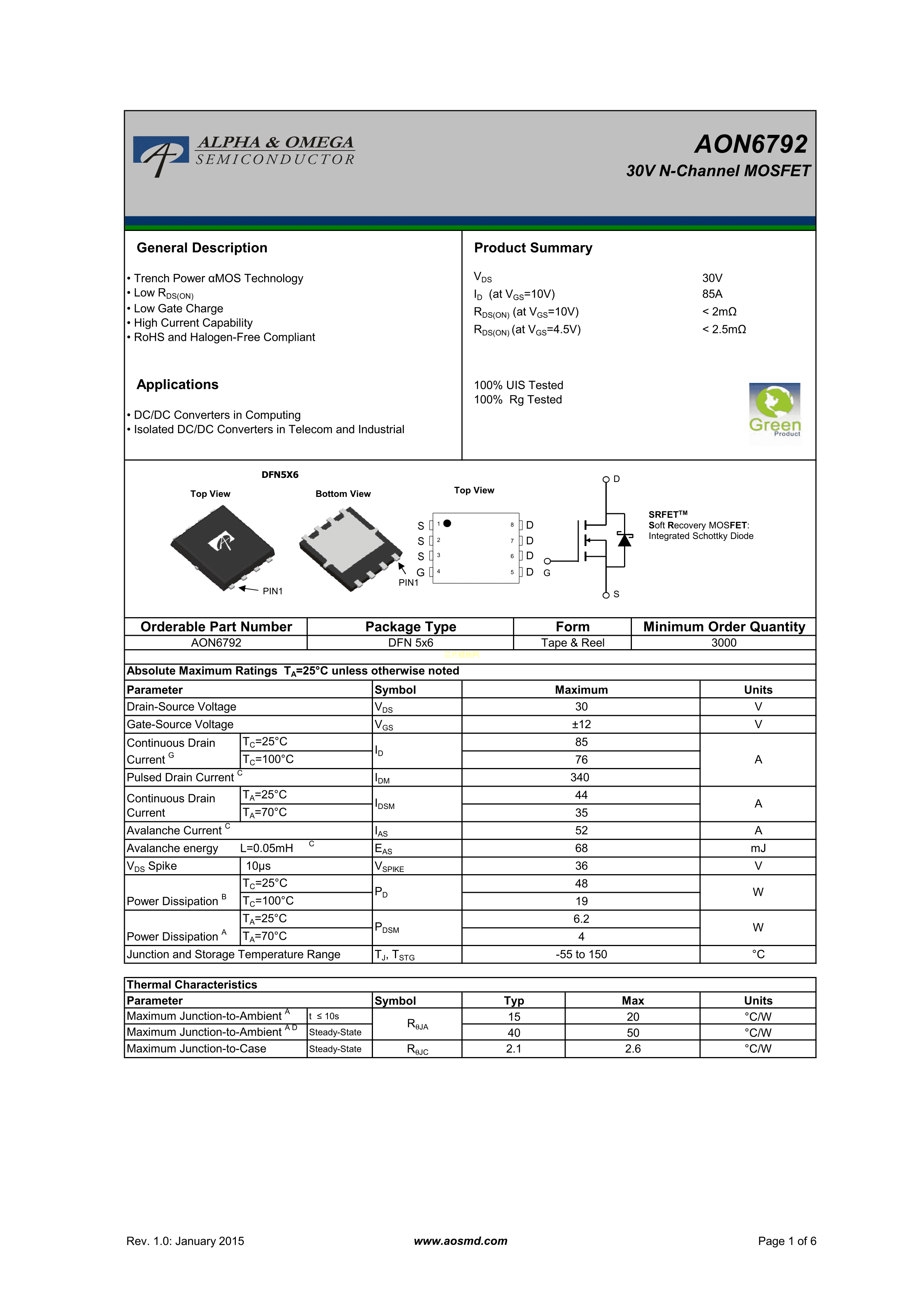 AON6792PDF规格书,中英文下载