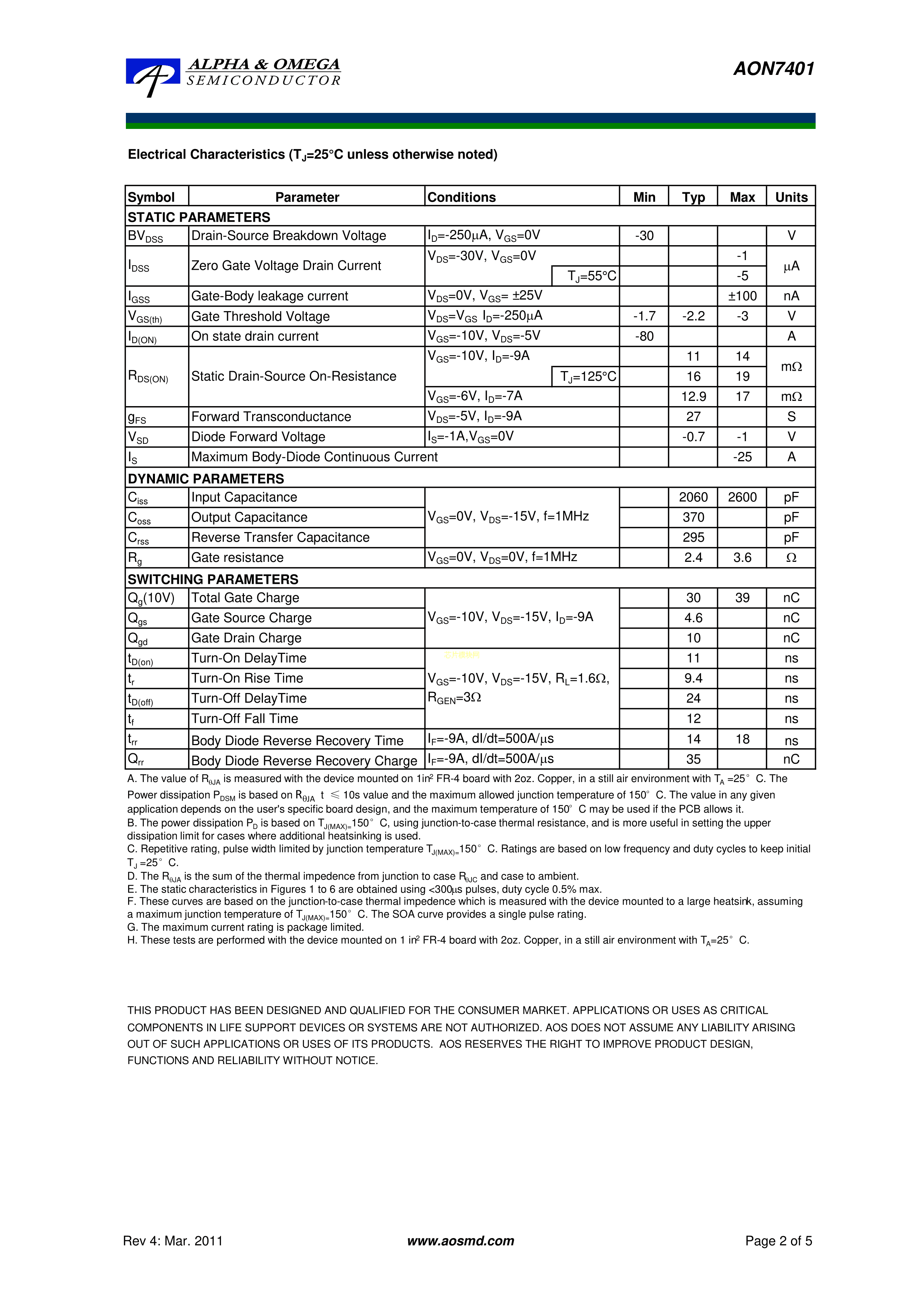 AON7401PDF规格书,中英文下载