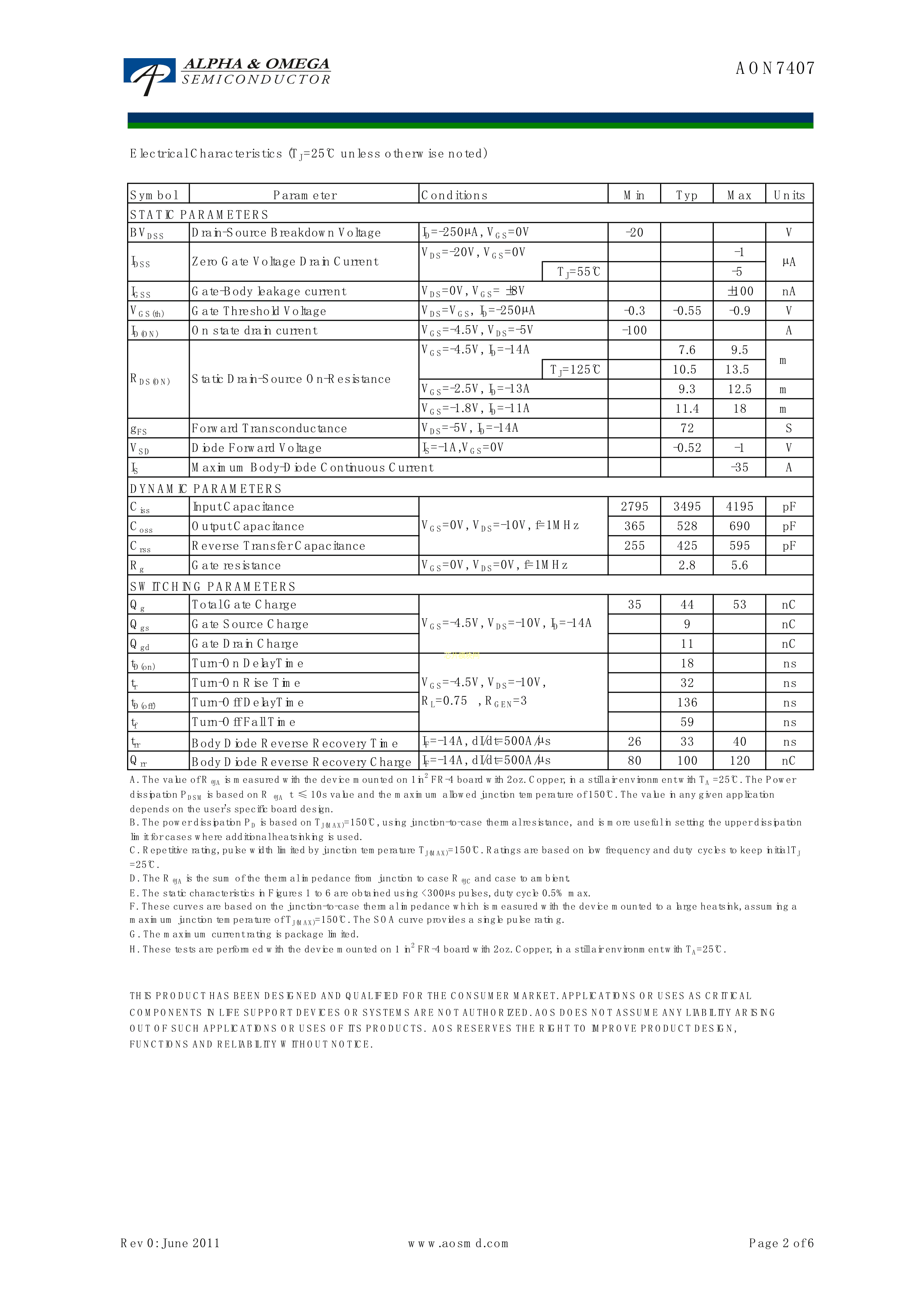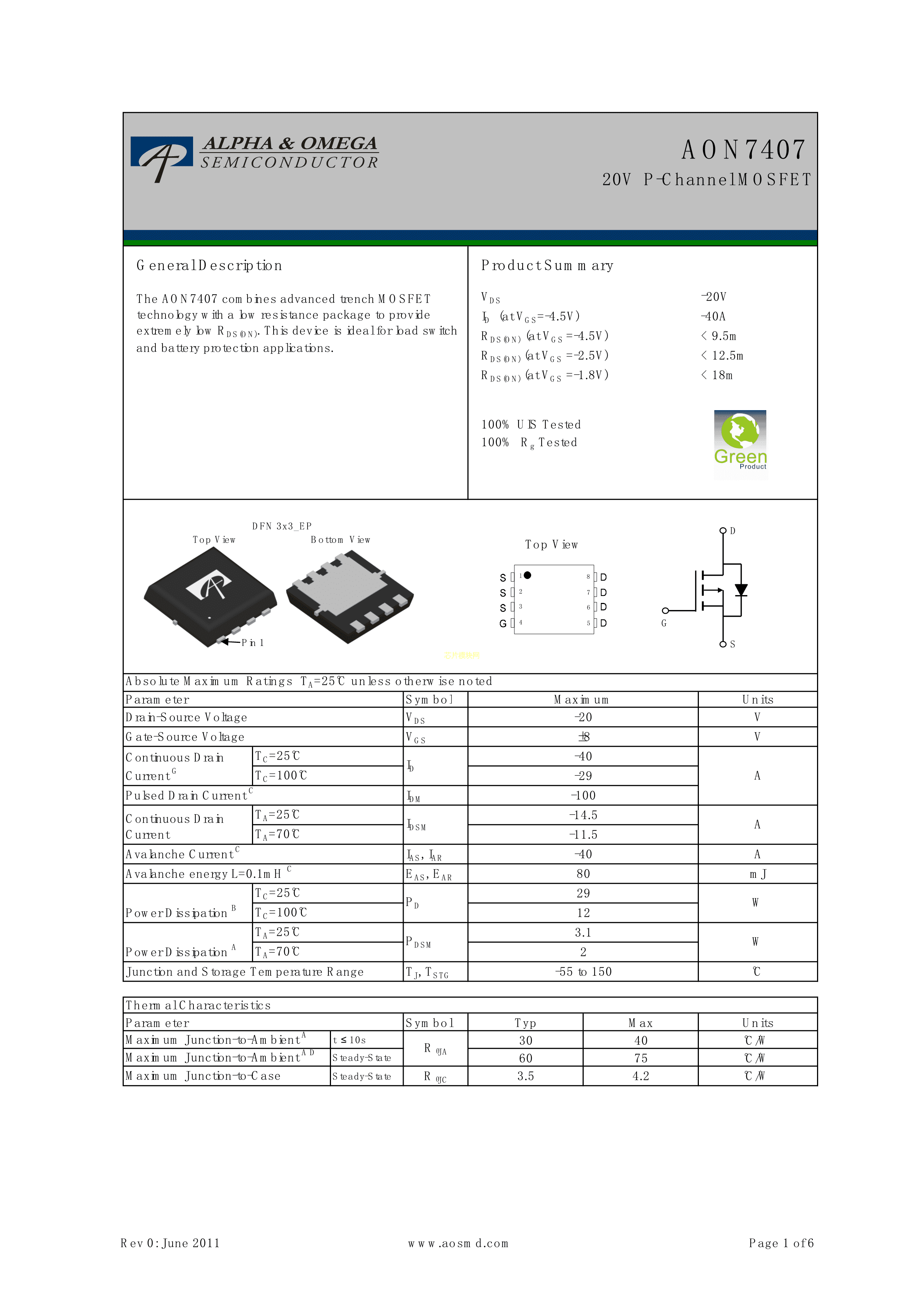 AON7407数据手册DFN 3x3封装AOSPDF规格书,中英文下载