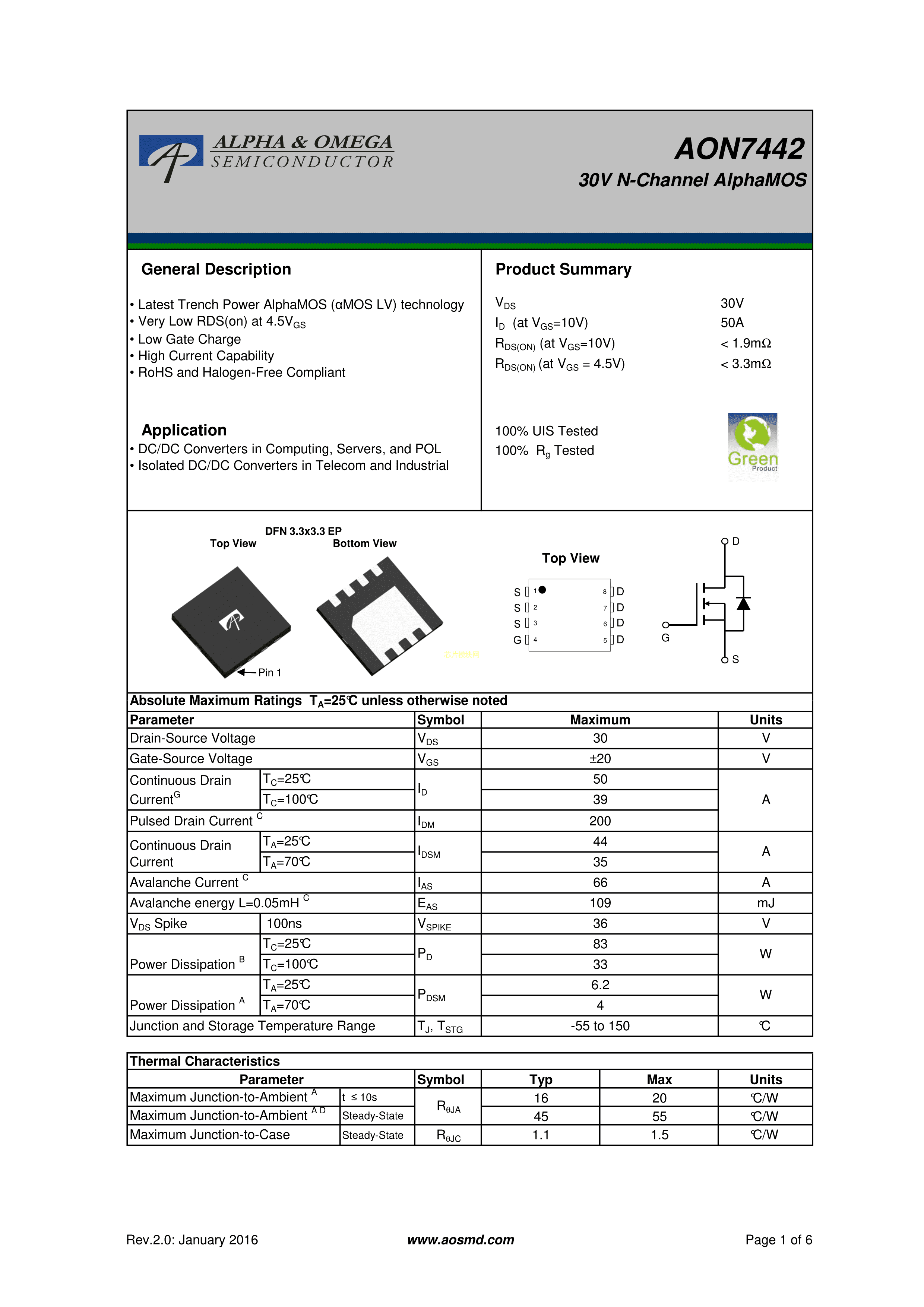 AON7442PDF规格书,中英文下载