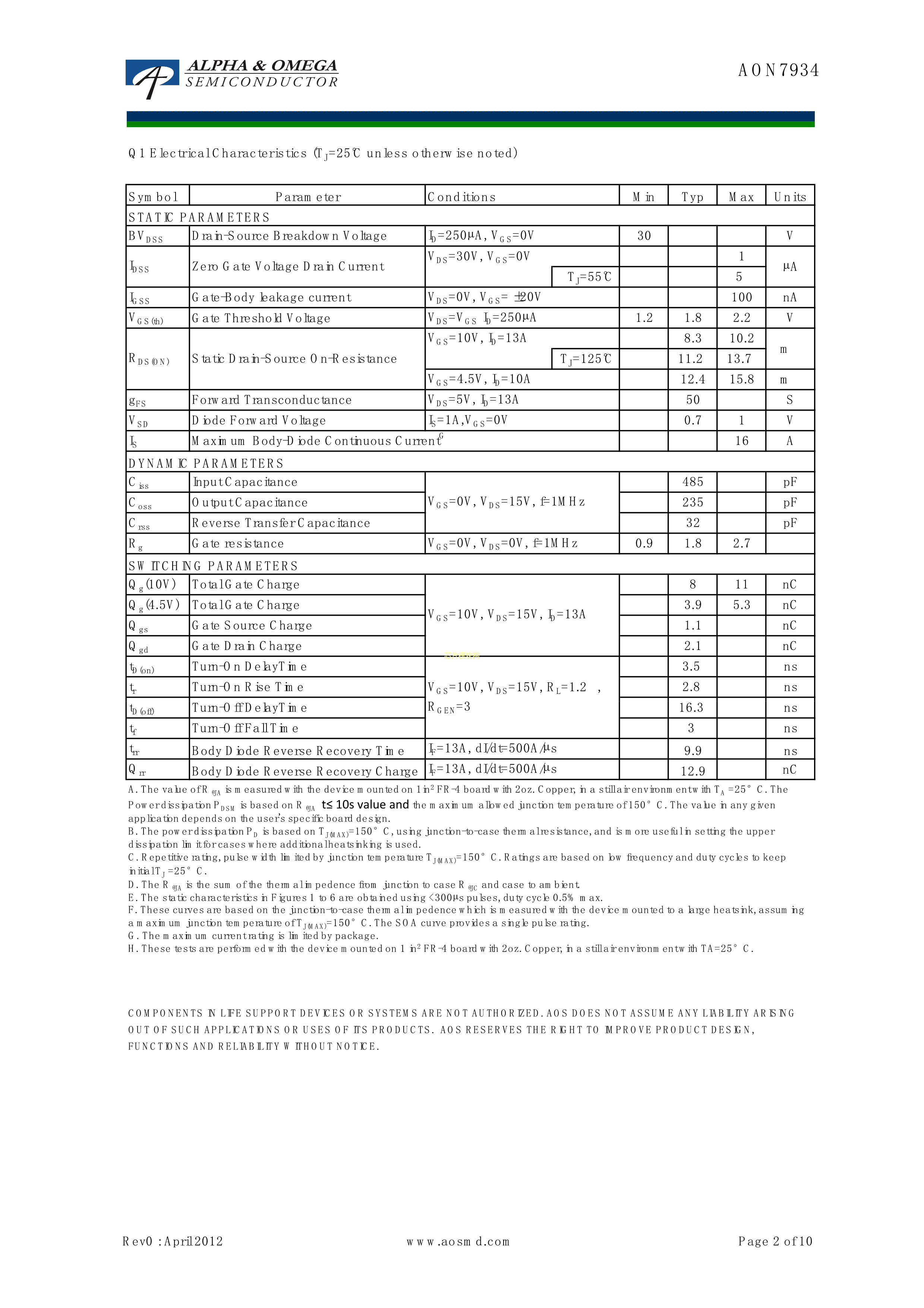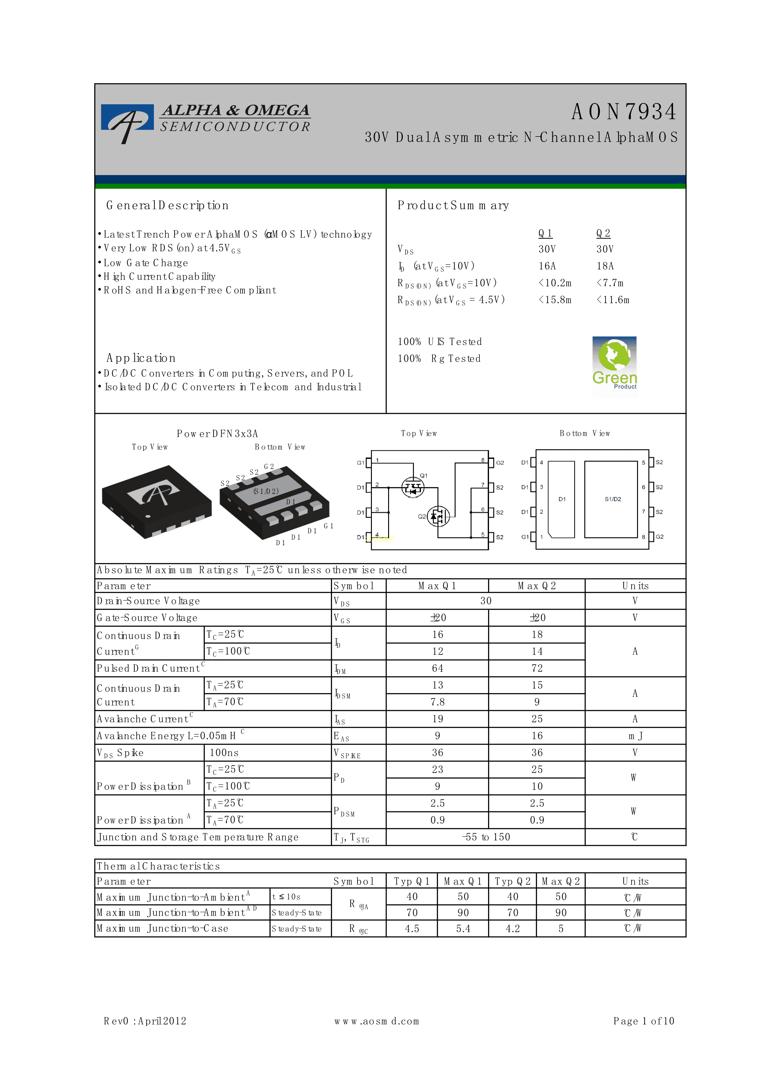 AON7934数据手册Power-DFN-3x3A封装AOSPDF规格书,中英文下载