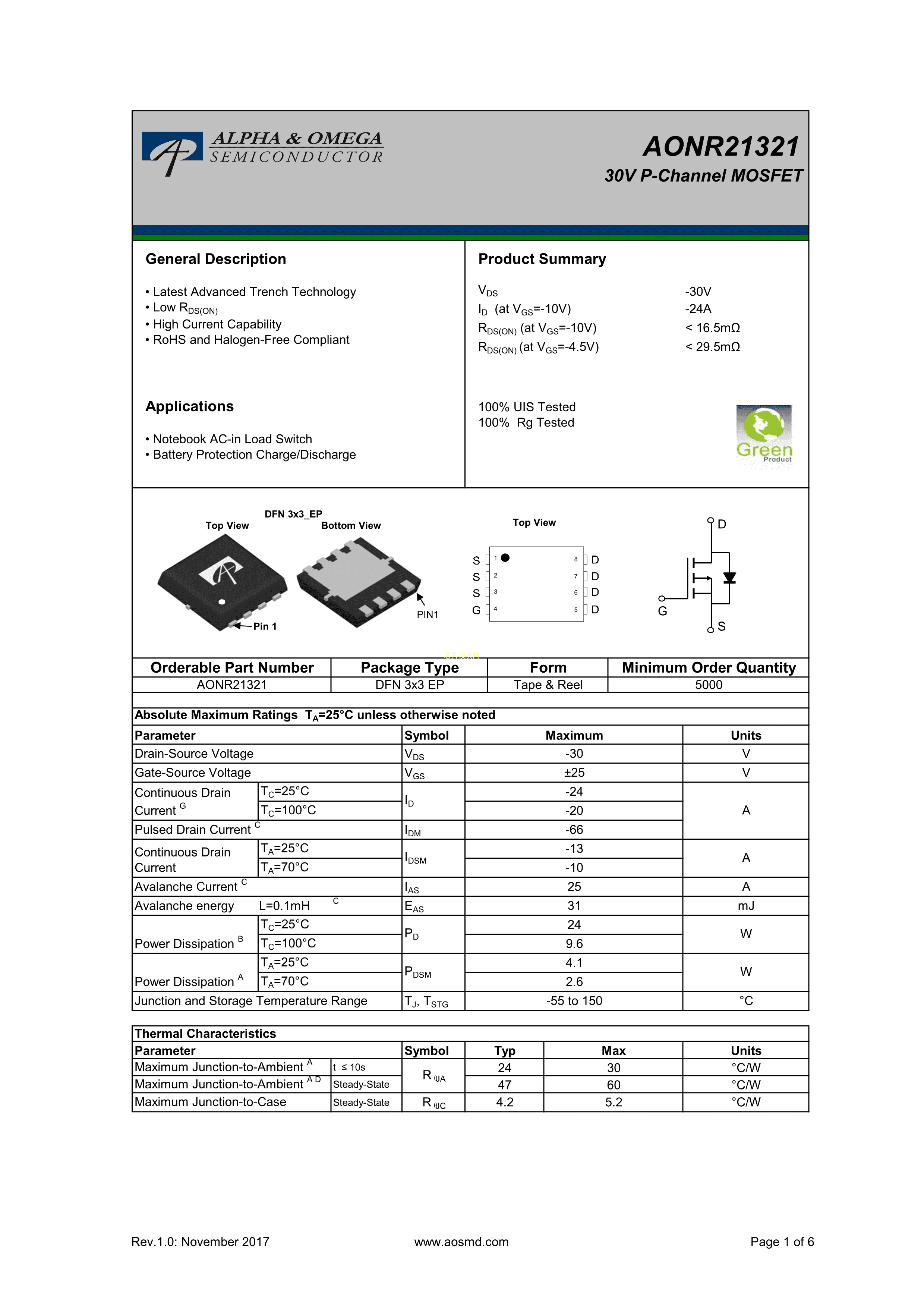 AONR21321数据手册DFN-8_EP封装AOSPDF规格书,中英文下载