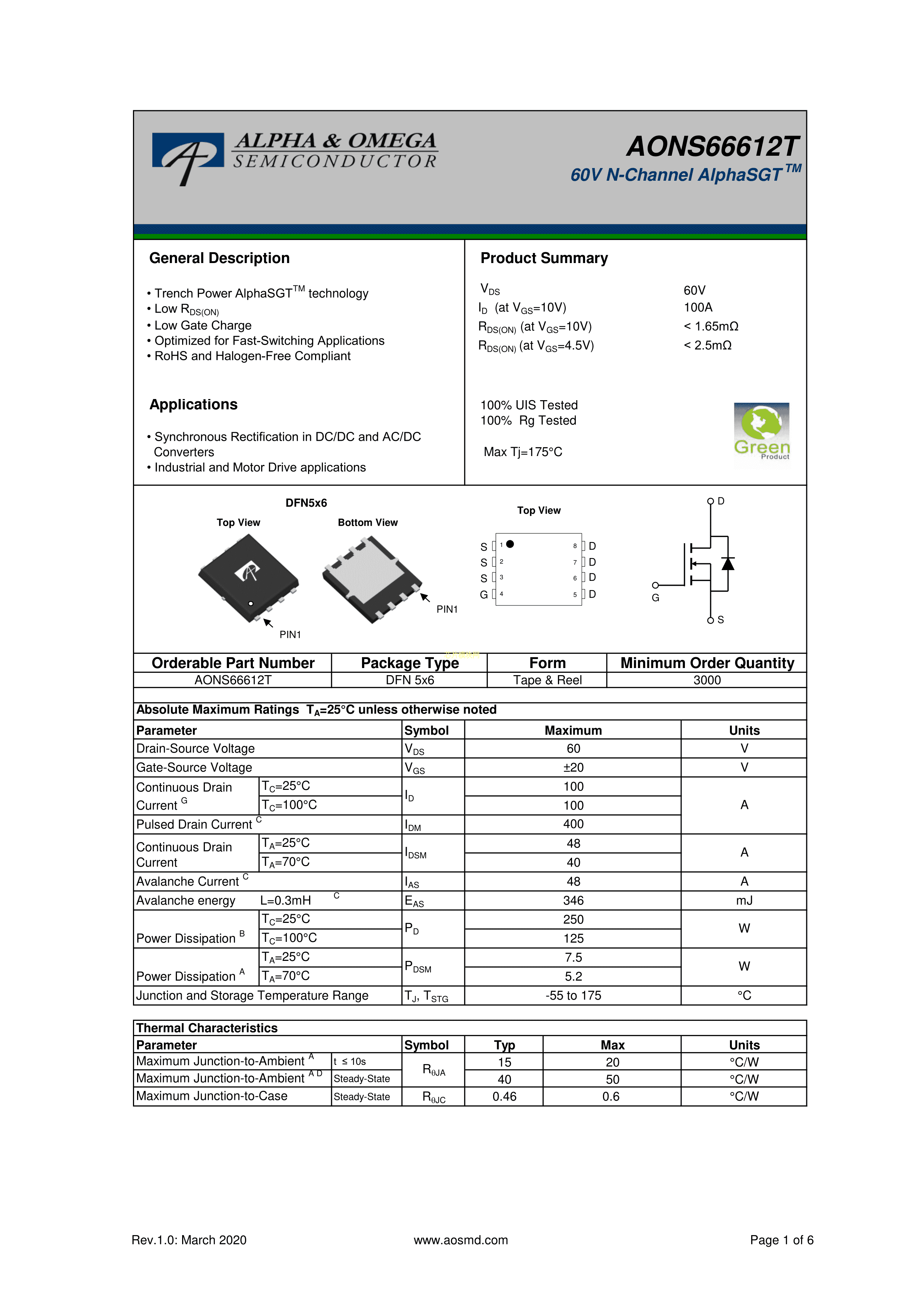 AONS66612TPDF规格书,中英文下载