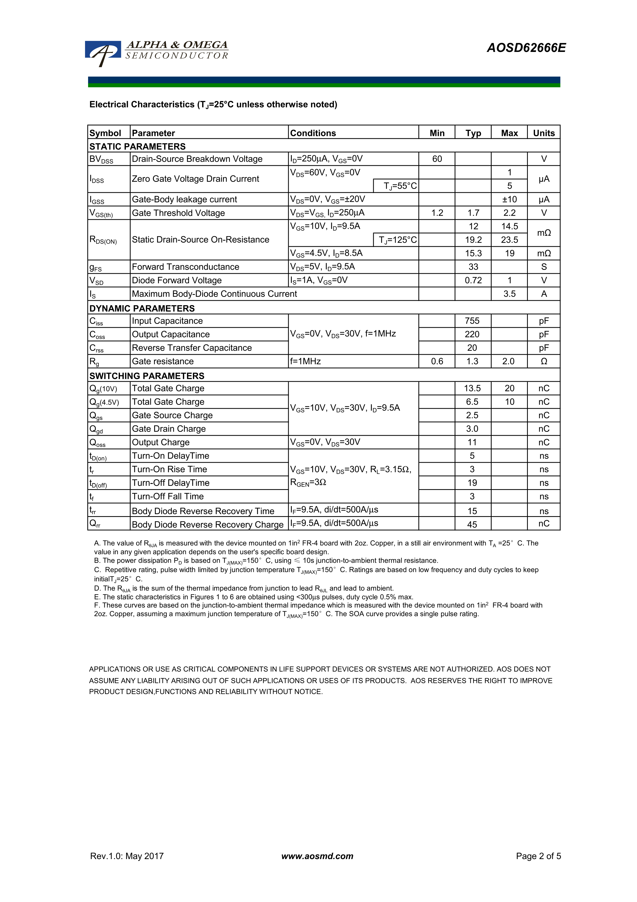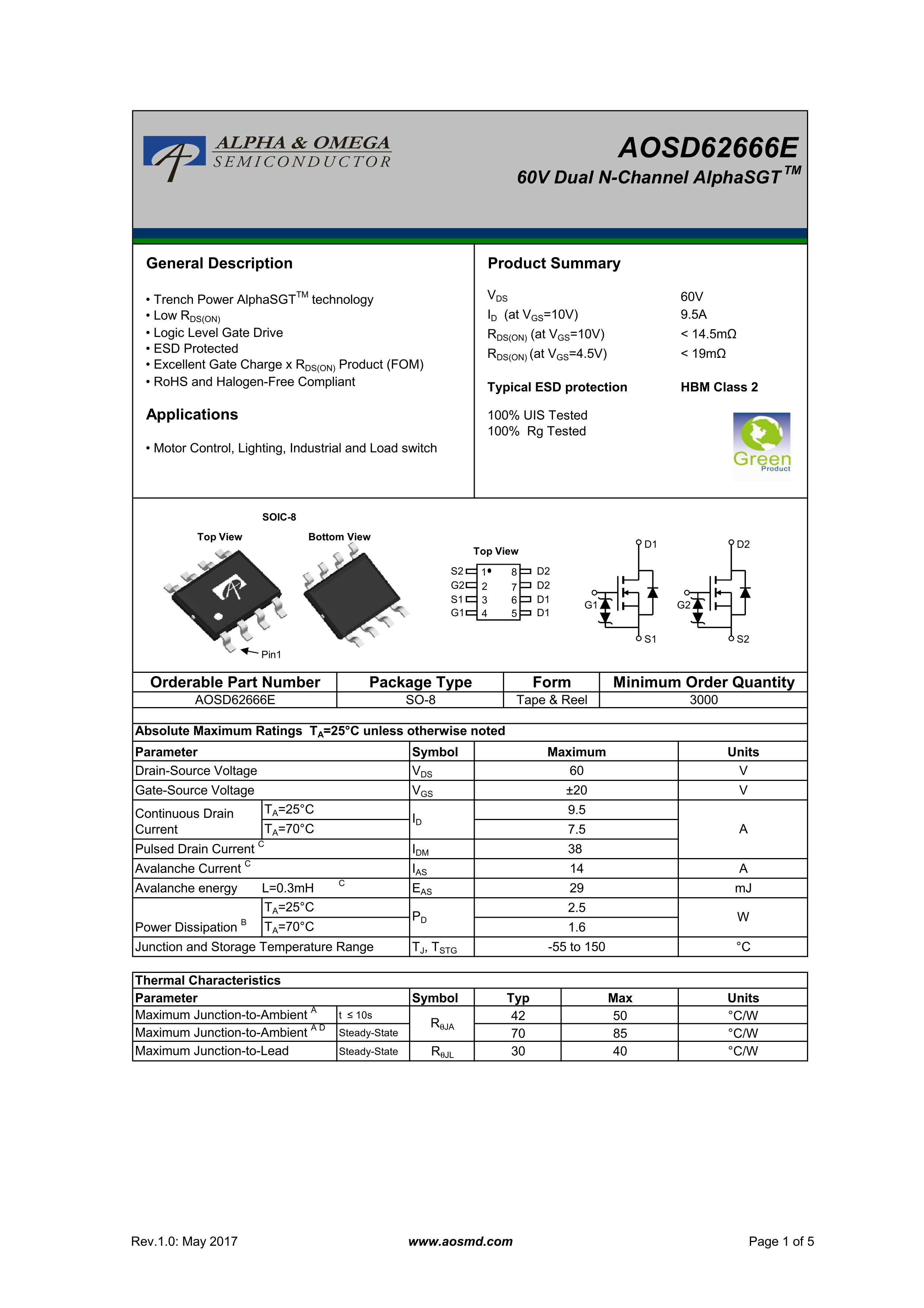 AOSD62666E数据手册SOIC-8封装AOSPDF规格书,中英文下载