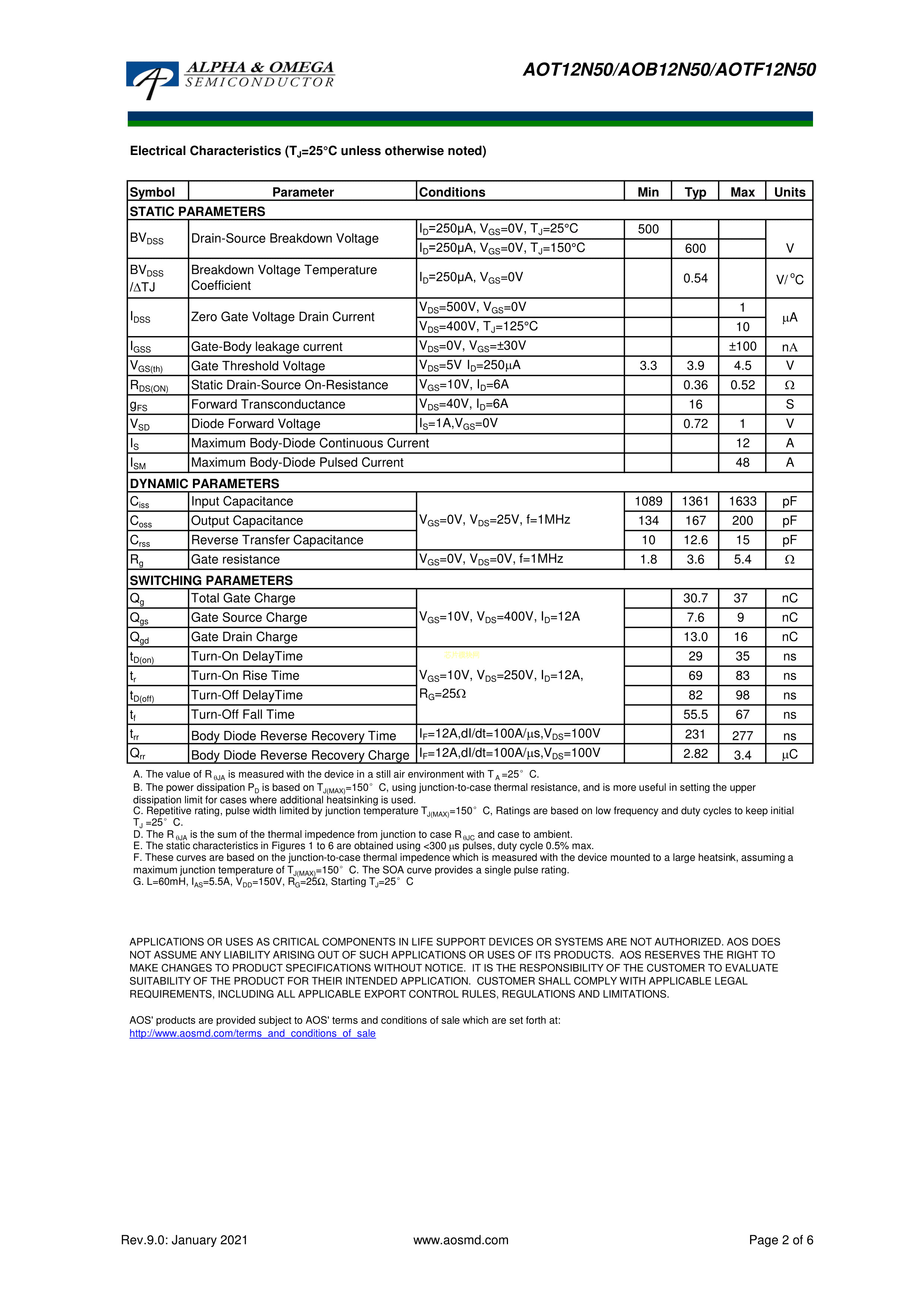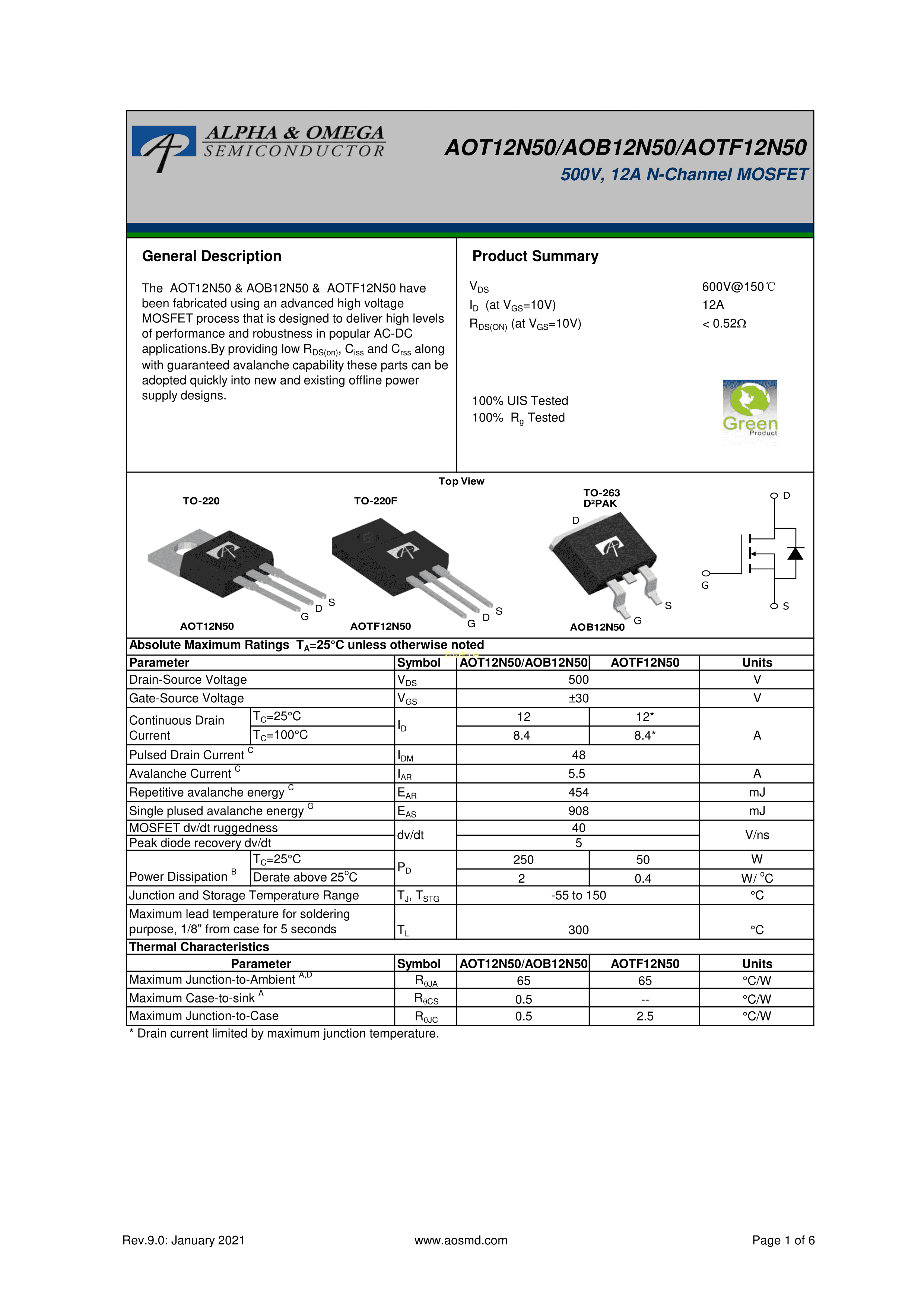 AOT12N50PDF规格书,中英文下载
