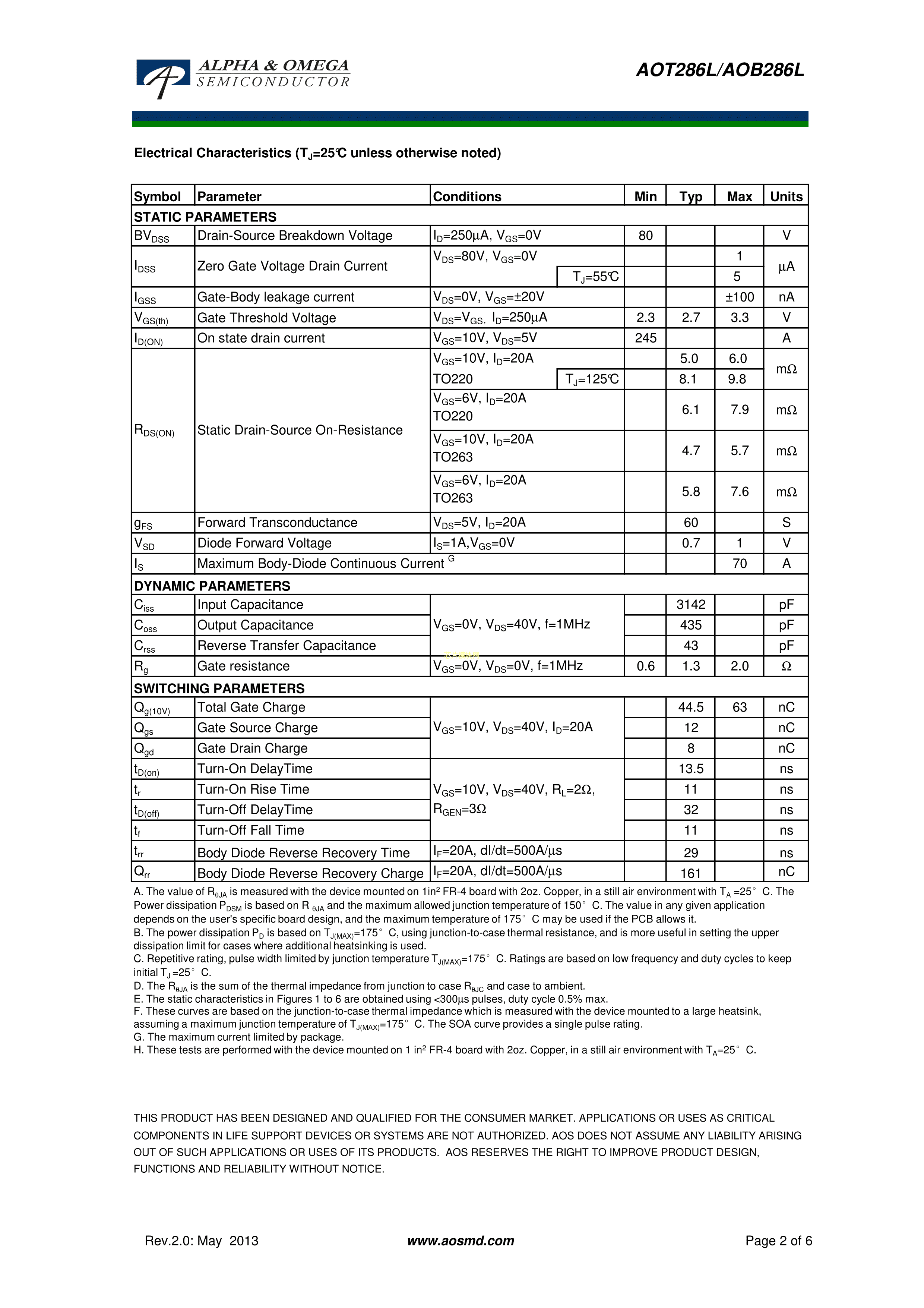 AOT286LPDF规格书,中英文下载