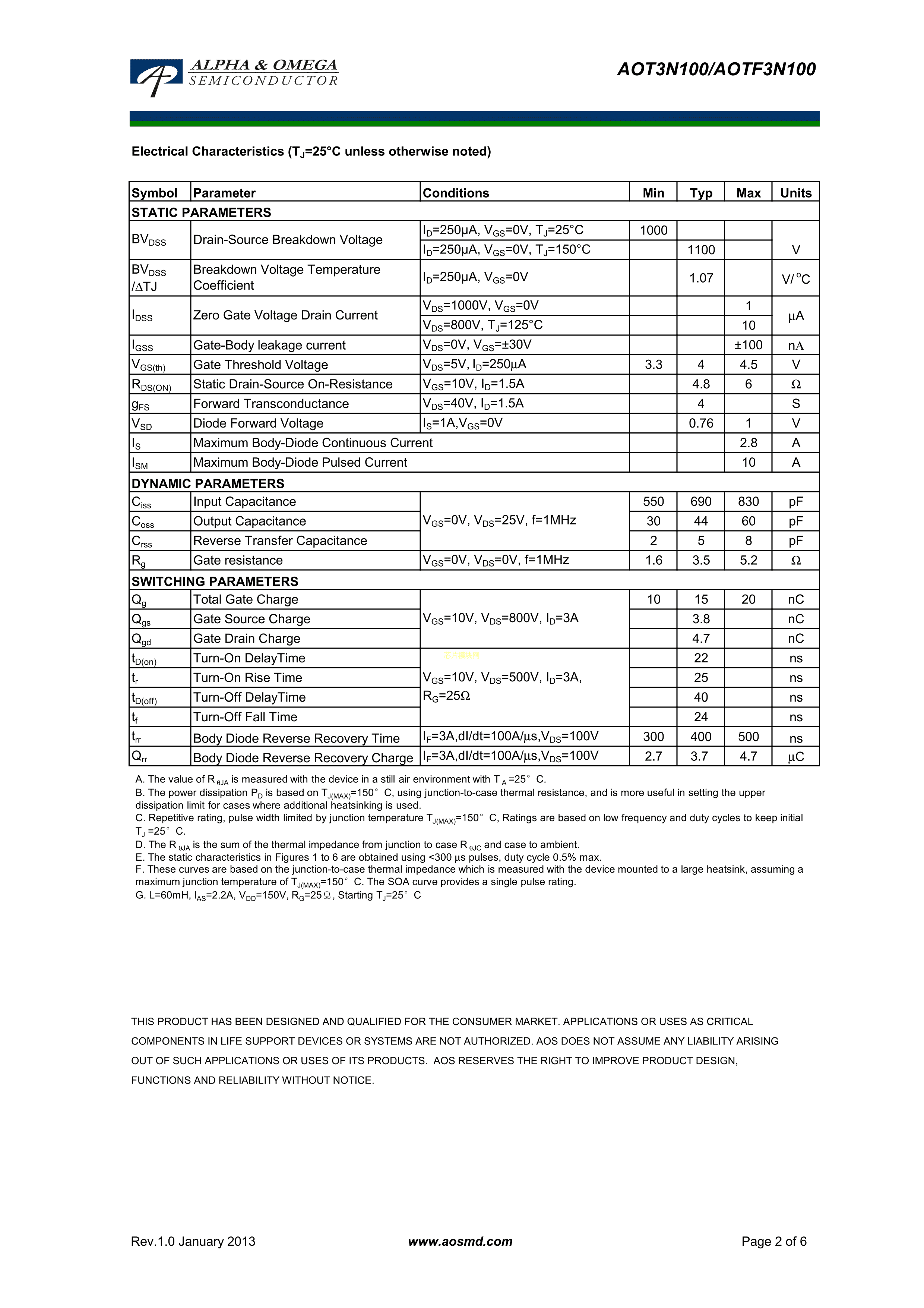 AOT3N100PDF规格书,中英文下载
