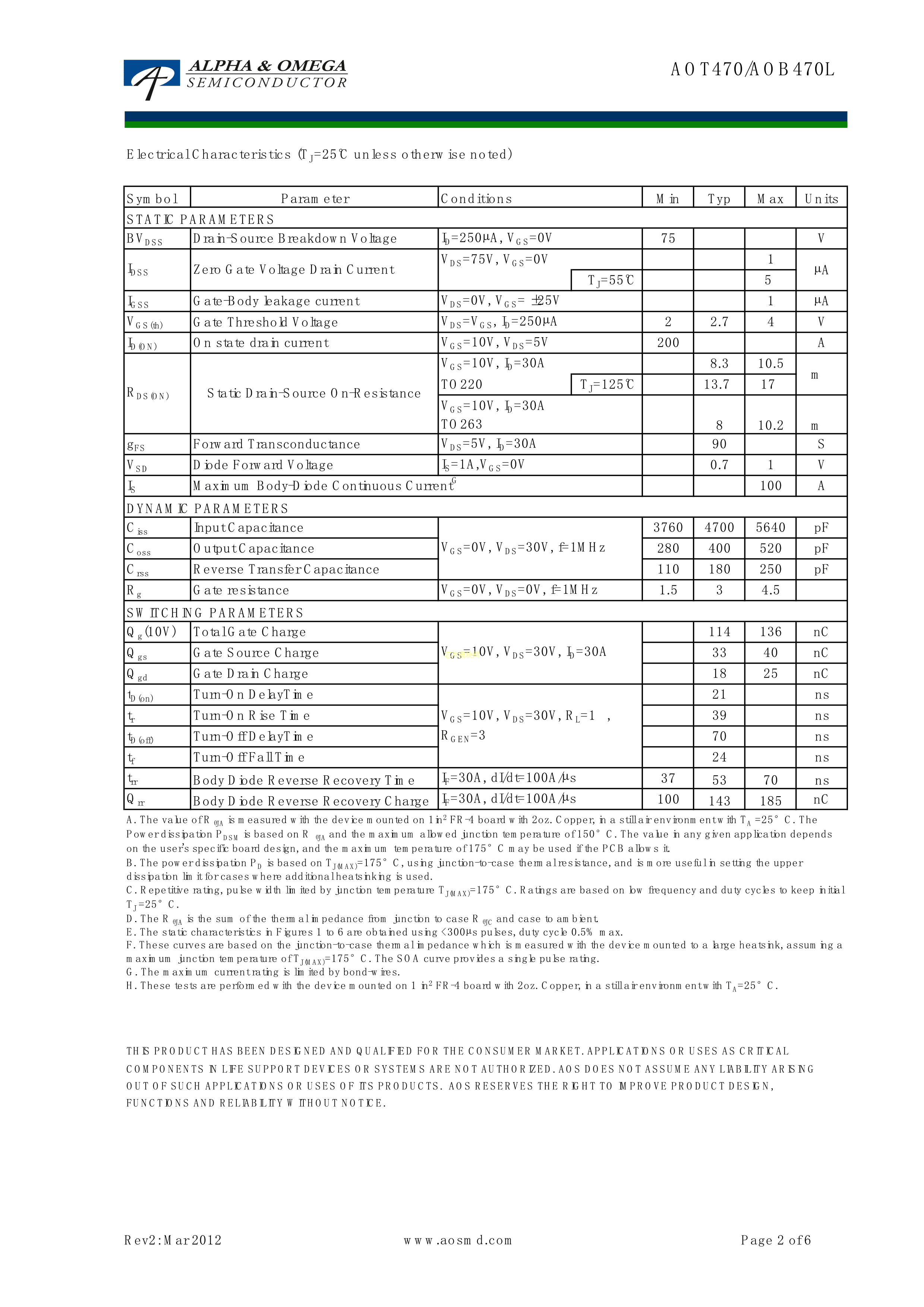 AOT470数据手册TO-220(TO-220-3)封装AOSPDF规格书,中英文下载