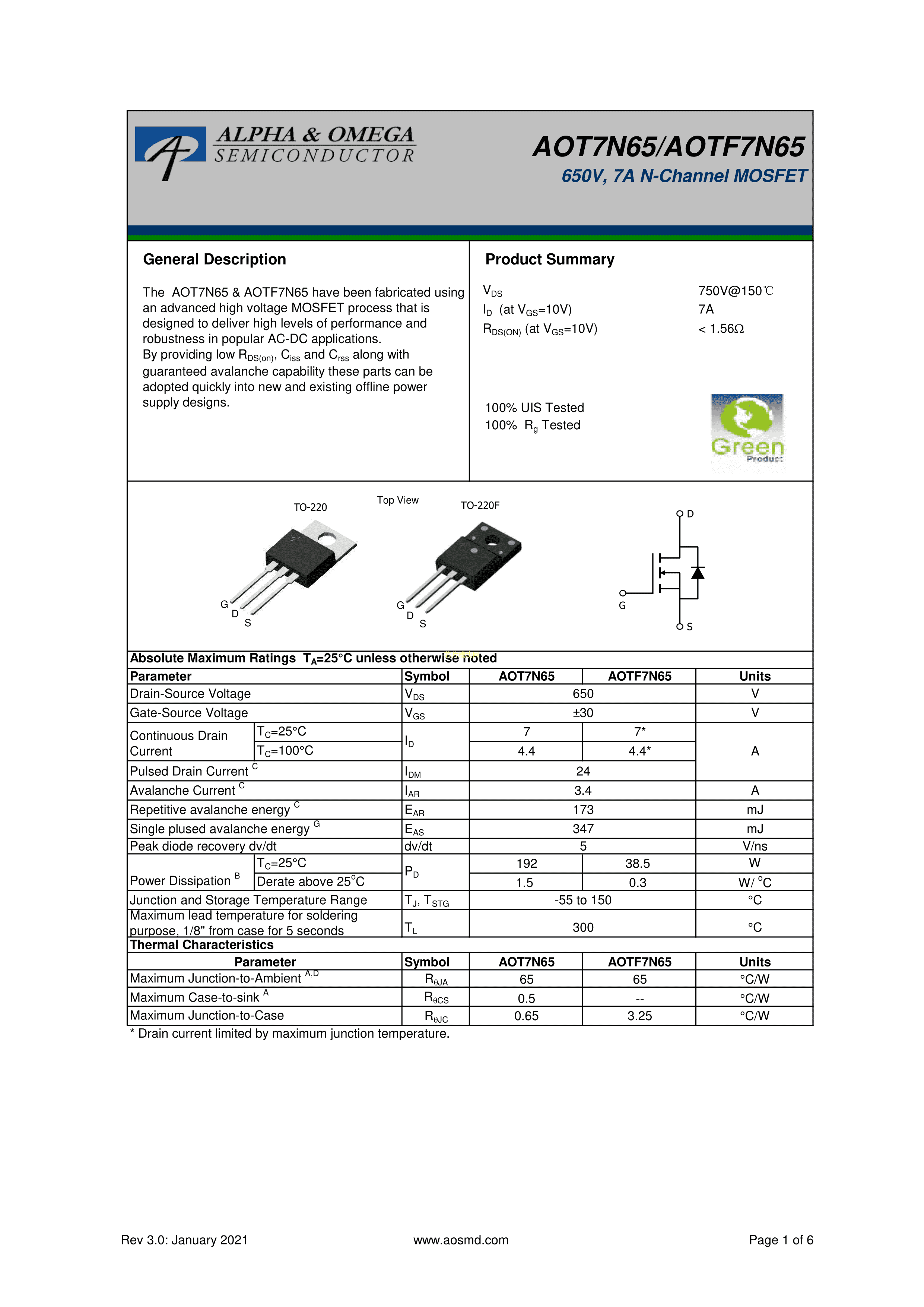 AOTF7N65PDF规格书,中英文下载