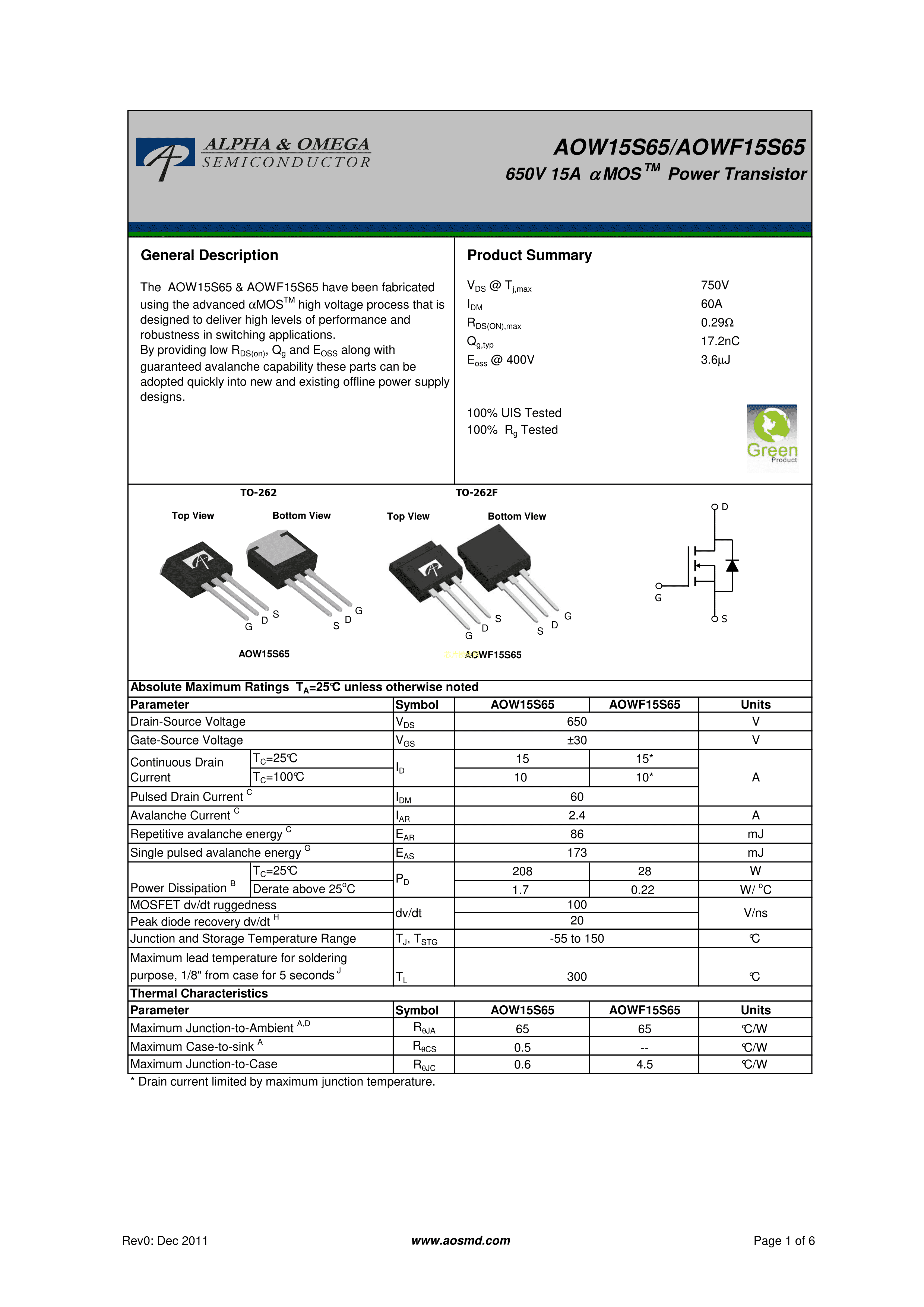 AOWF15S65PDF规格书,中英文下载