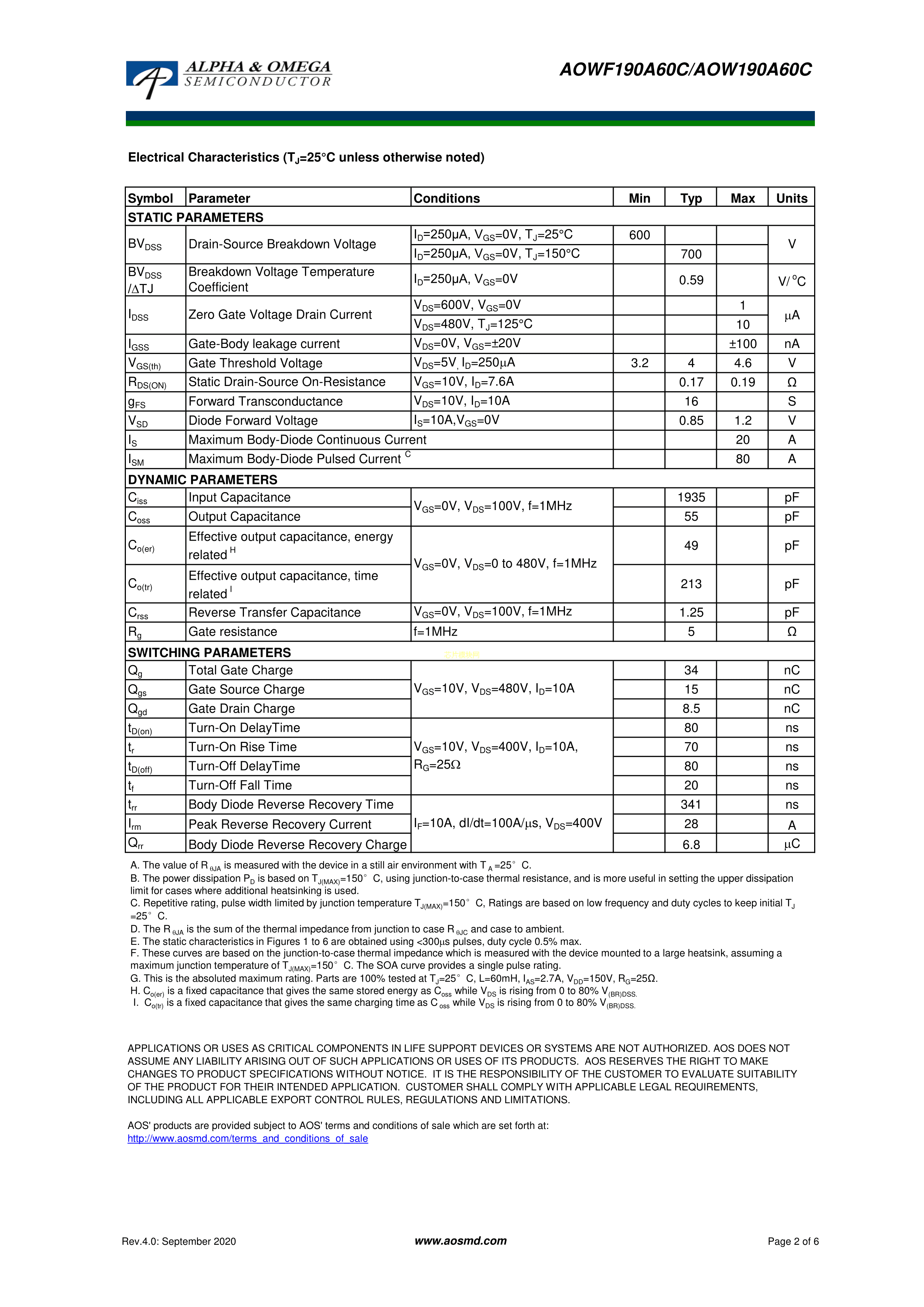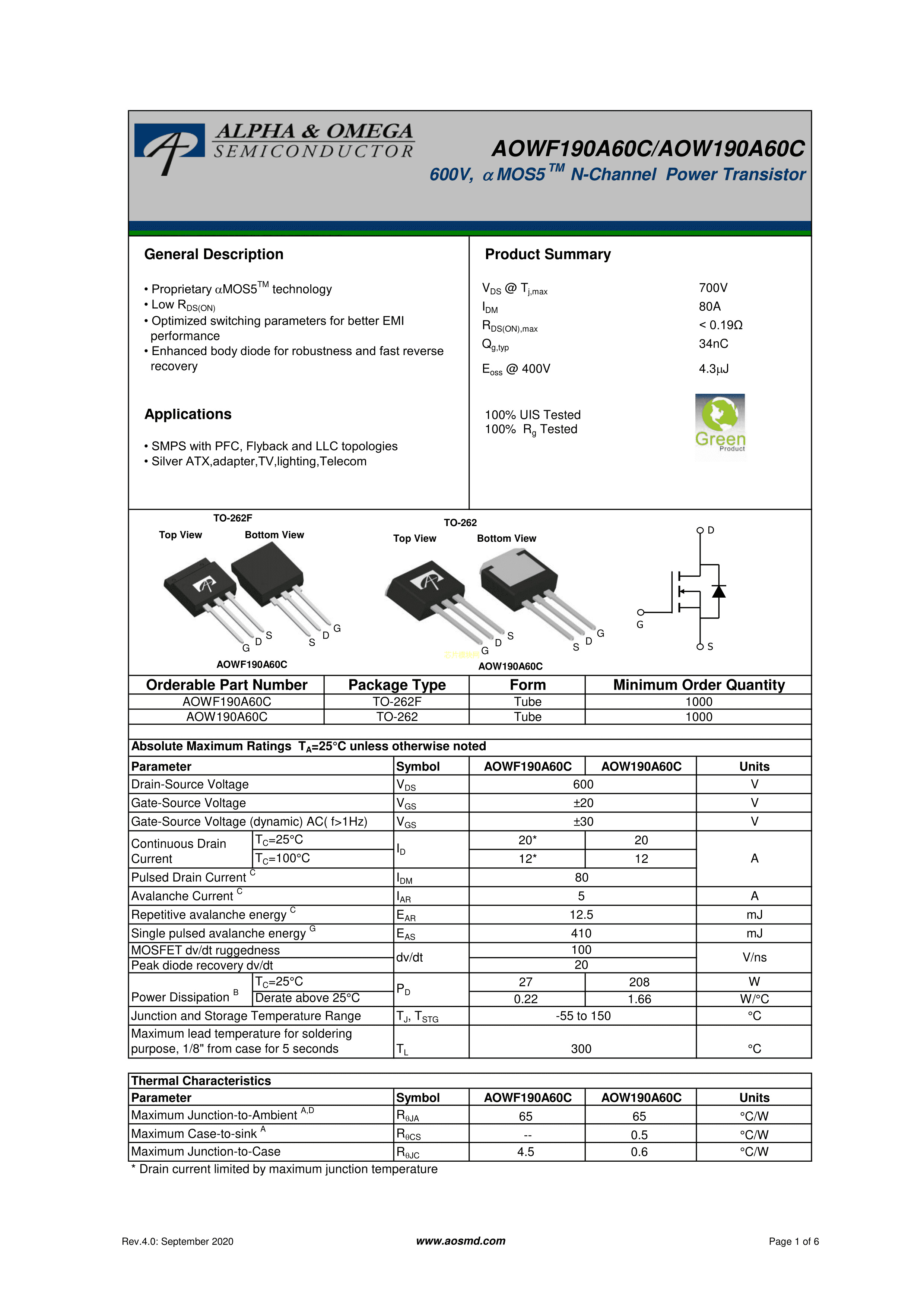 AOWF190A60CPDF规格书,中英文下载