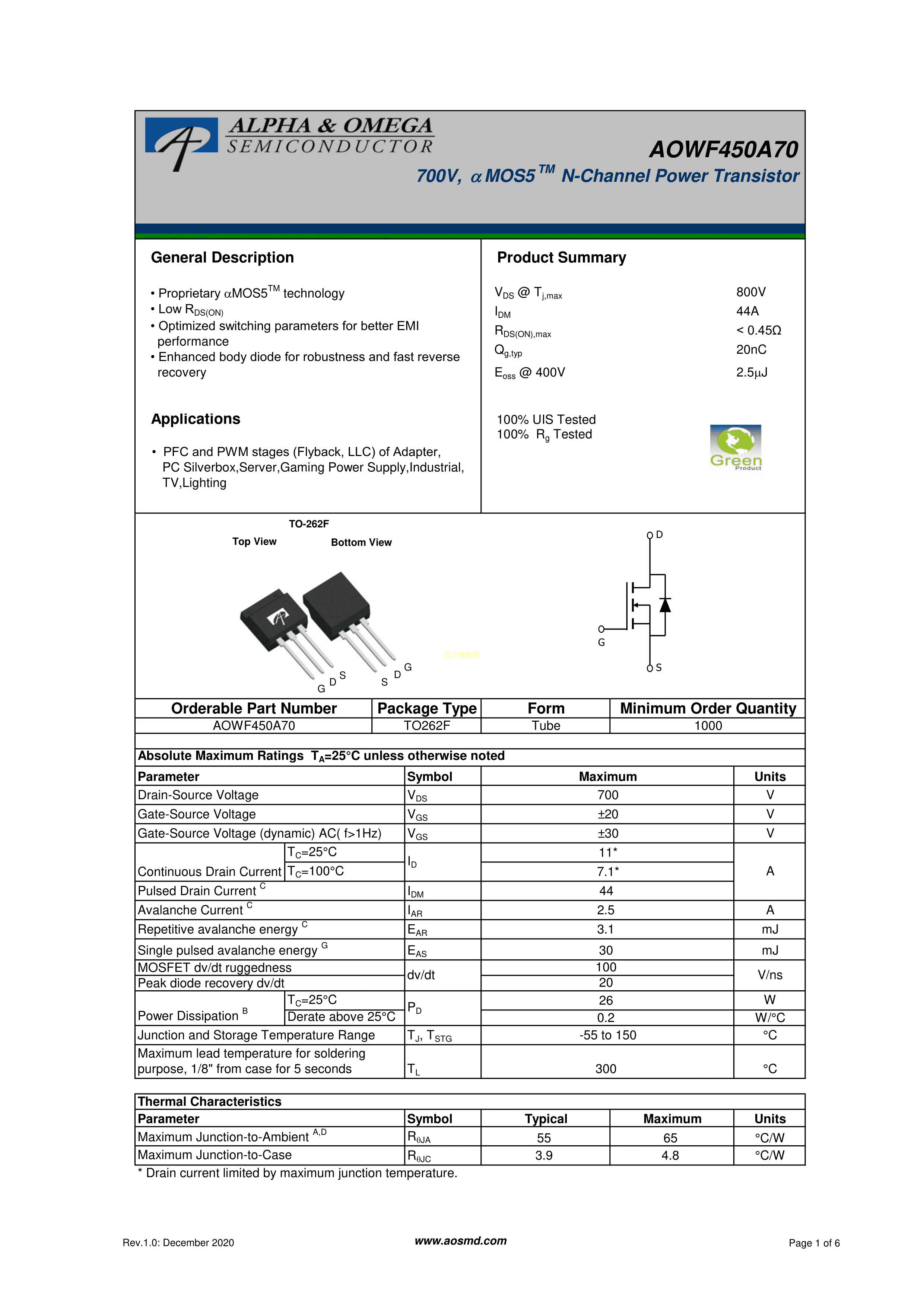 AOWF450A70PDF规格书,中英文下载