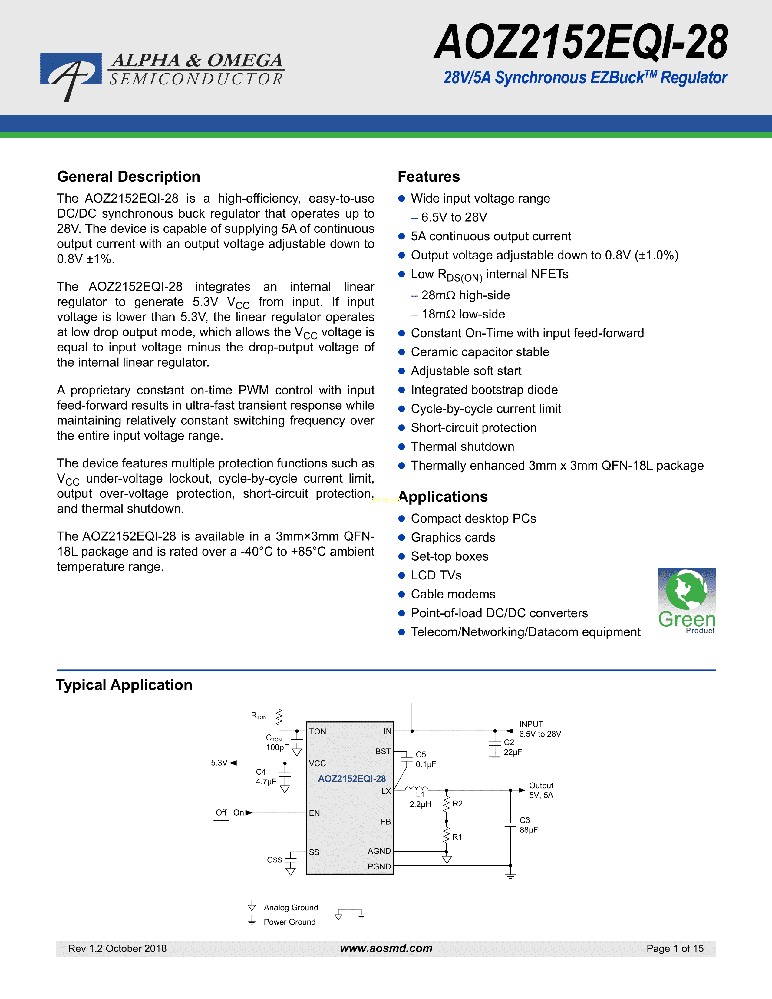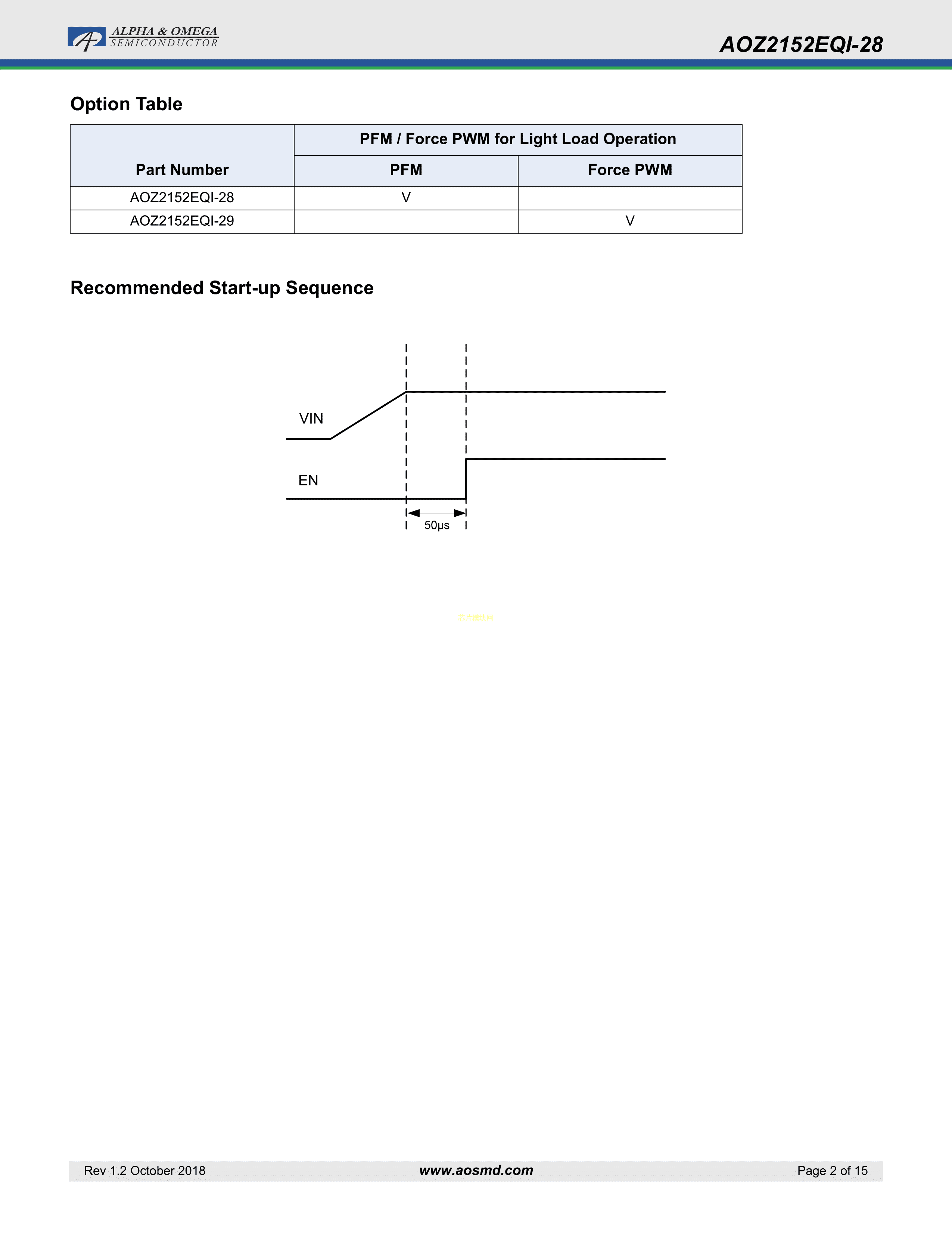 AOZ2152EQI-28数据手册QFN-18(3x3)封装AOSPDF规格书,中英文下载