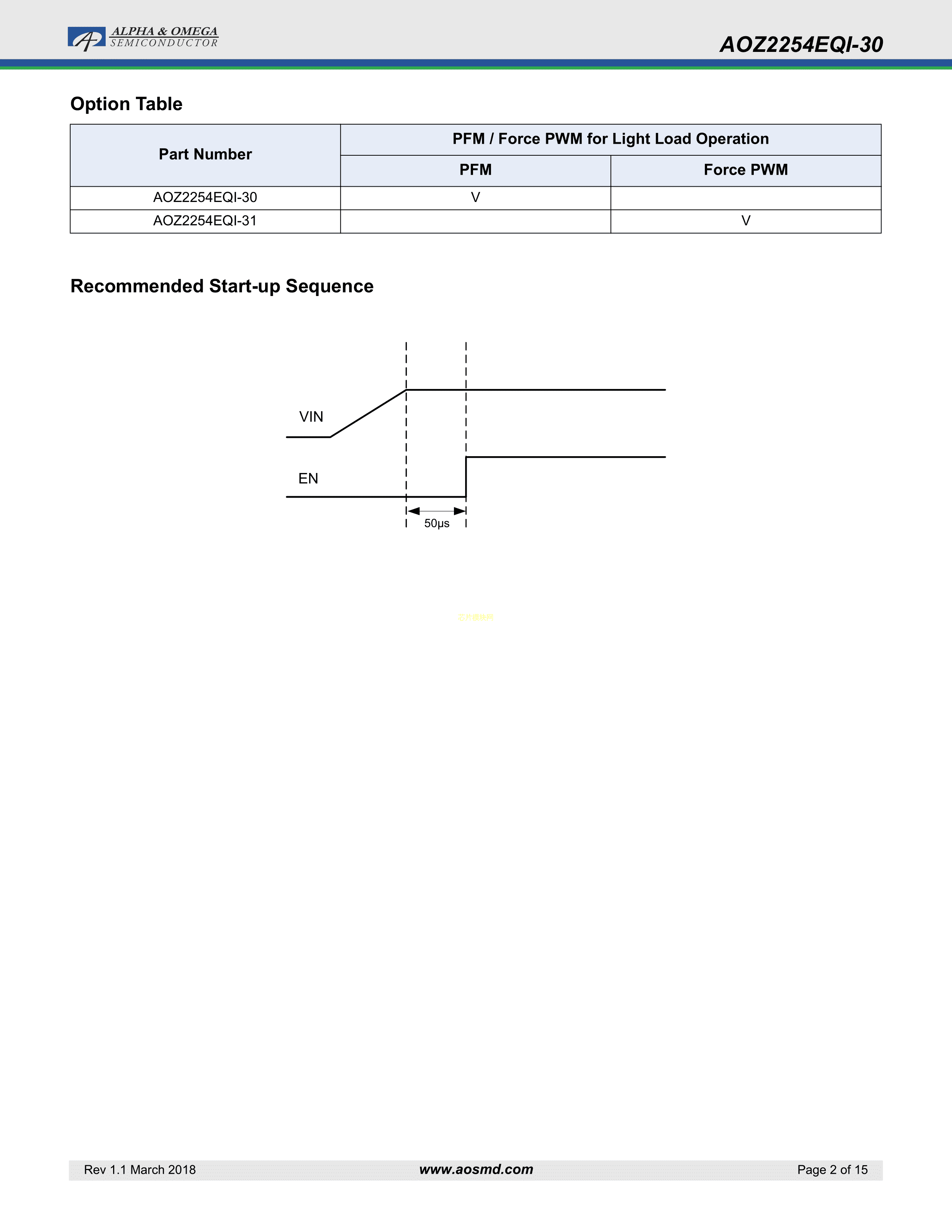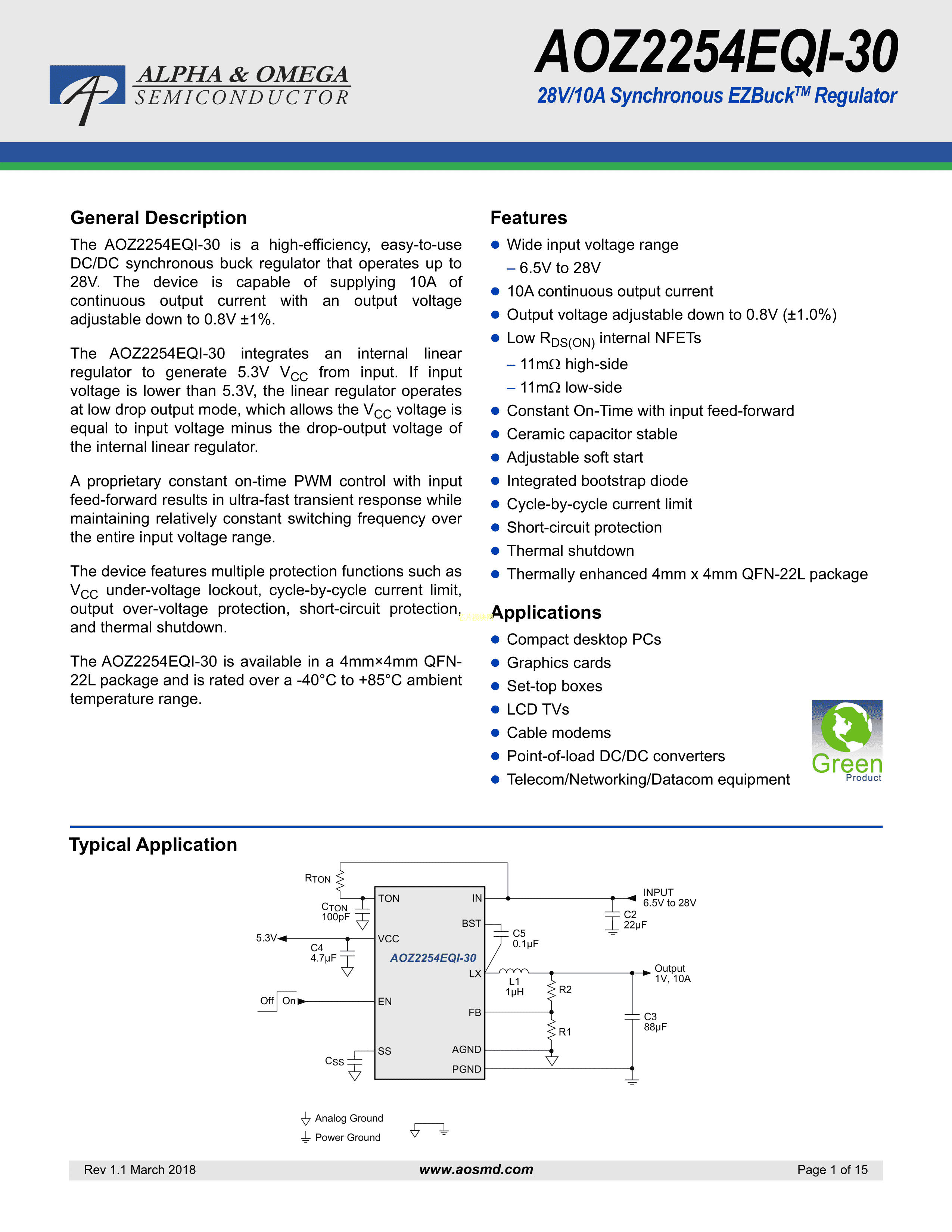 AOZ2254EQI-30数据手册QFN-22(4x4)封装AOSPDF规格书,中英文下载