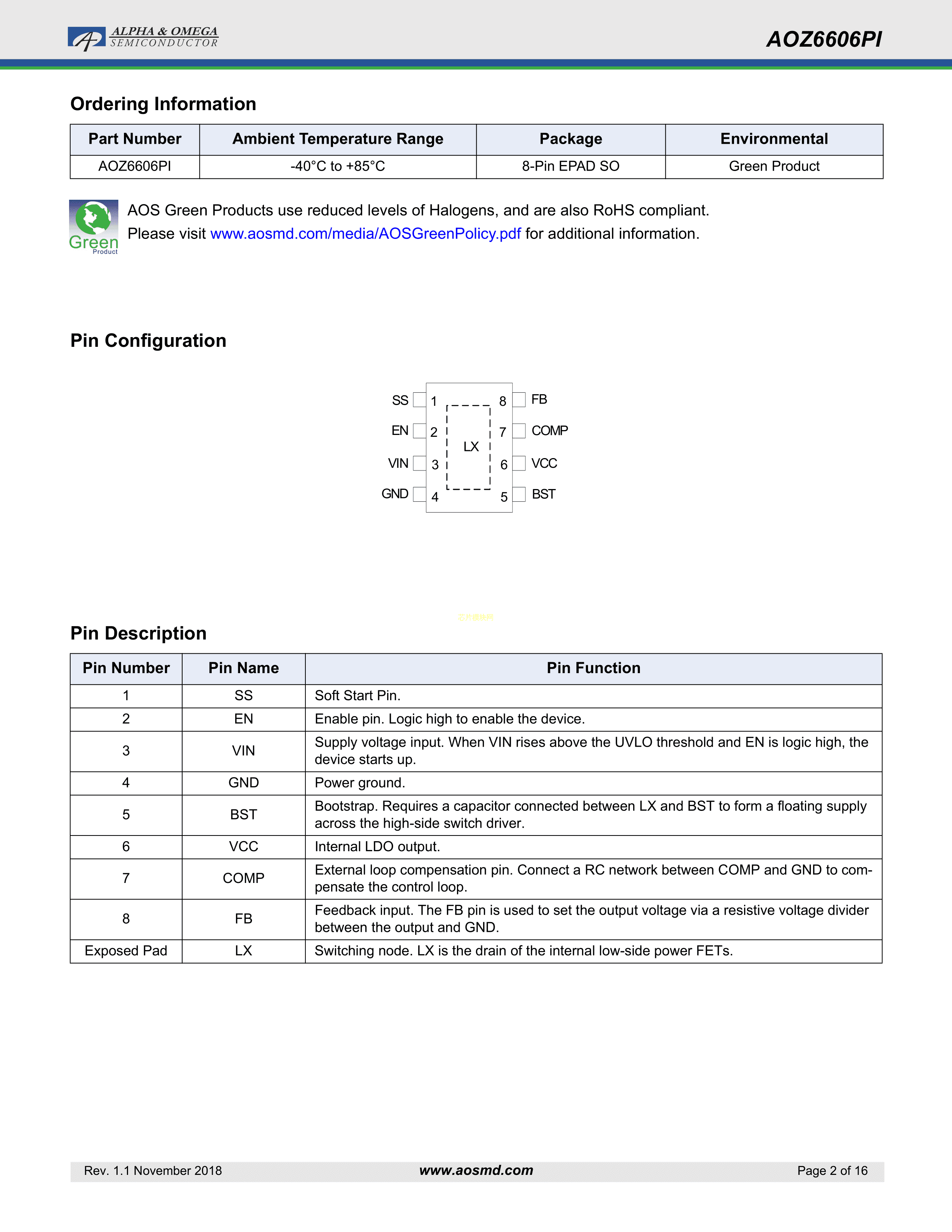 AOZ6606PI数据手册SO-8EP封装AOSPDF规格书,中英文下载