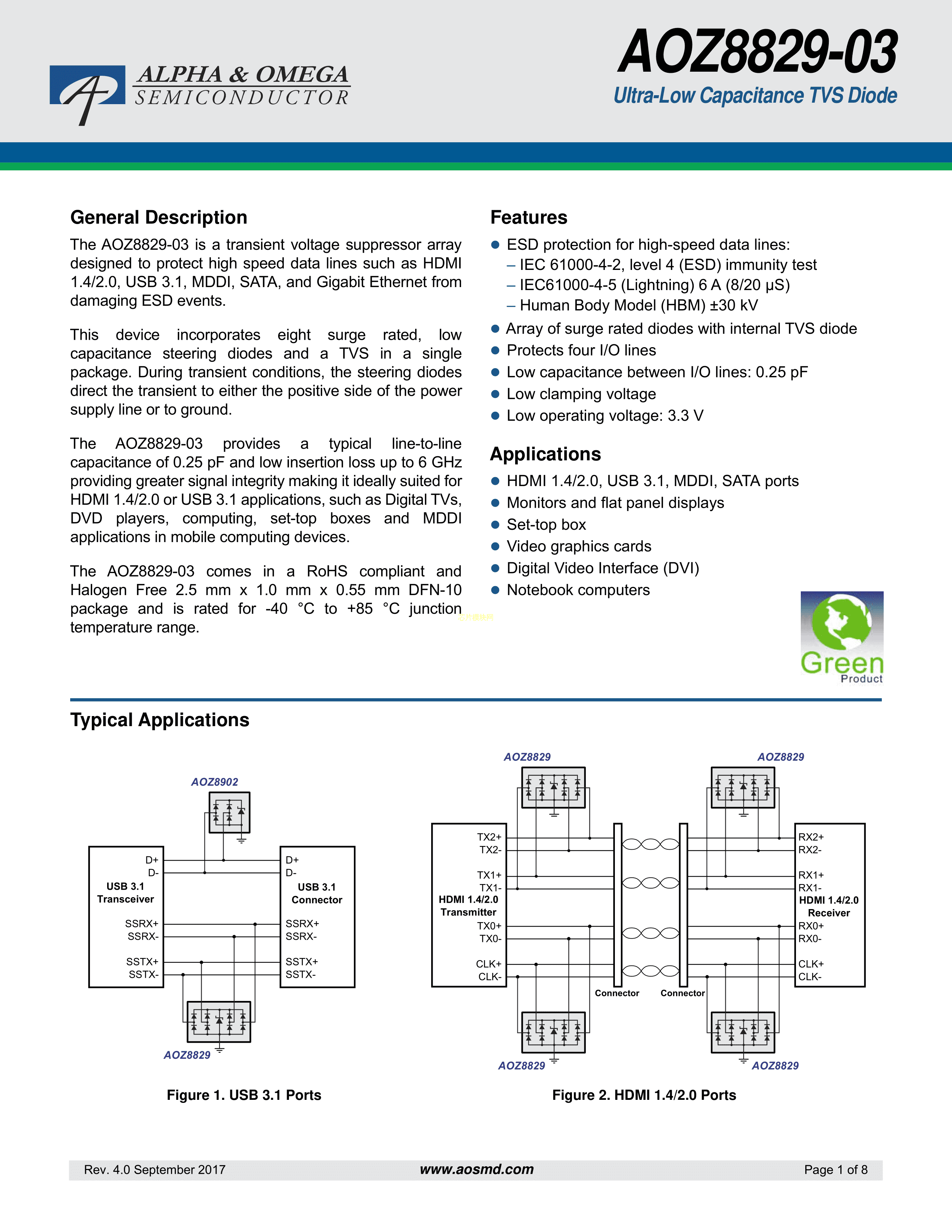 AOZ8829DI-03数据手册DFN-3(1x0.6)封装AOSPDF规格书,中英文下载