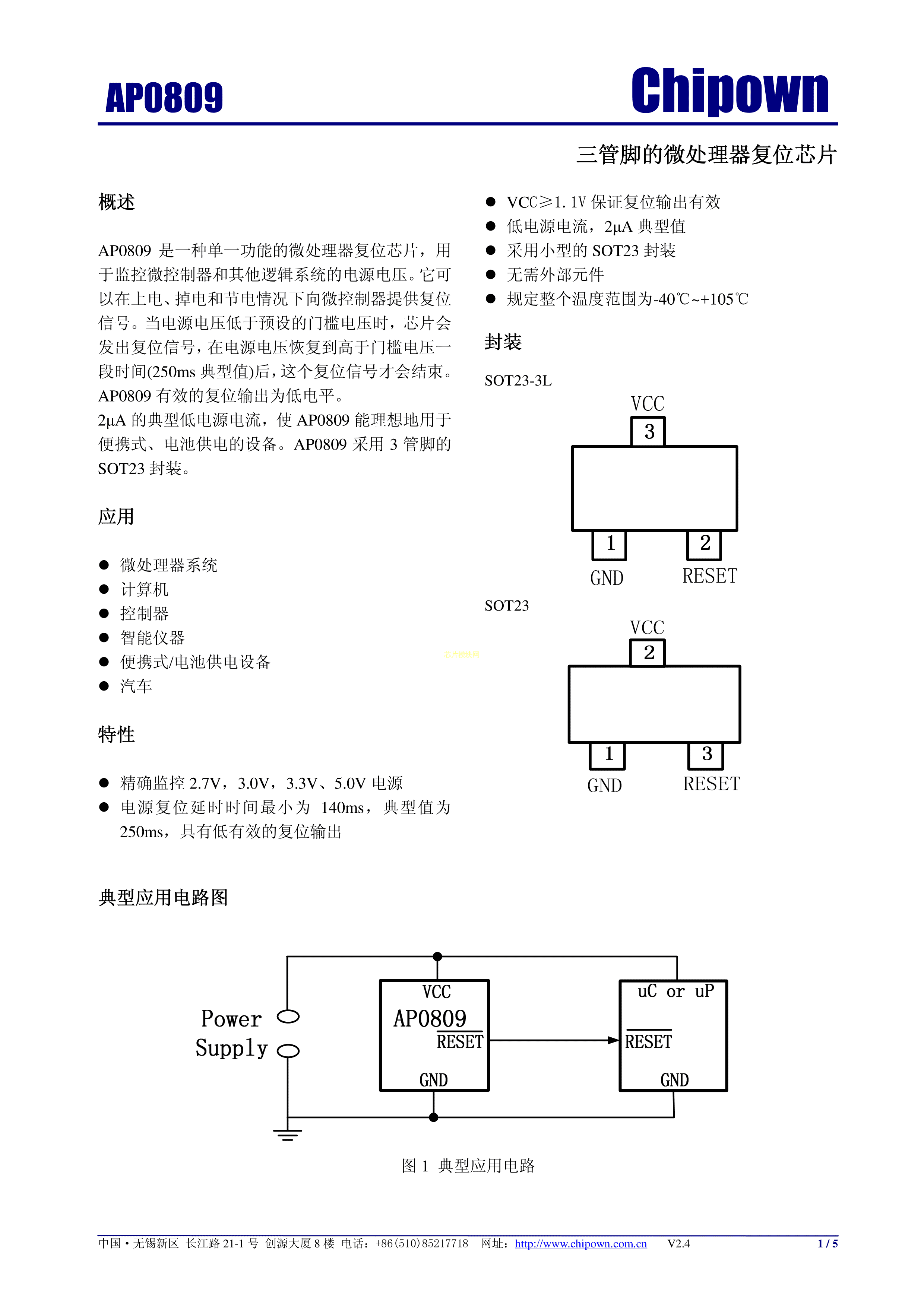 AP0809ES3-s数据手册SOT-23(SOT-23-3)封装chipown(芯朋微电子)PDF
