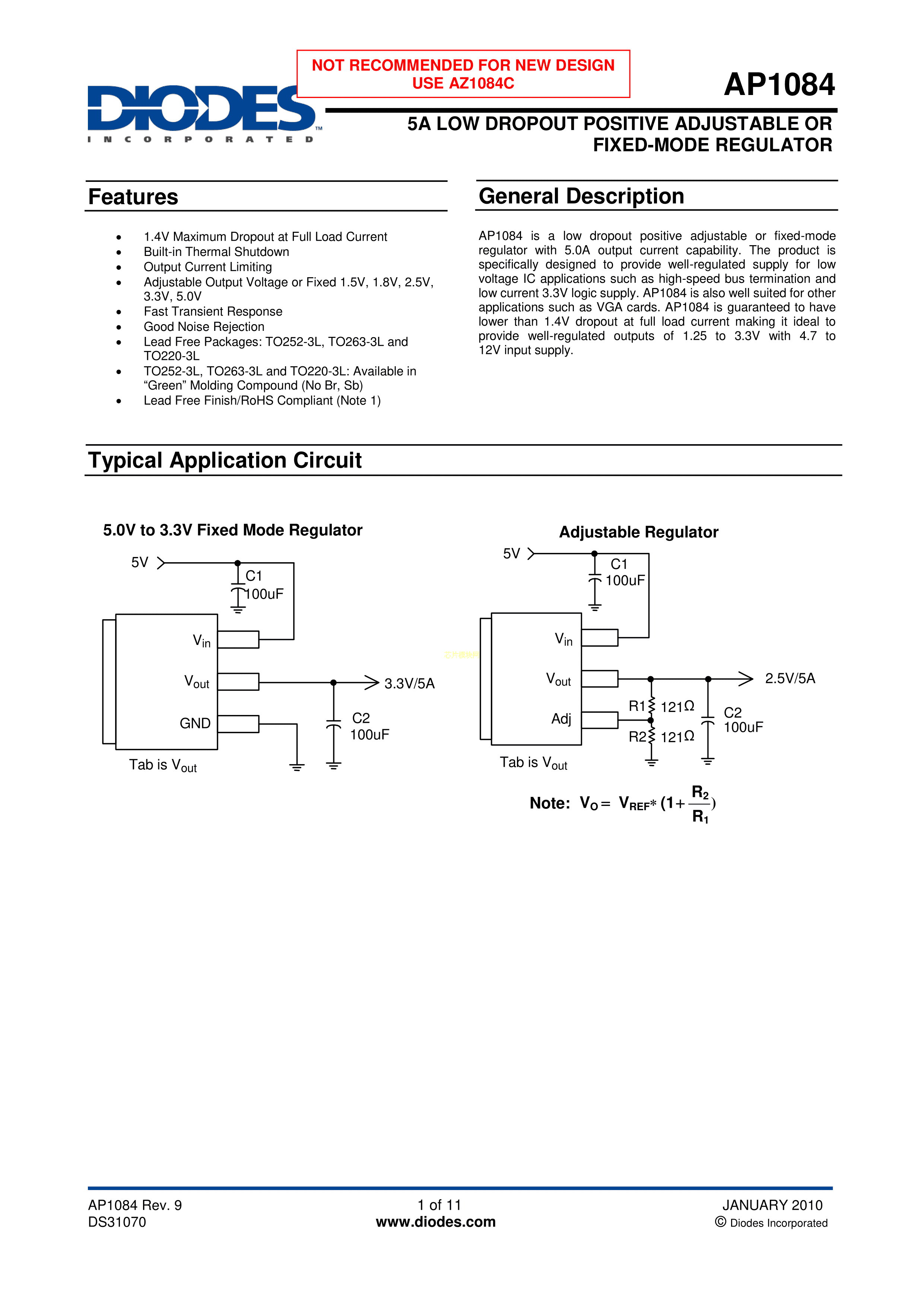 AP1084KG-13数据手册TO-263-3封装DIODES(美台)PDF规格书,中英文下载