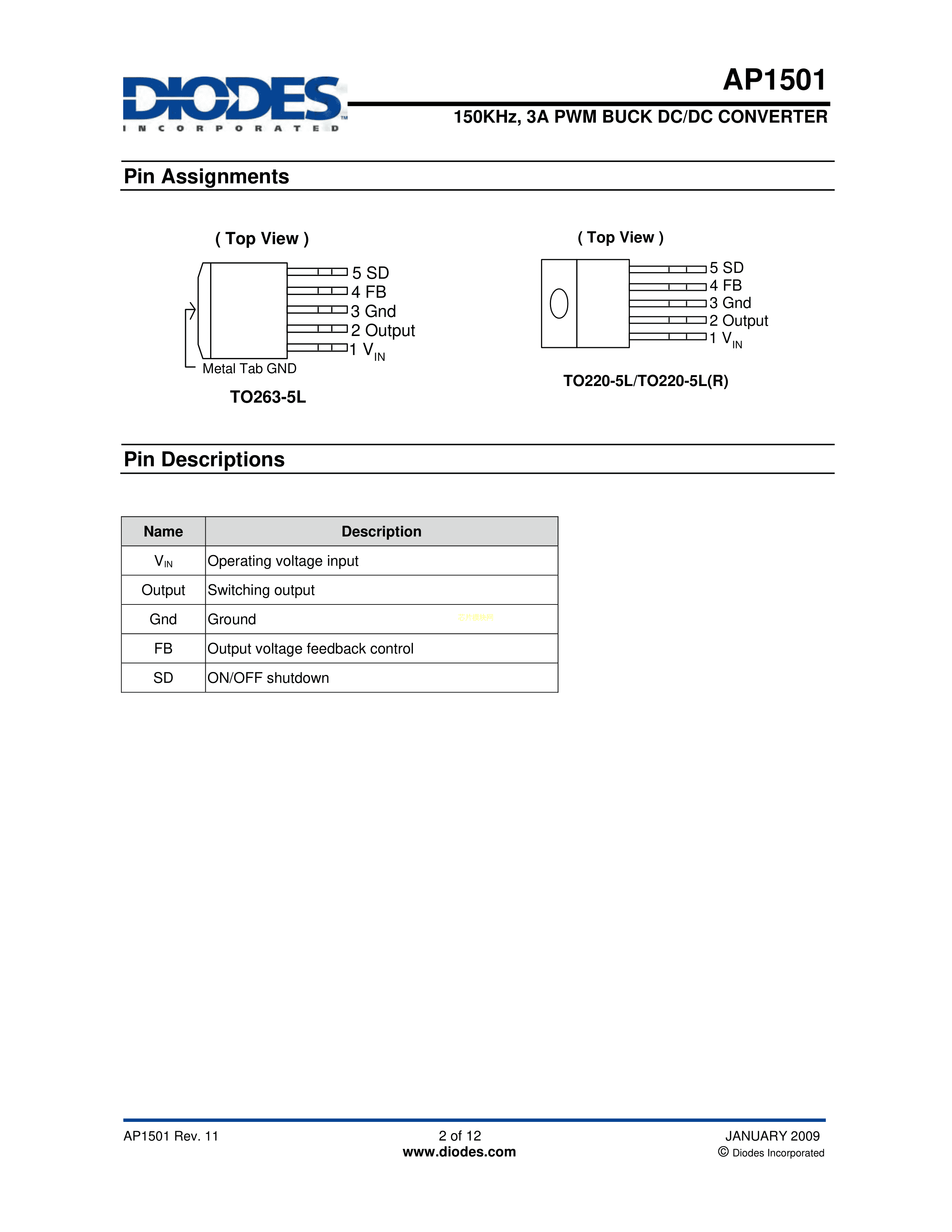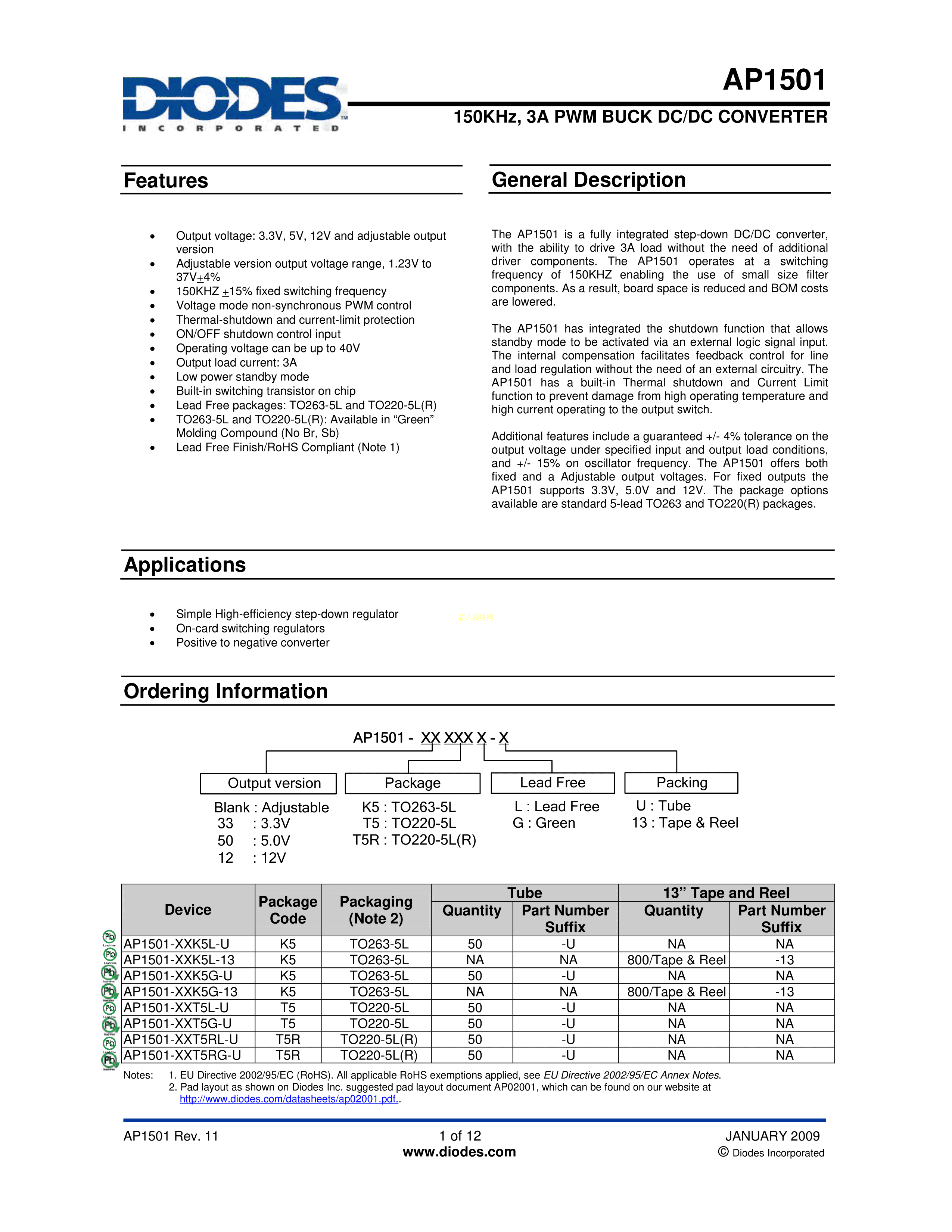 AP1501-33K5G-13数据手册TO-263-5封装DIODES(美台)PDF规格书,中英文下