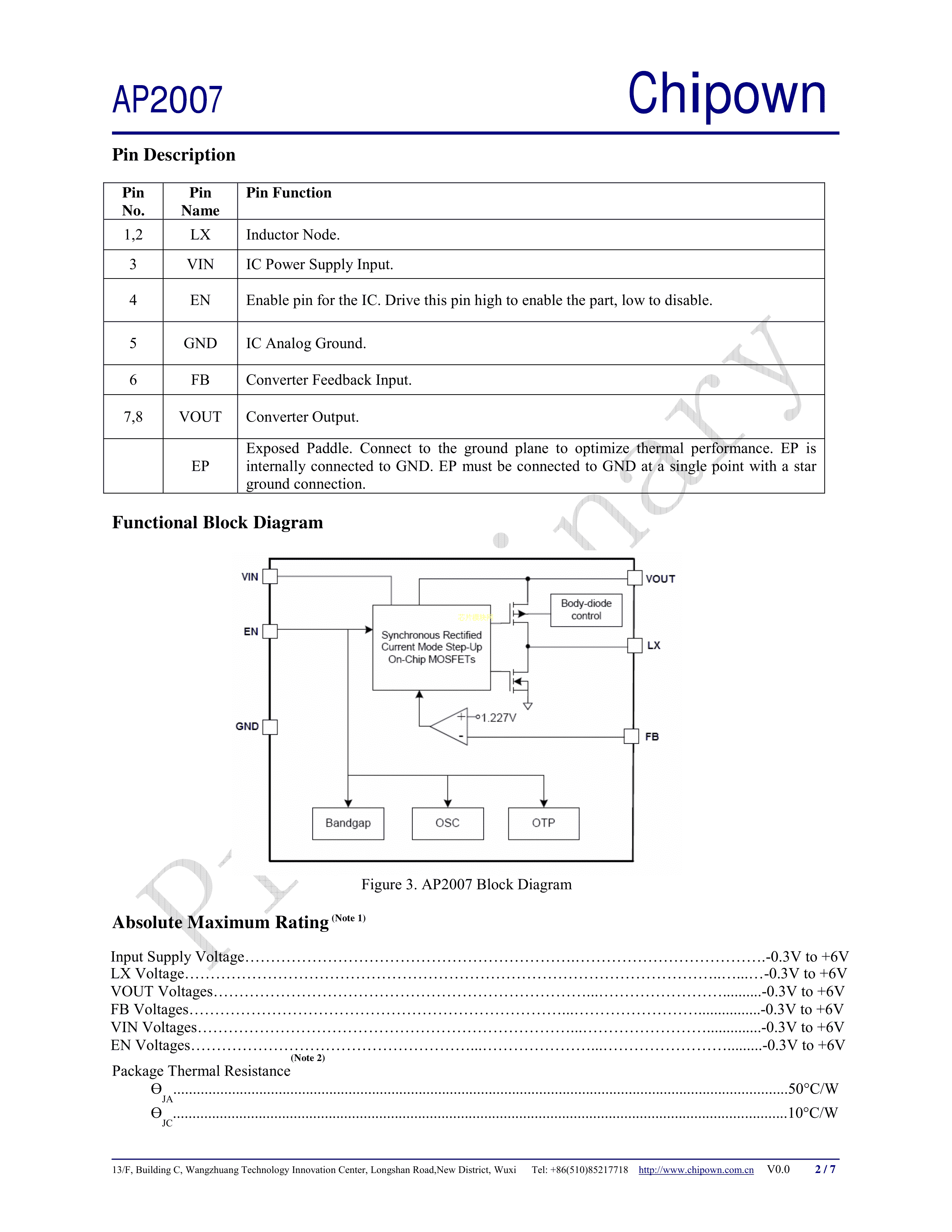 AP2007SPER数据手册SOP-8EP_150mil封装chipown(芯朋微电子)PDF规格书