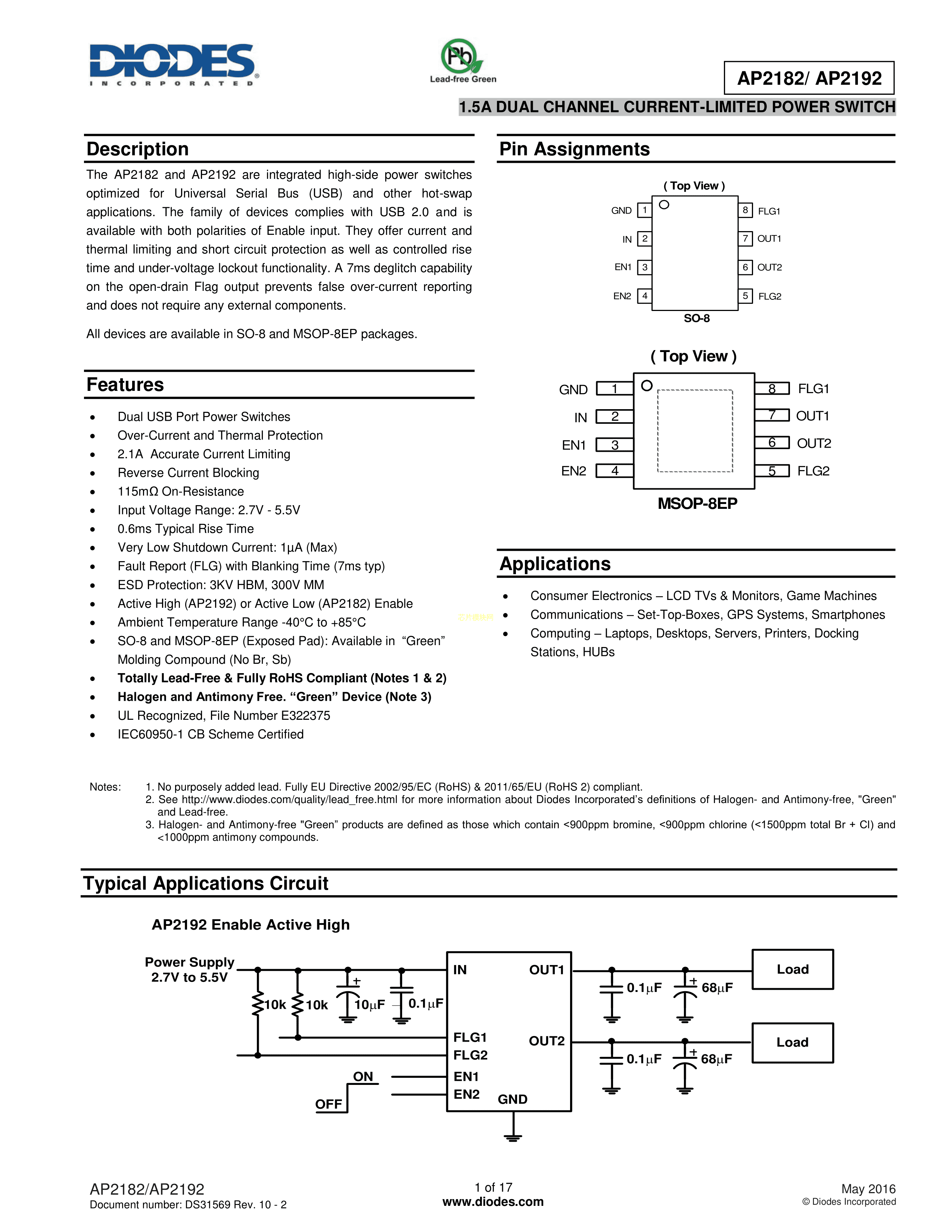 AP2182MPG-13数据手册MSOP-8EP封装DIODES(美台)PDF规格书,中英文下载