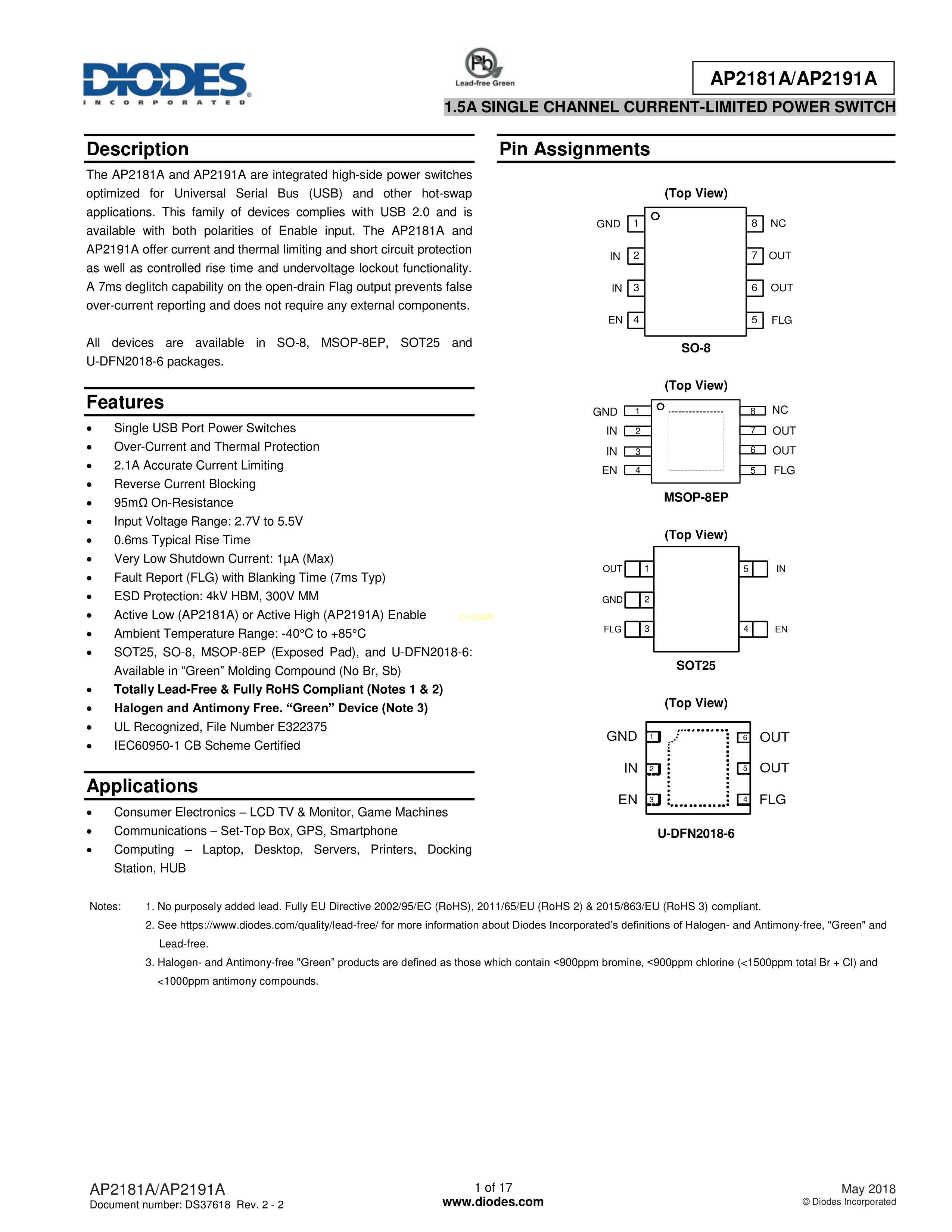AP2191AMP-13数据手册MSOP-8EP封装DIODES(美台)PDF规格书,中英文下载