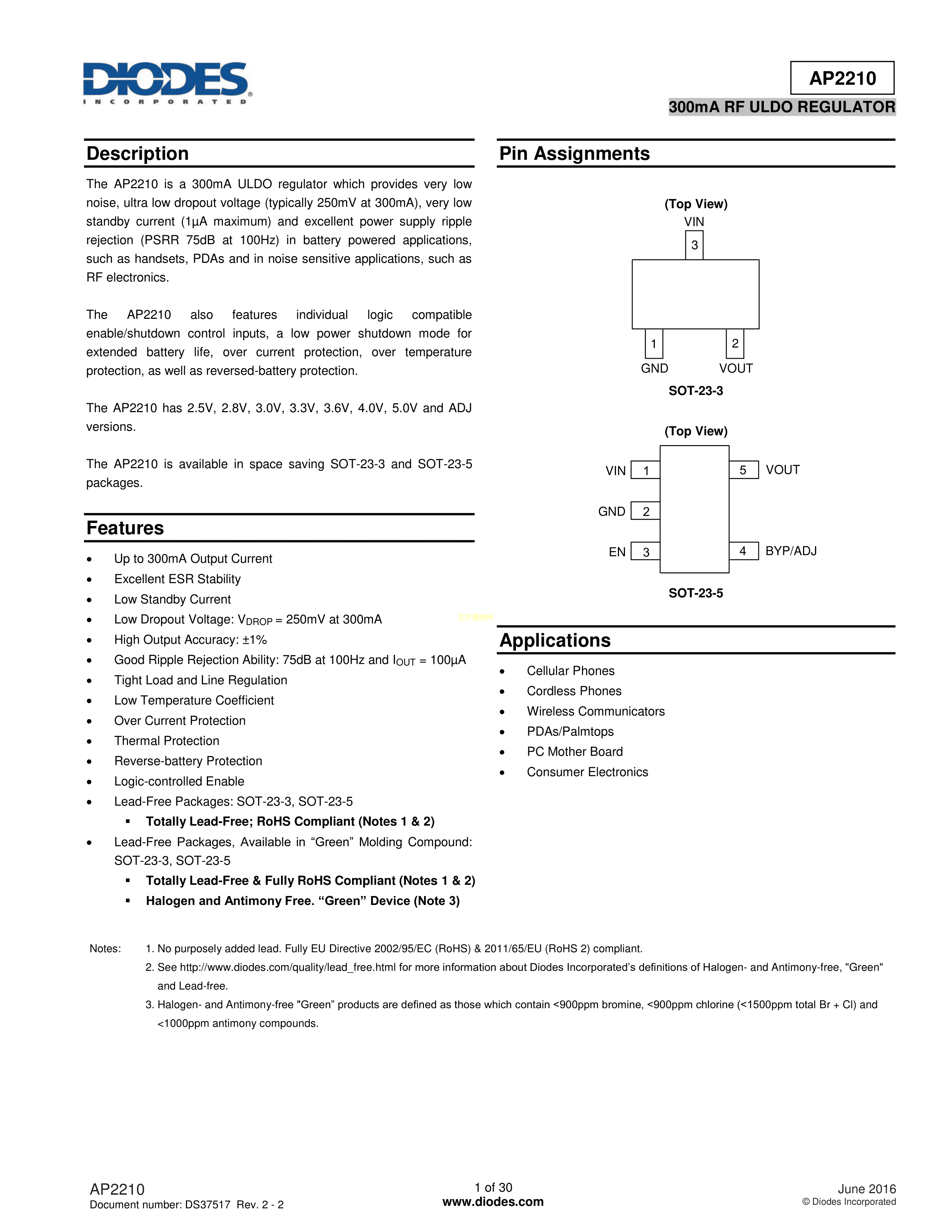 AP2210K-3.3TRG1数据手册SOT-23-5封装DIODES(美台)PDF规格书,中英文下