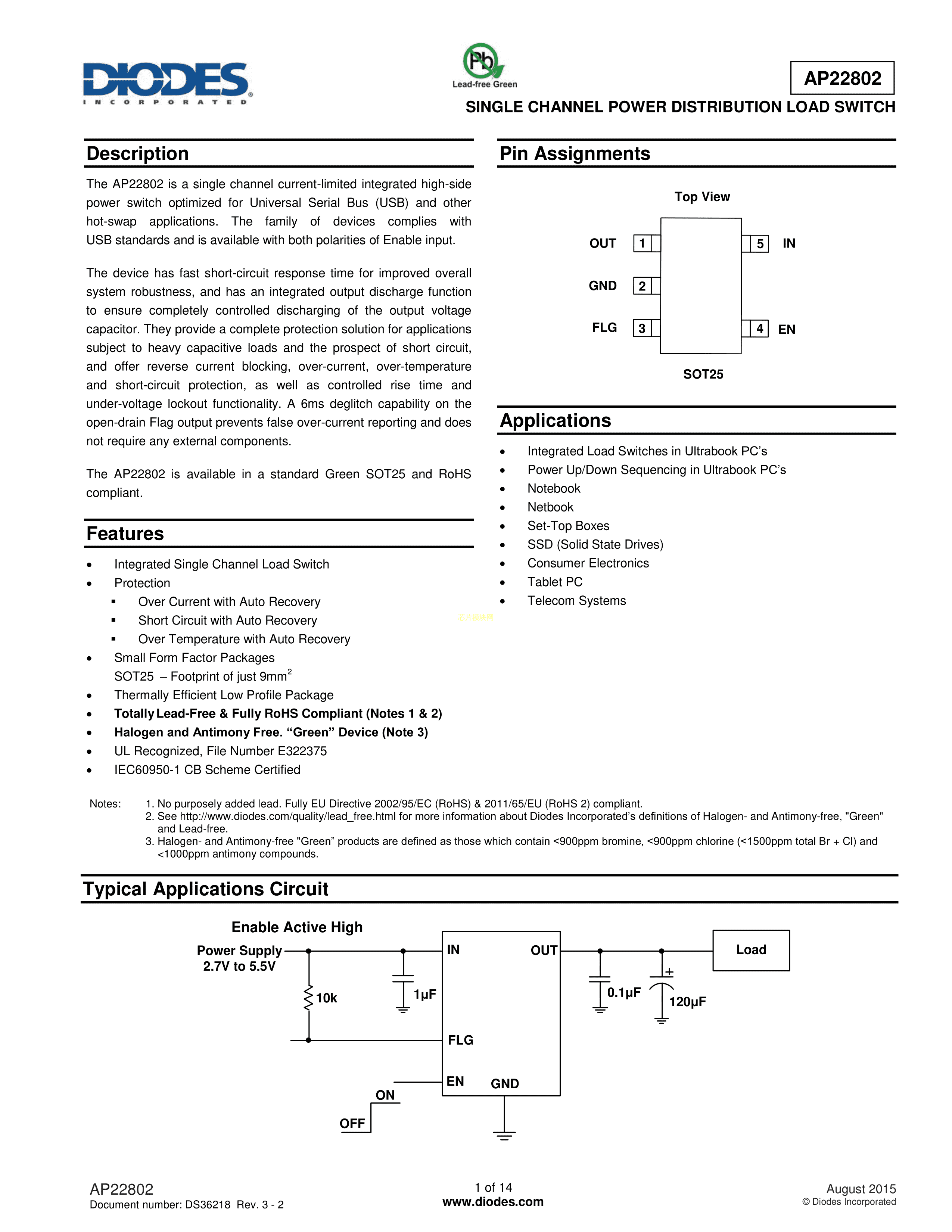 AP22802AW5-7数据手册SOT-25封装DIODES(美台)PDF规格书,中英文下载