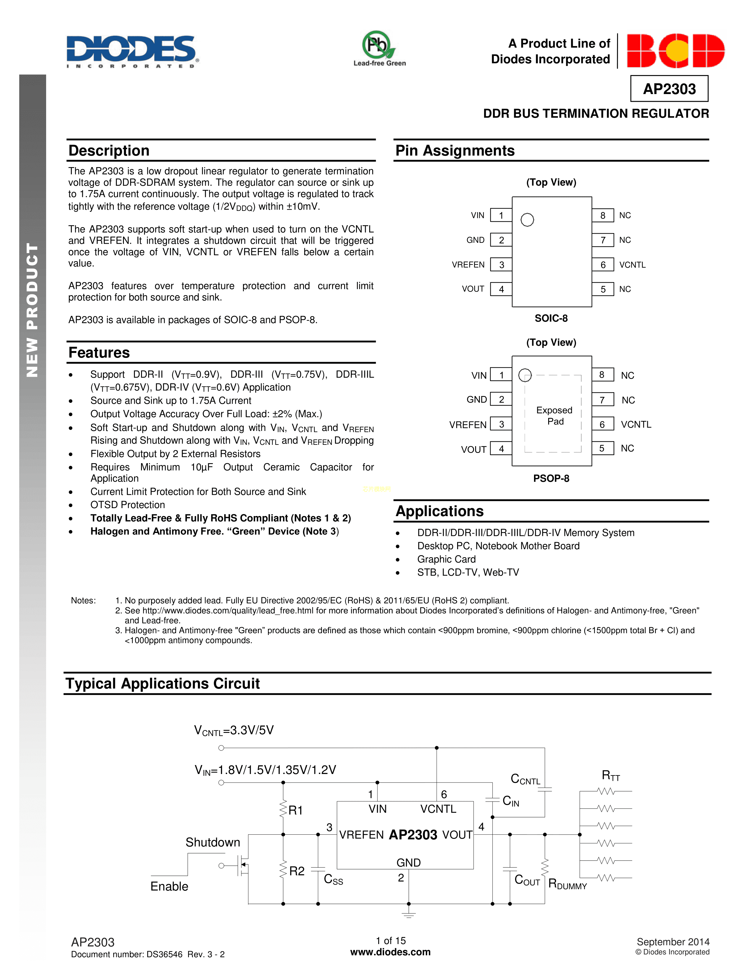 AP2303MPTR-G1数据手册PSOP-8封装DIODES(美台)PDF规格书,中英文下载