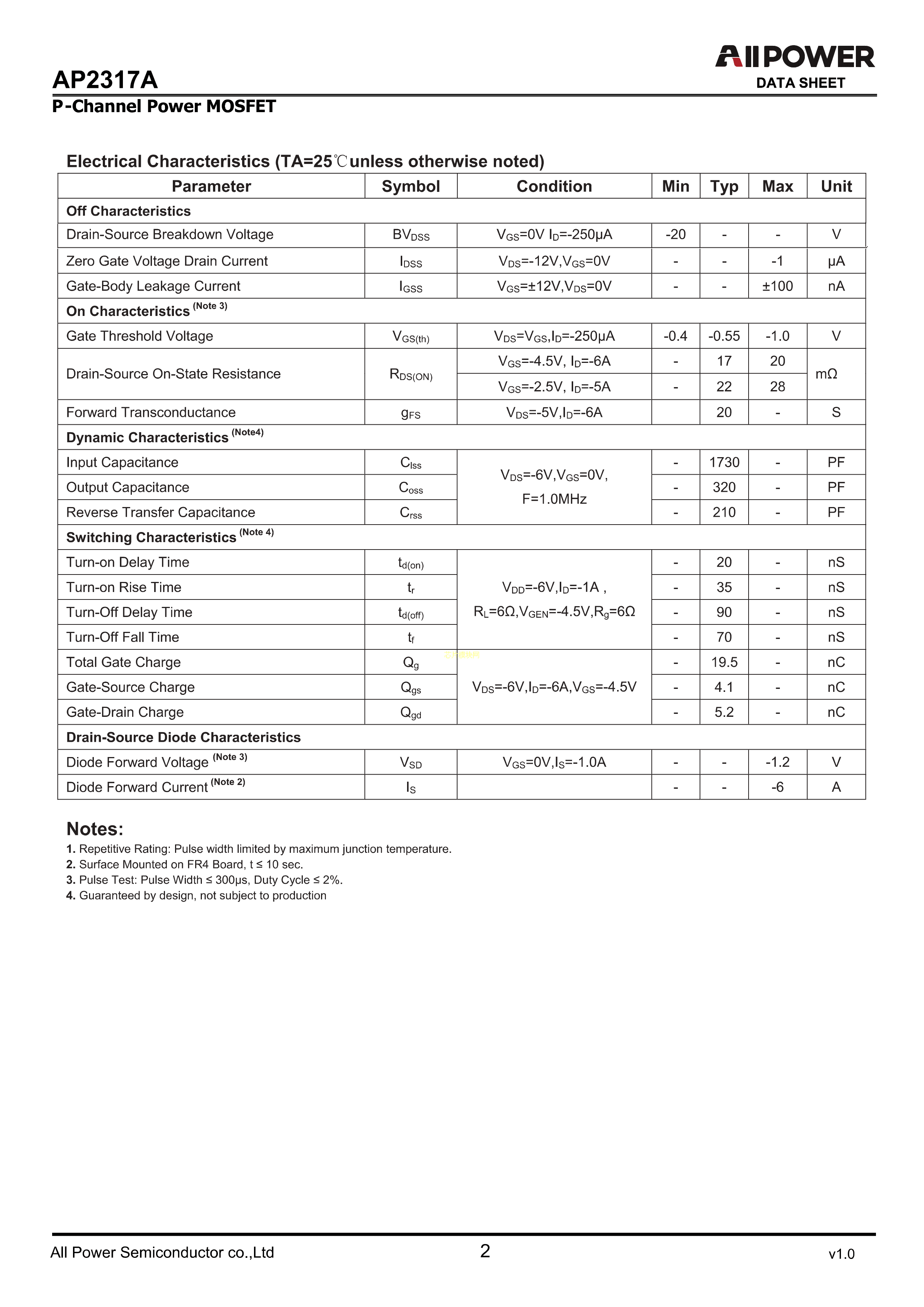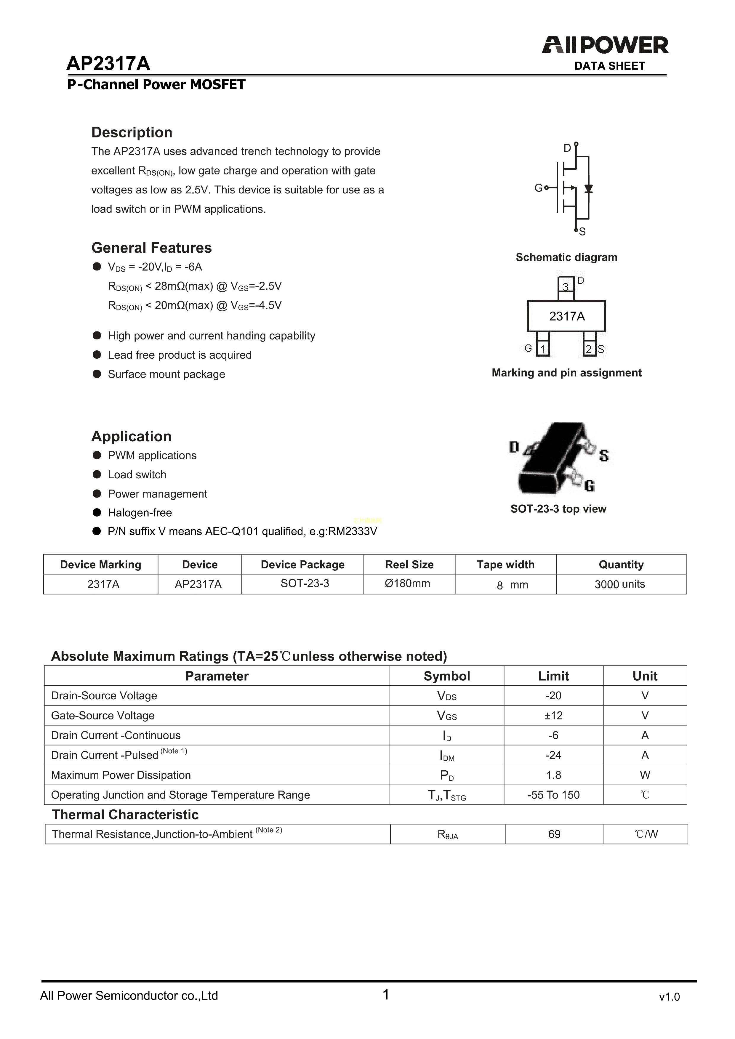 AP2317A数据手册SOT-23-3封装ALLPOWER(铨力)PDF规格书,中英文下载
