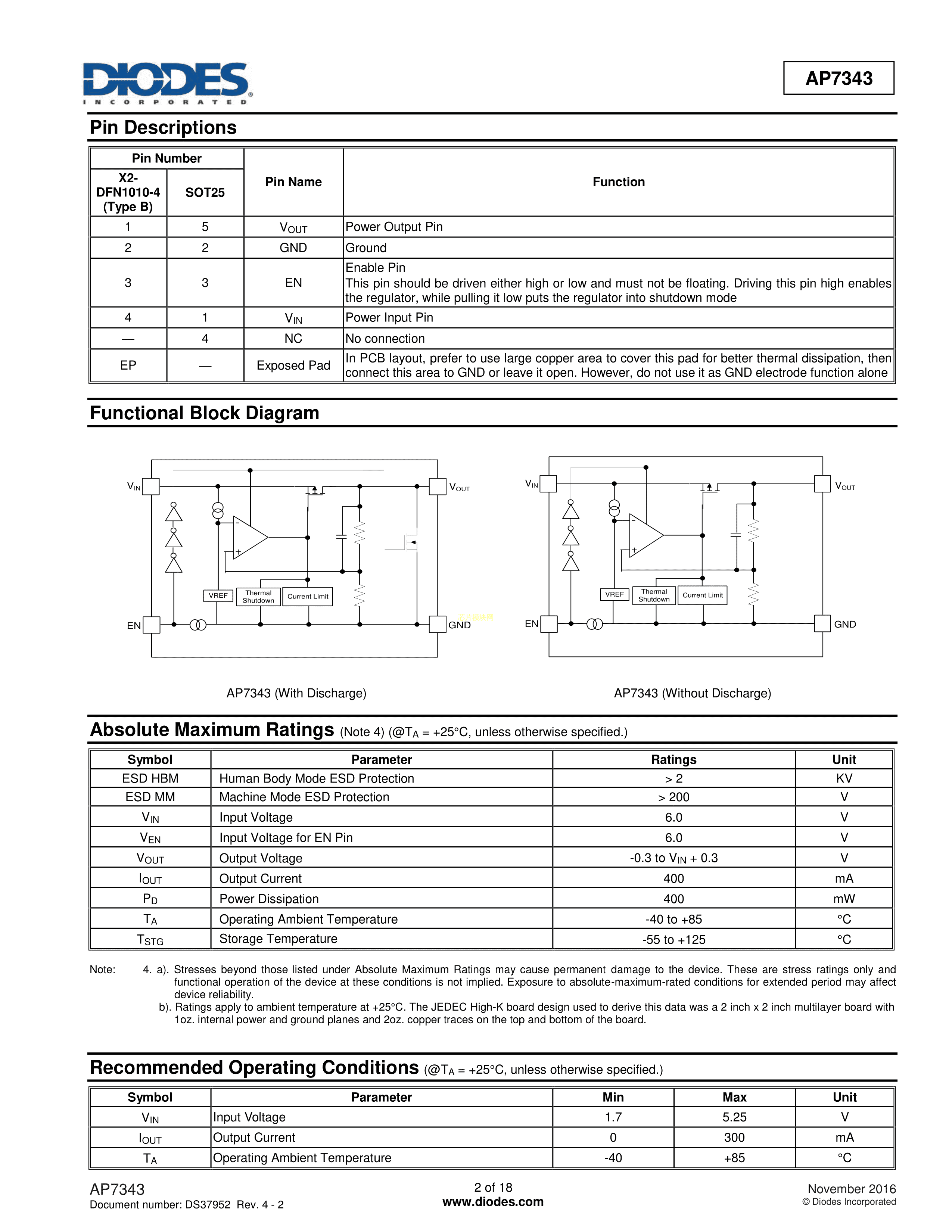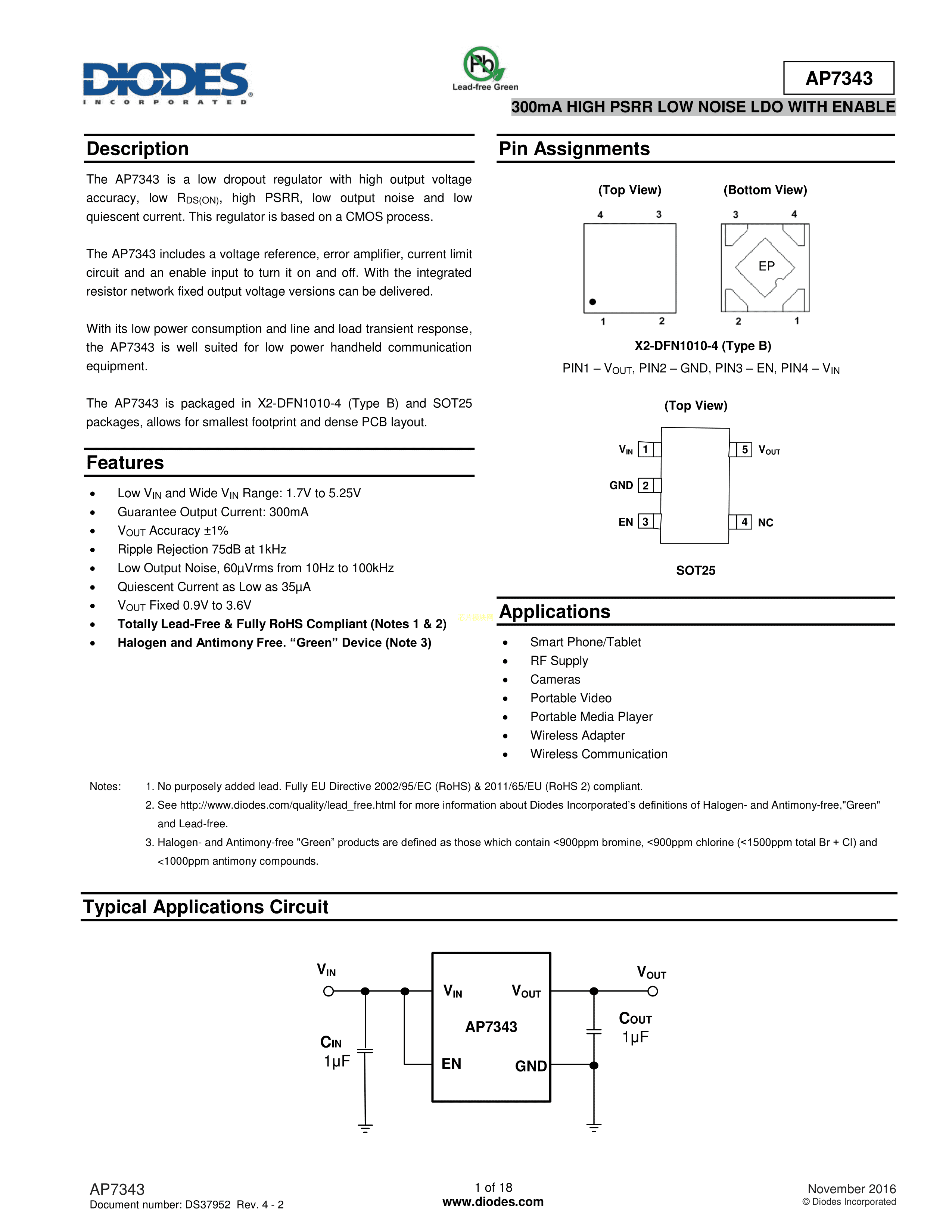 AP7343D-33FS4-7B数据手册X2-DFN1010-4封装DIODES(美台)PDF规格书
