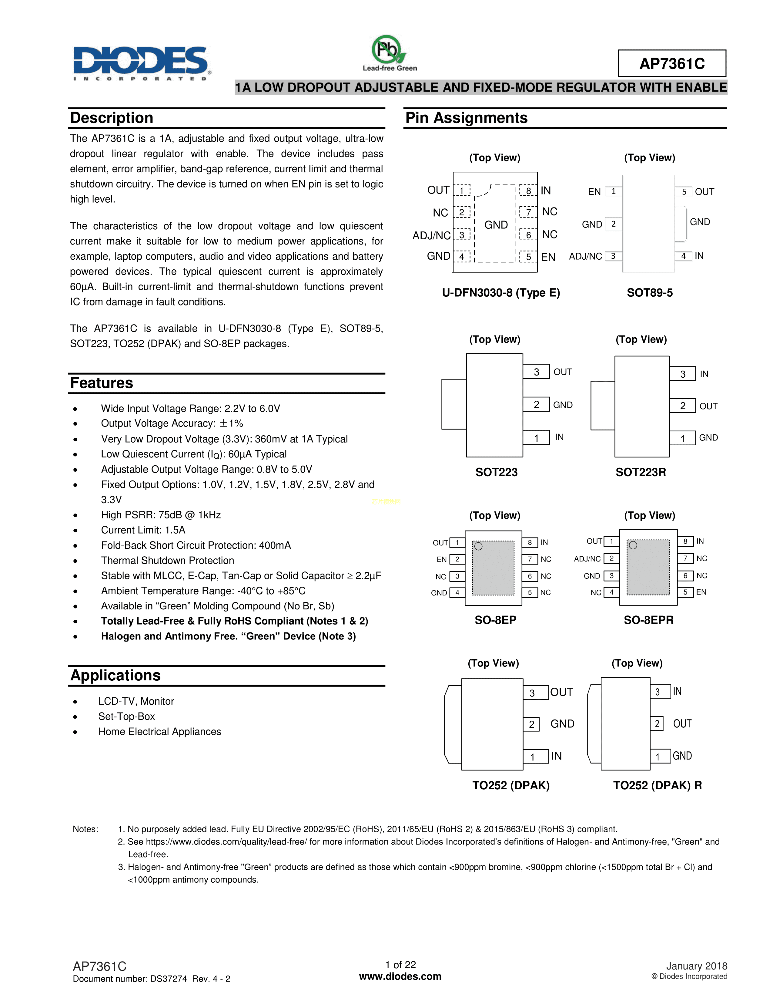 AP7361C-Y5-13数据手册SOT-89-5封装DIODES(美台)PDF规格书,中英文下载