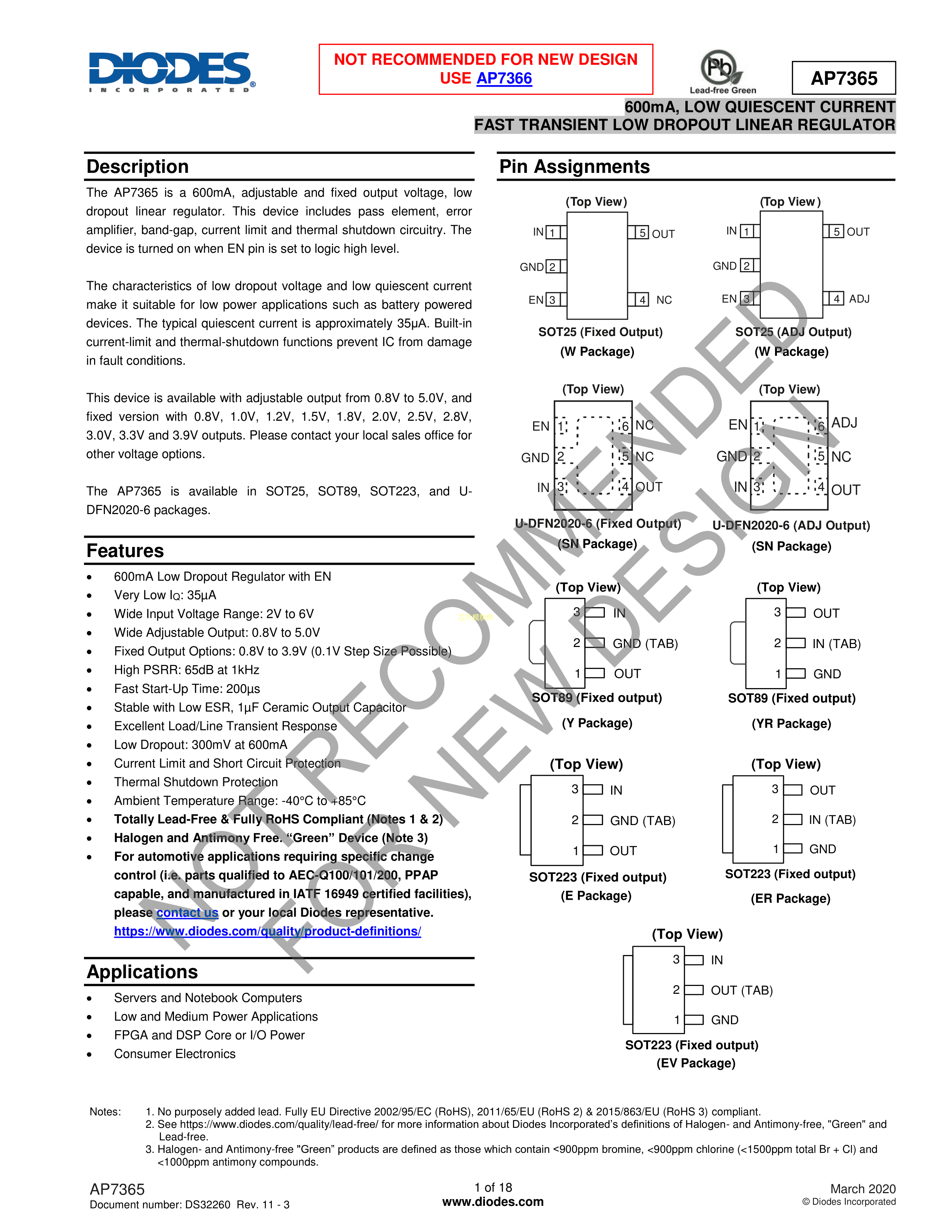 AP7365-25YG-13数据手册SOT-89封装DIODES(美台)PDF规格书,中英文下载