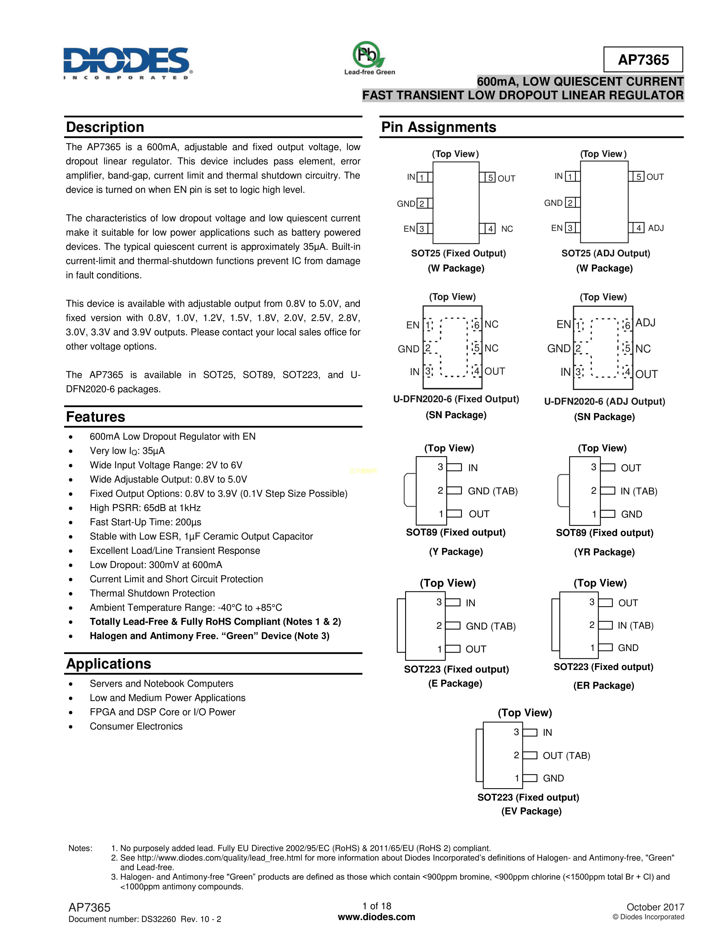 AP7365-33WG-7数据手册SOT-25封装DIODES(美台)PDF规格书,中英文下载