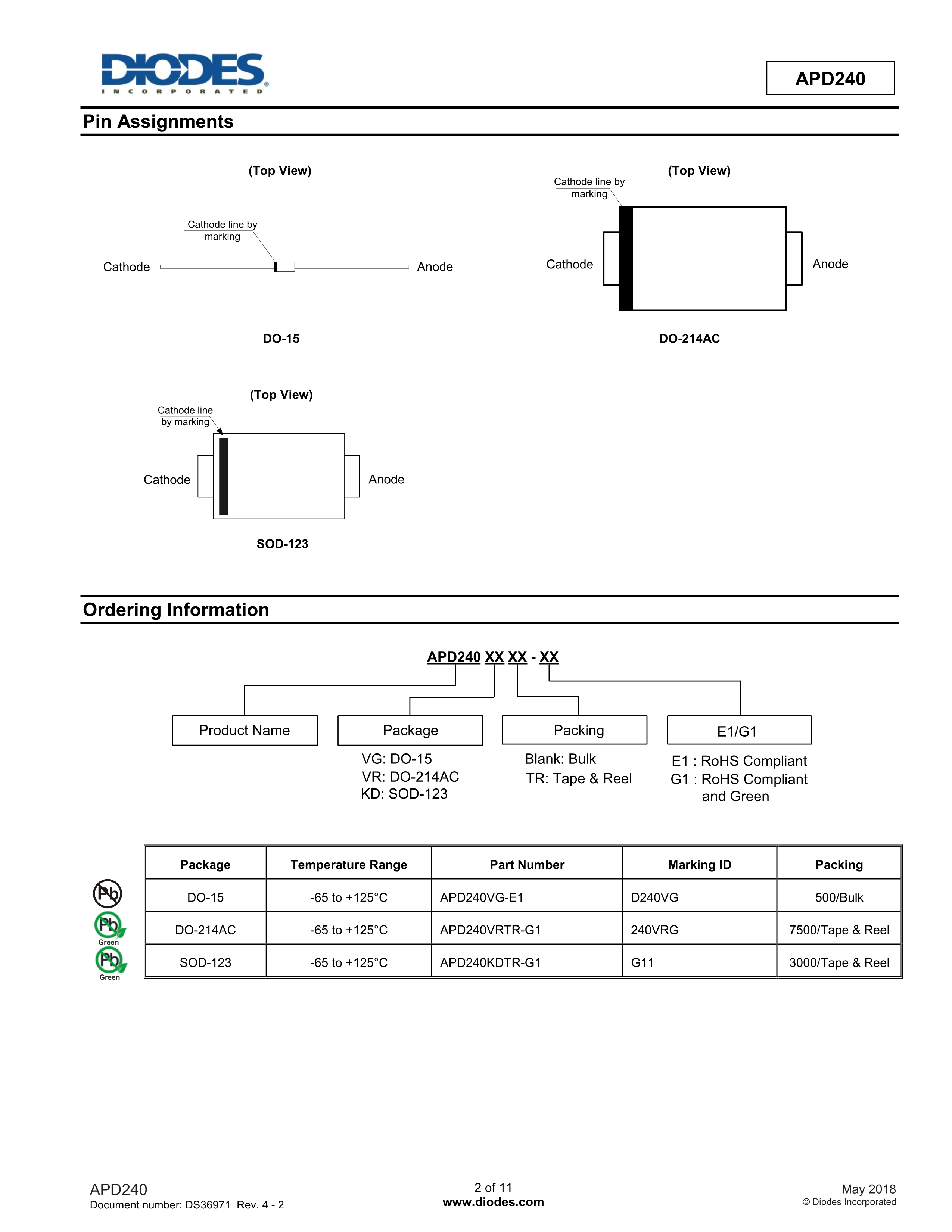 APD240KDTR-G1数据手册SOD-123封装DIODES(美台)PDF规格书,中英文下载