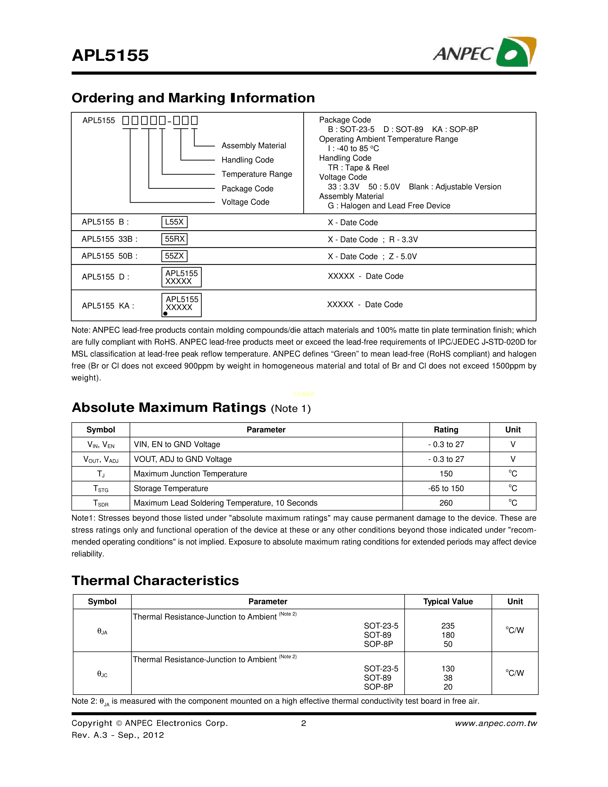 APL5155KAI-TRG数据手册SOP-8EP_150mil封装ANPEC(茂达电子)PDF规格