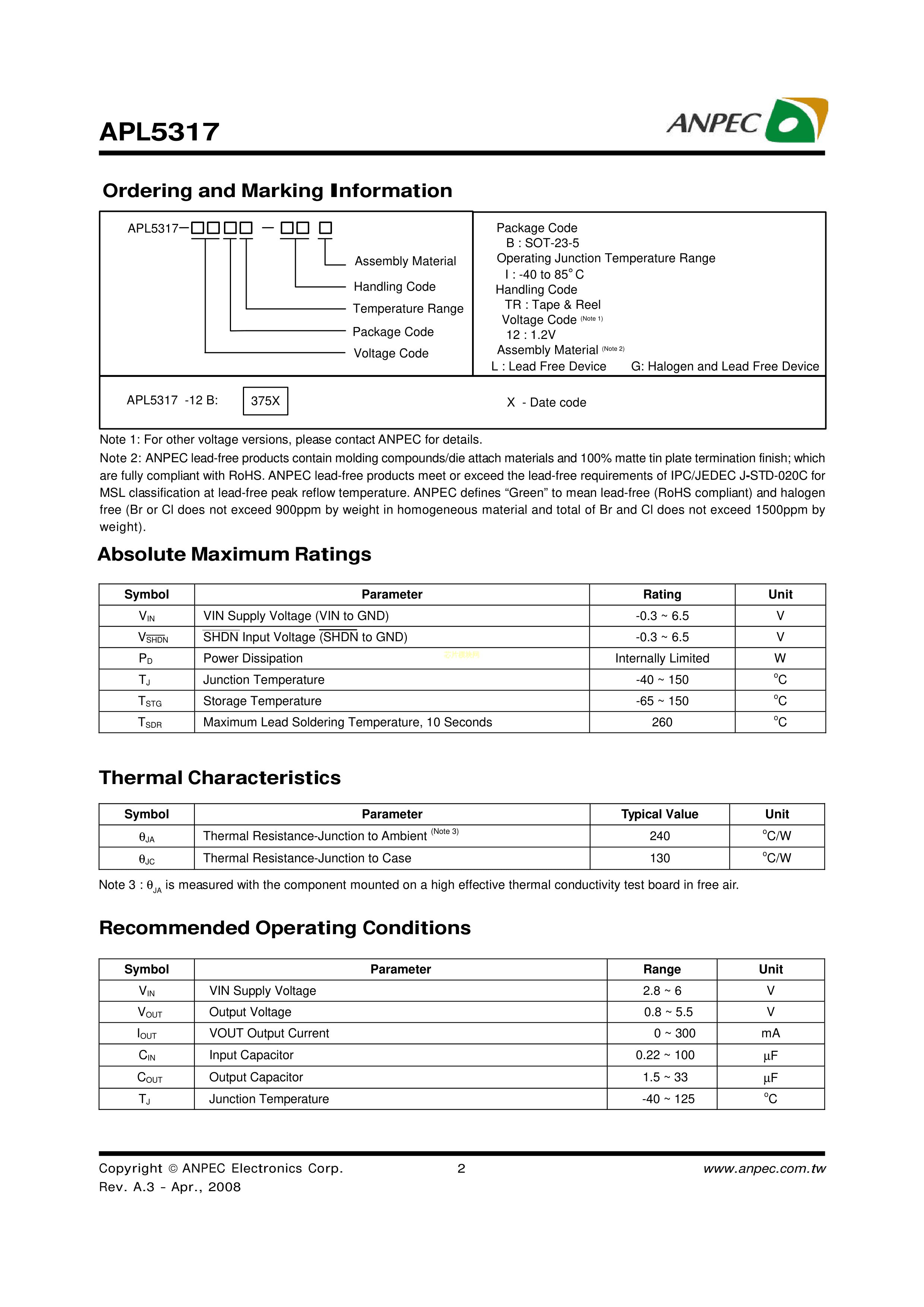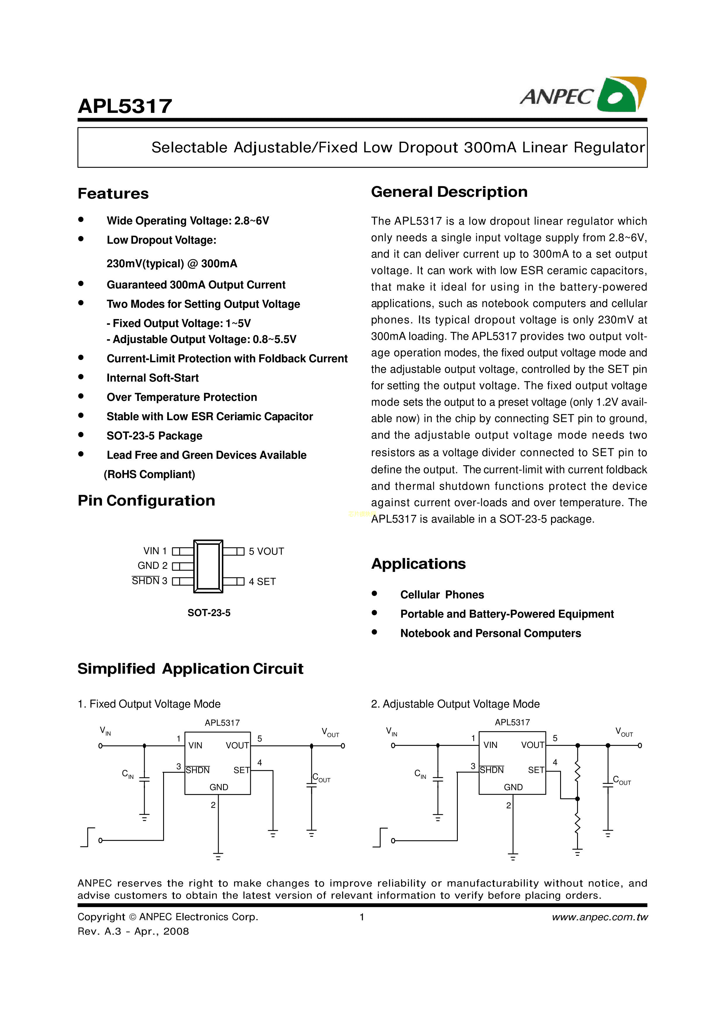 APL5317-12BI-TRG数据手册SOT-23-5封装ANPEC(茂达电子)PDF规格书,中英