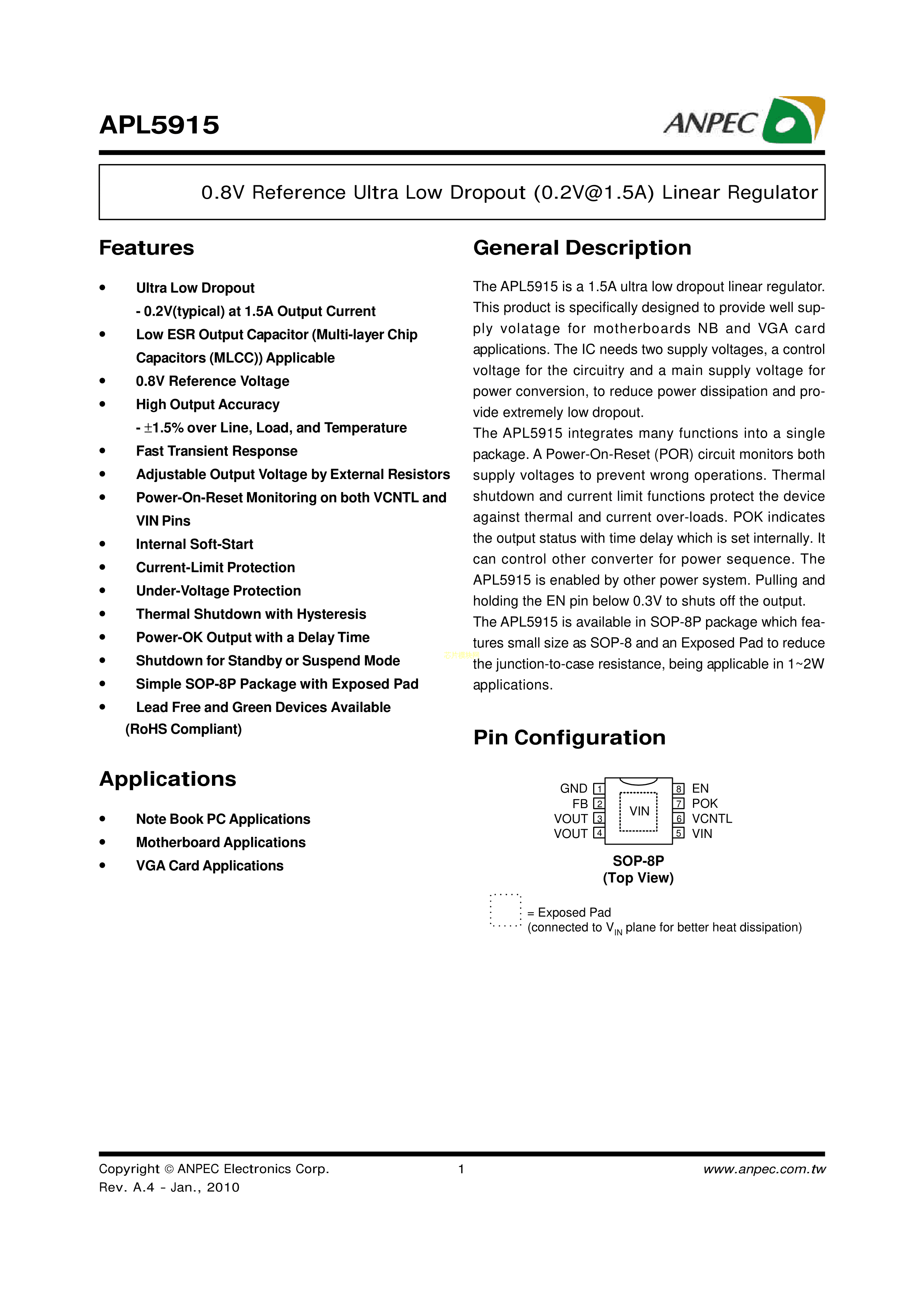 APL5915KAI-TRG数据手册SOP-8P封装ANPEC(茂达电子)PDF规格书,中英文下载