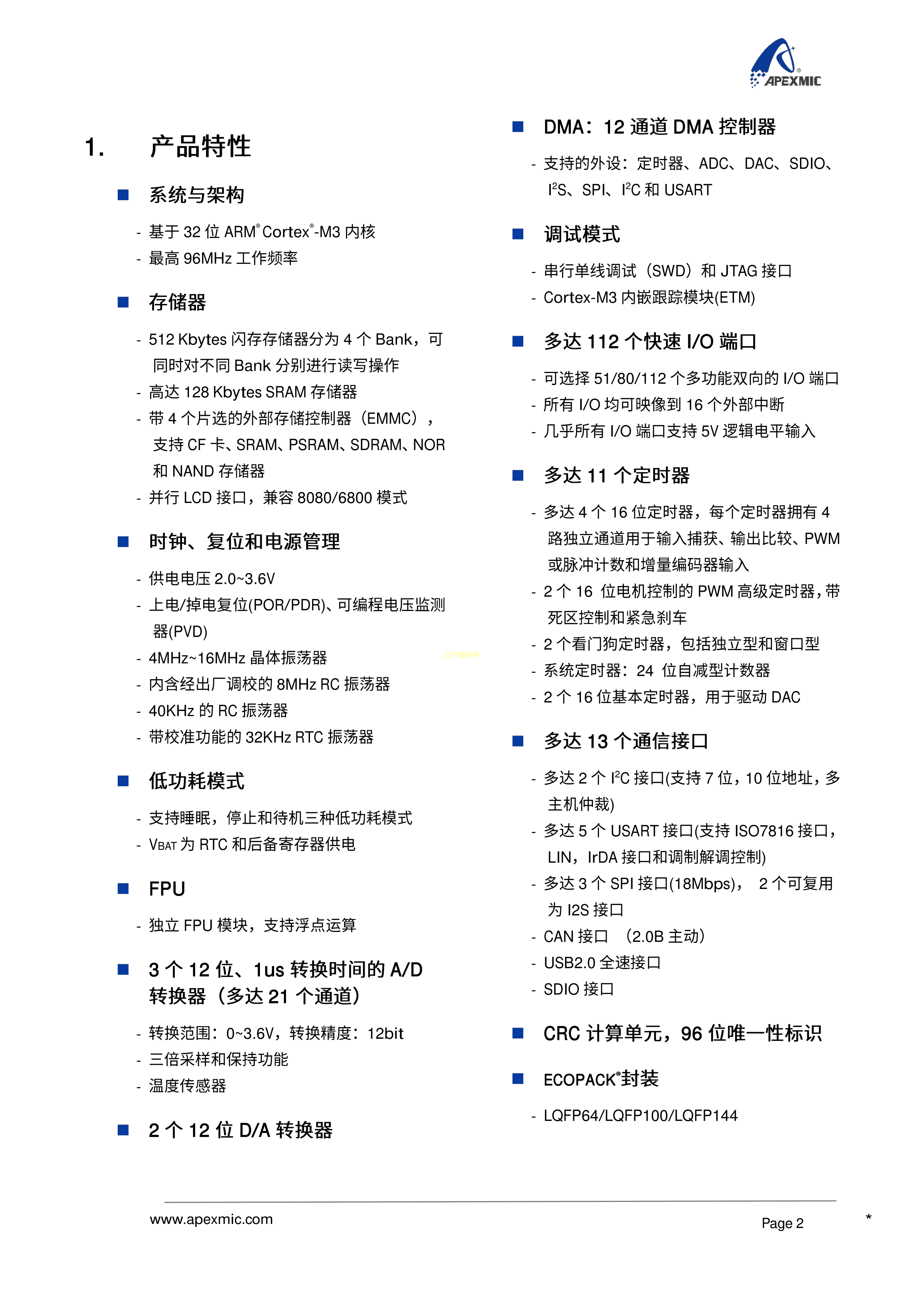 APM32F103VCT6数据手册LQFP-100封装Geehy(珠海极海)PDF规格书,中英文下载