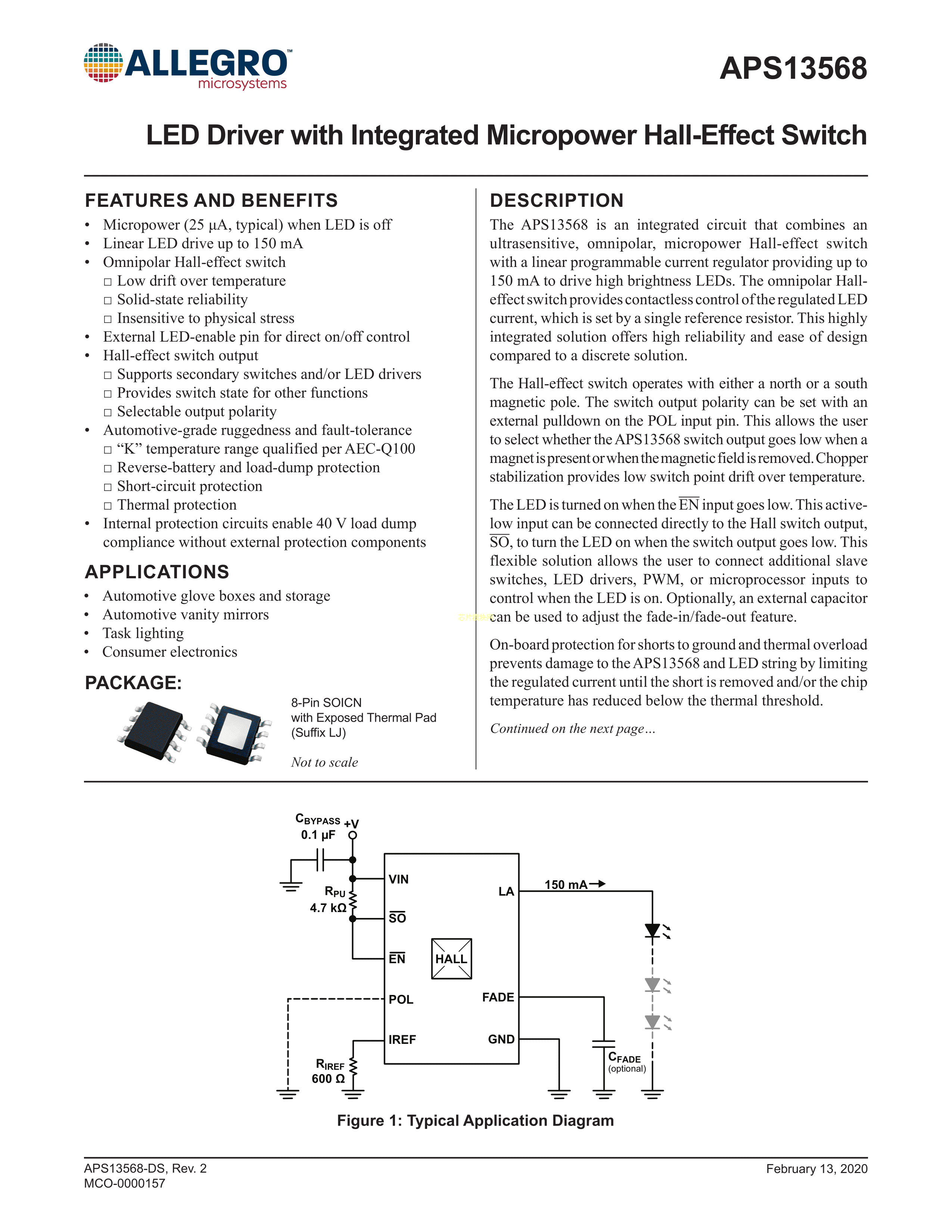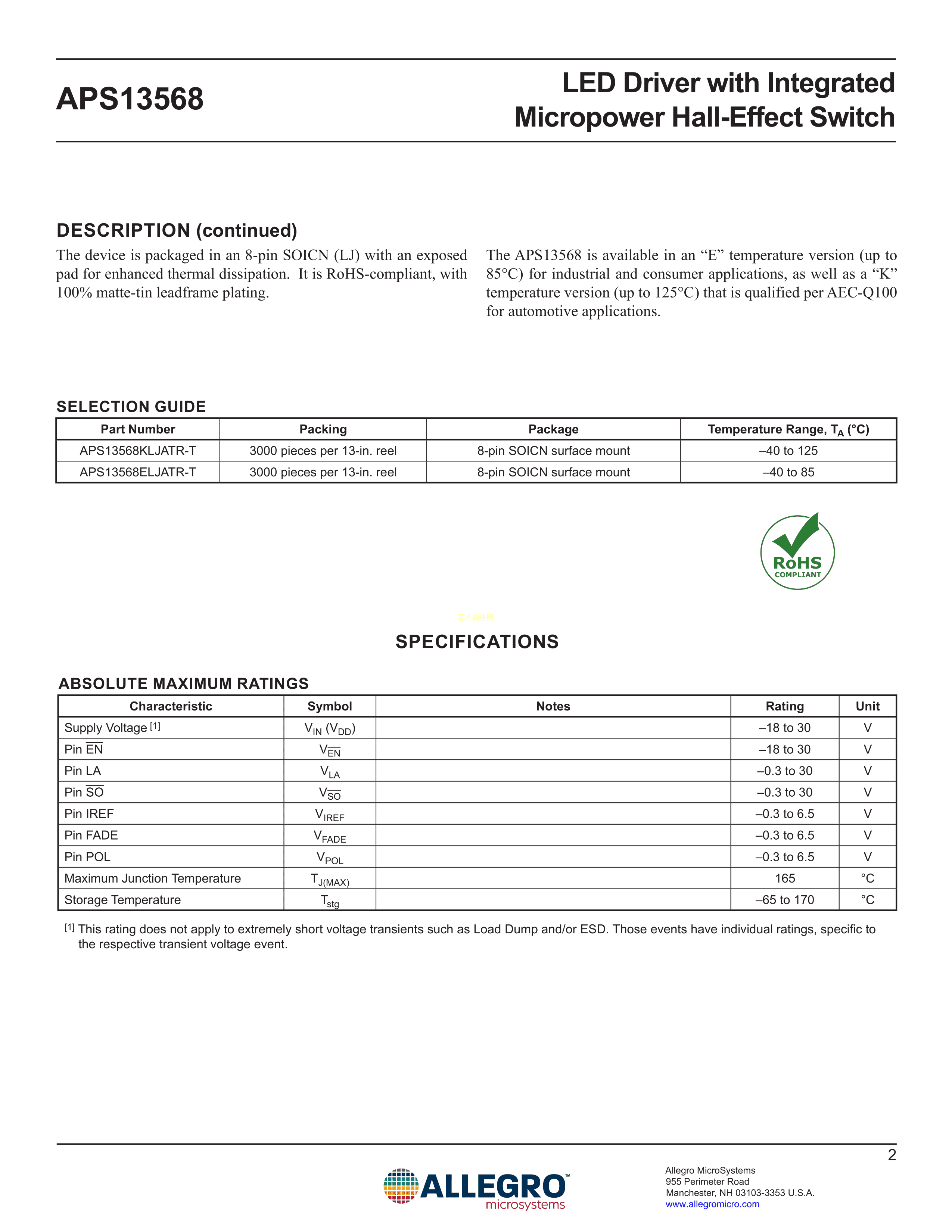 APS13568KLJATR数据手册SOIC-8封装ALLEGRO(美国埃戈罗)PDF规格书,中英文