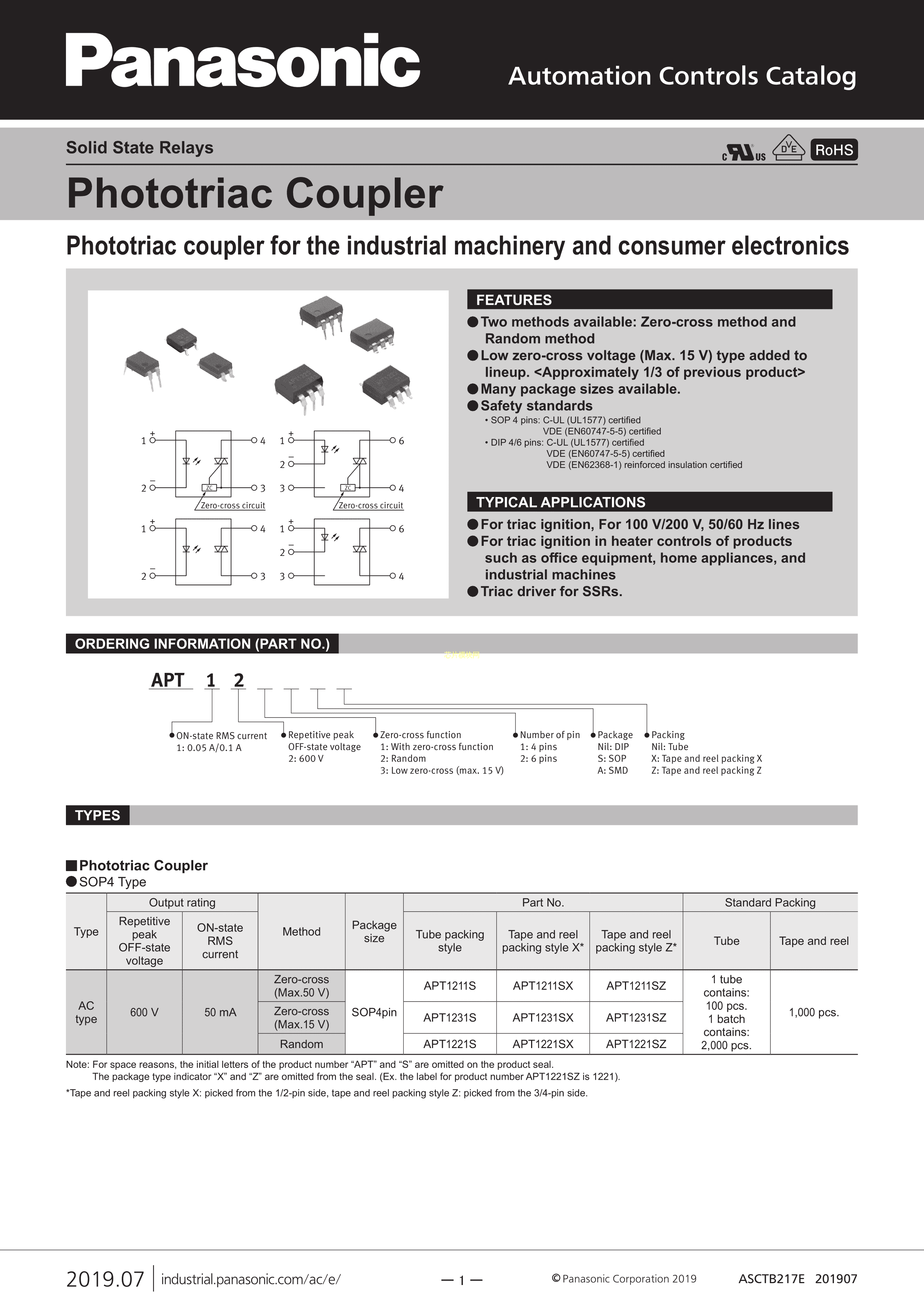 APT1231数据手册DIP-4封装PANASONIC(松下)PDF规格书,中英文下载