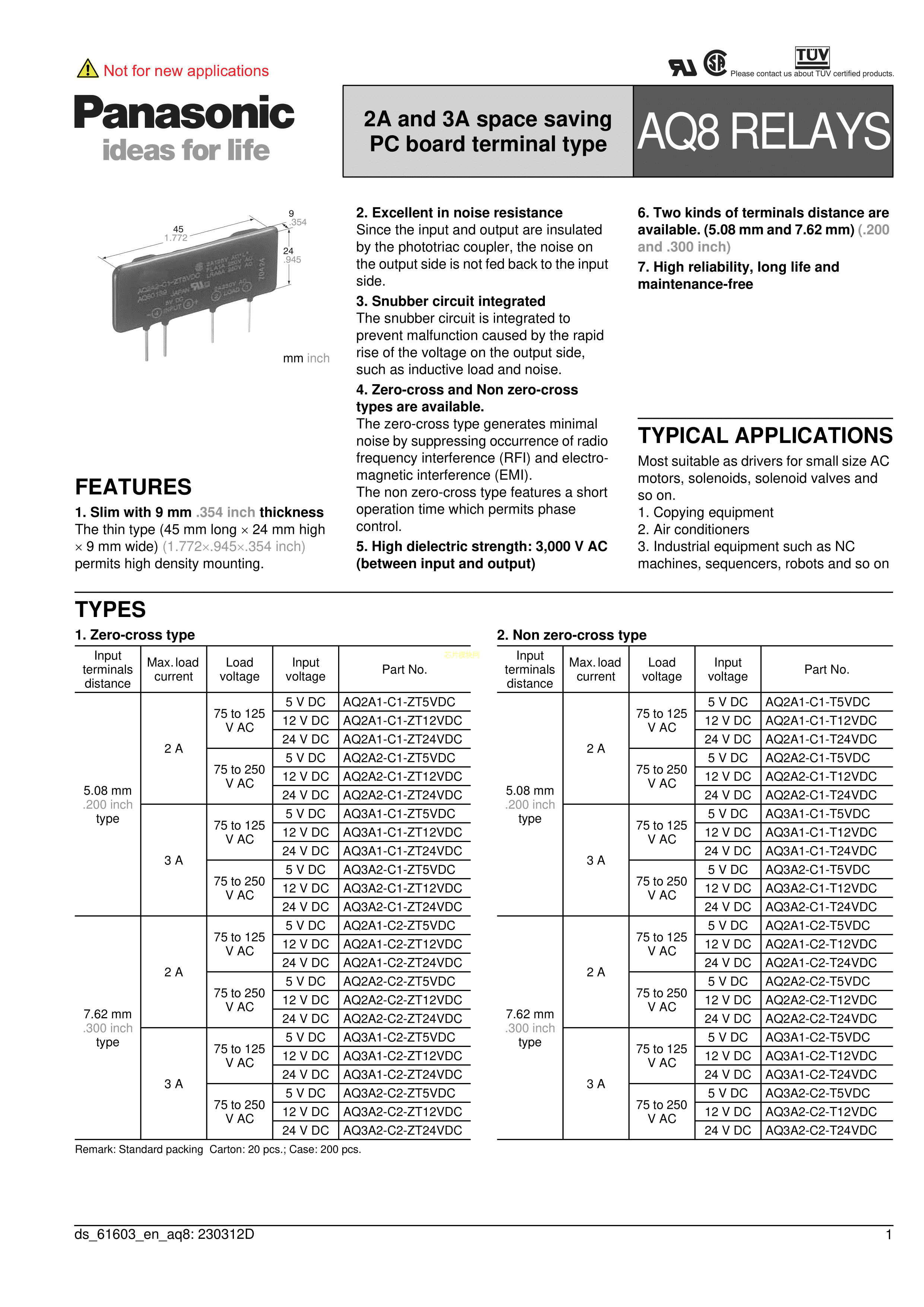 AQ3A1-C1-ZT24VDC数据手册SIL-4封装PANASONIC(松下)PDF规格书,中英文