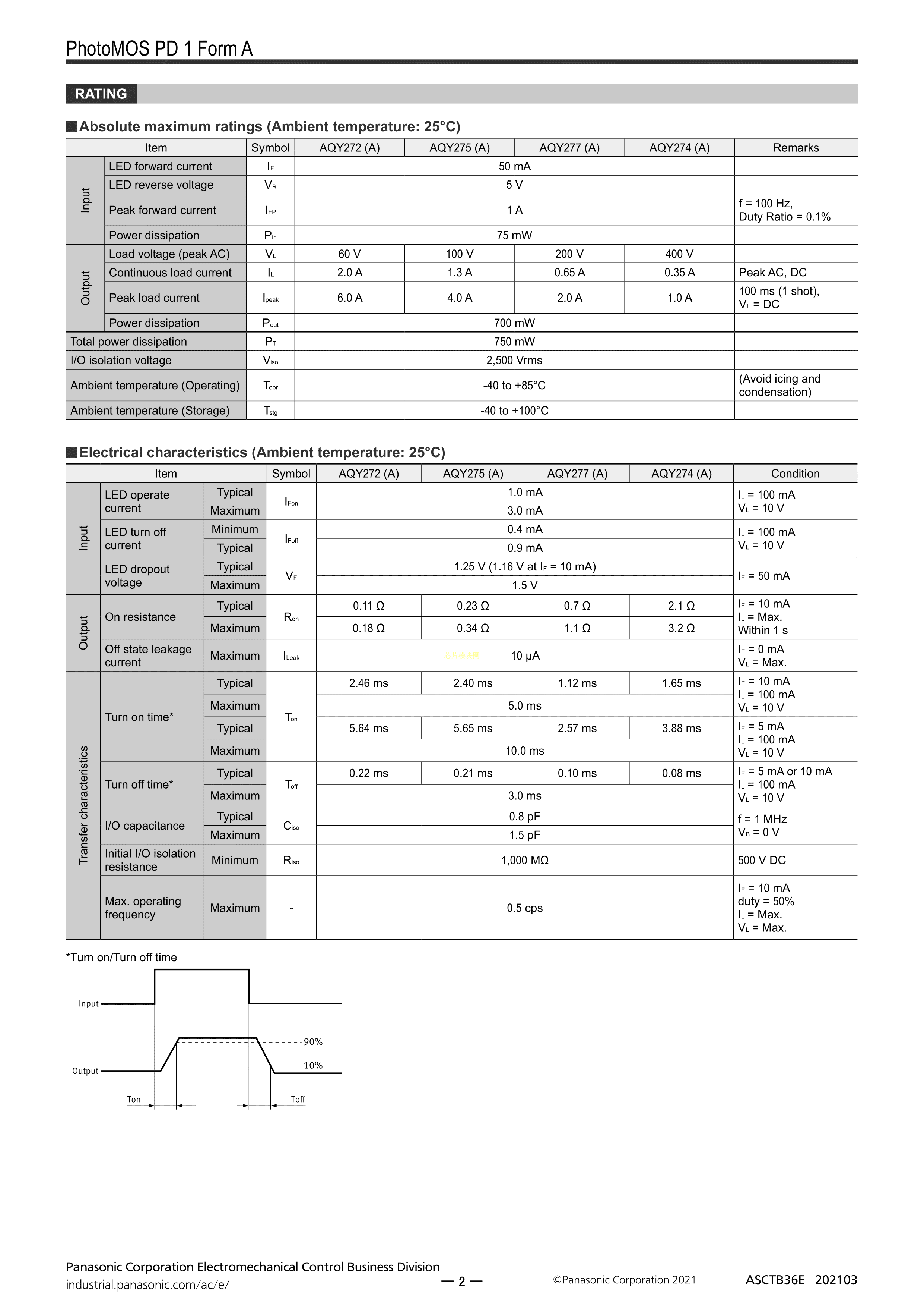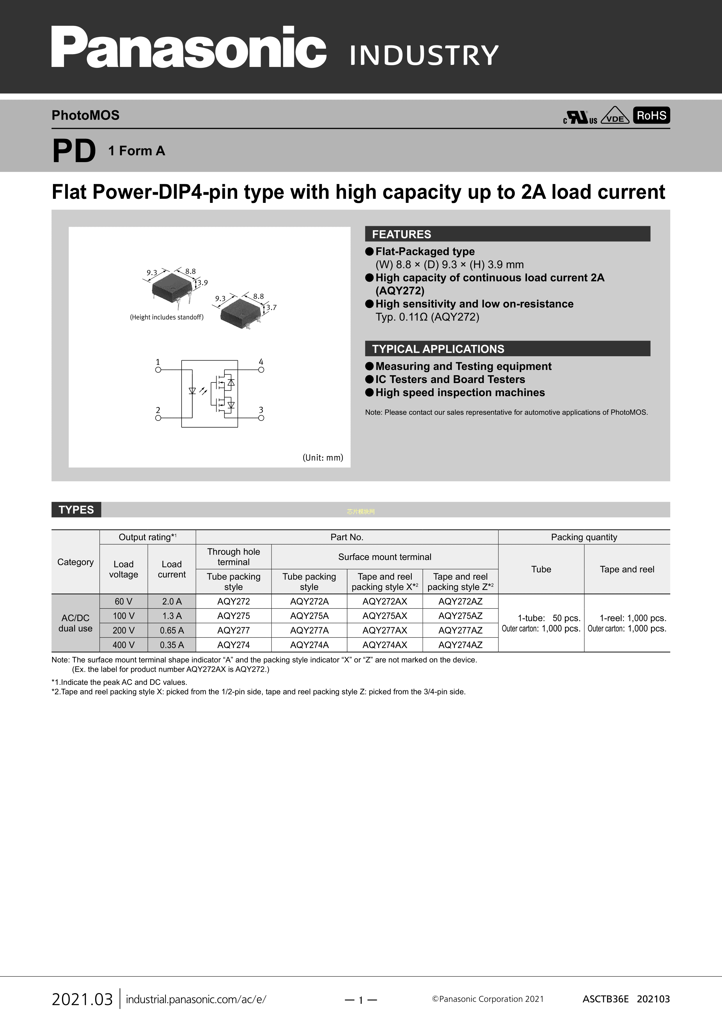 AQY272A数据手册DIP-4封装PANASONIC(松下)PDF规格书,中英文下载