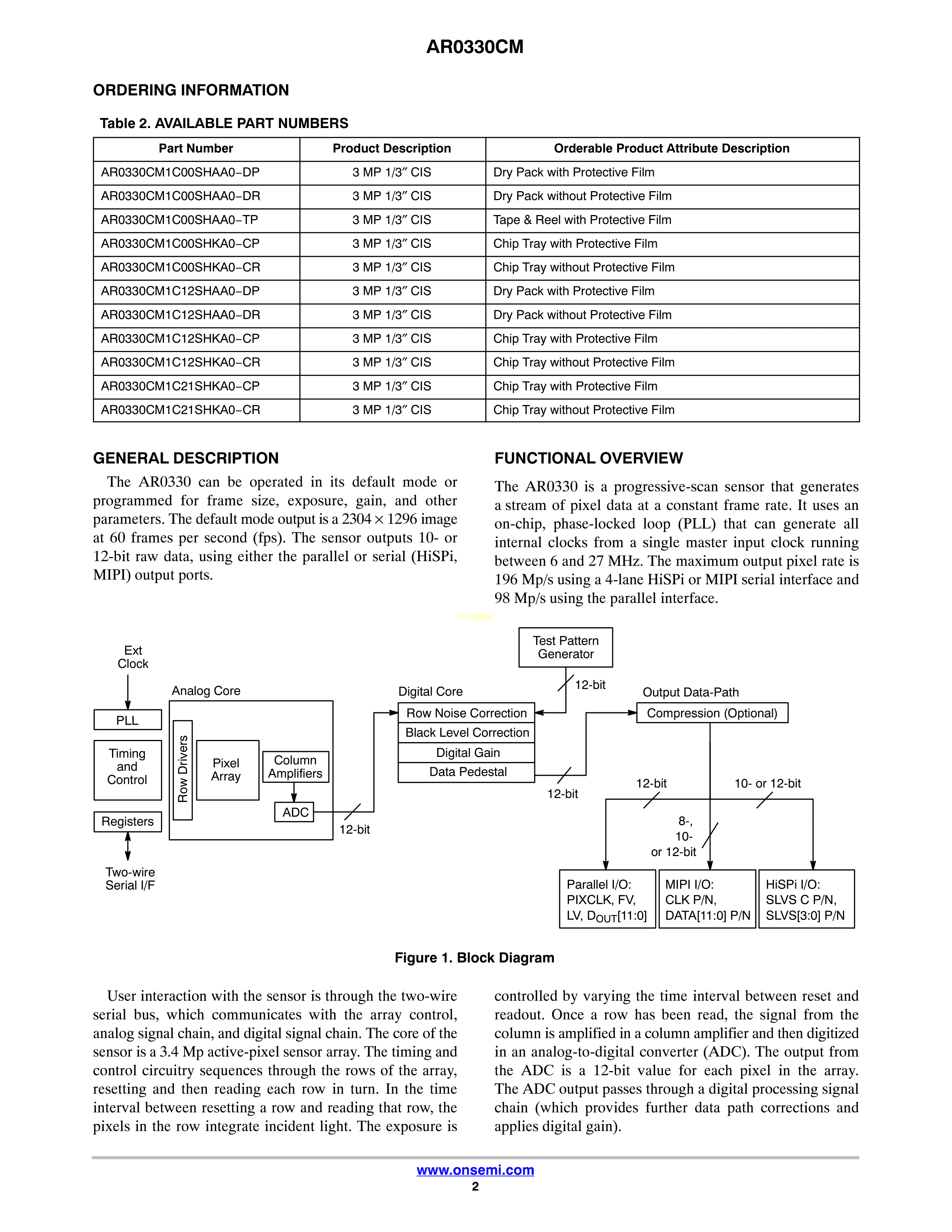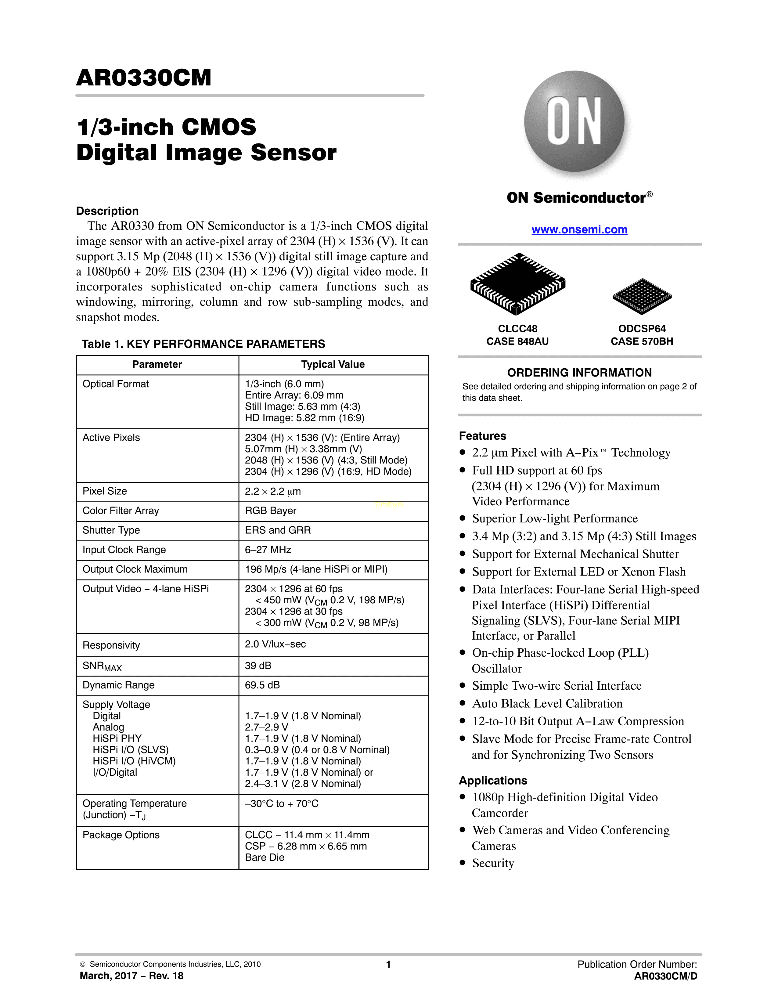 AR0330CM1C12SHKA0-CR数据手册ODCSP-64封装onsemi(安森美)PDF规格书,中英文下载