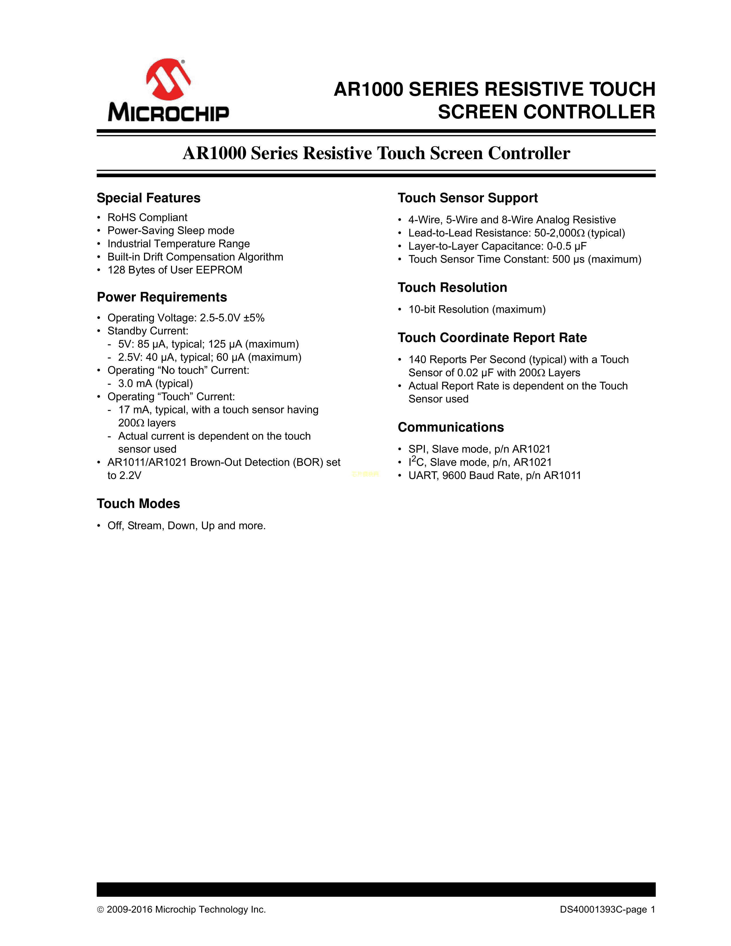 AR1011T-I-ML数据手册QFN-20(4x4)封装MICROCHIP(美国微芯)PDF规格书